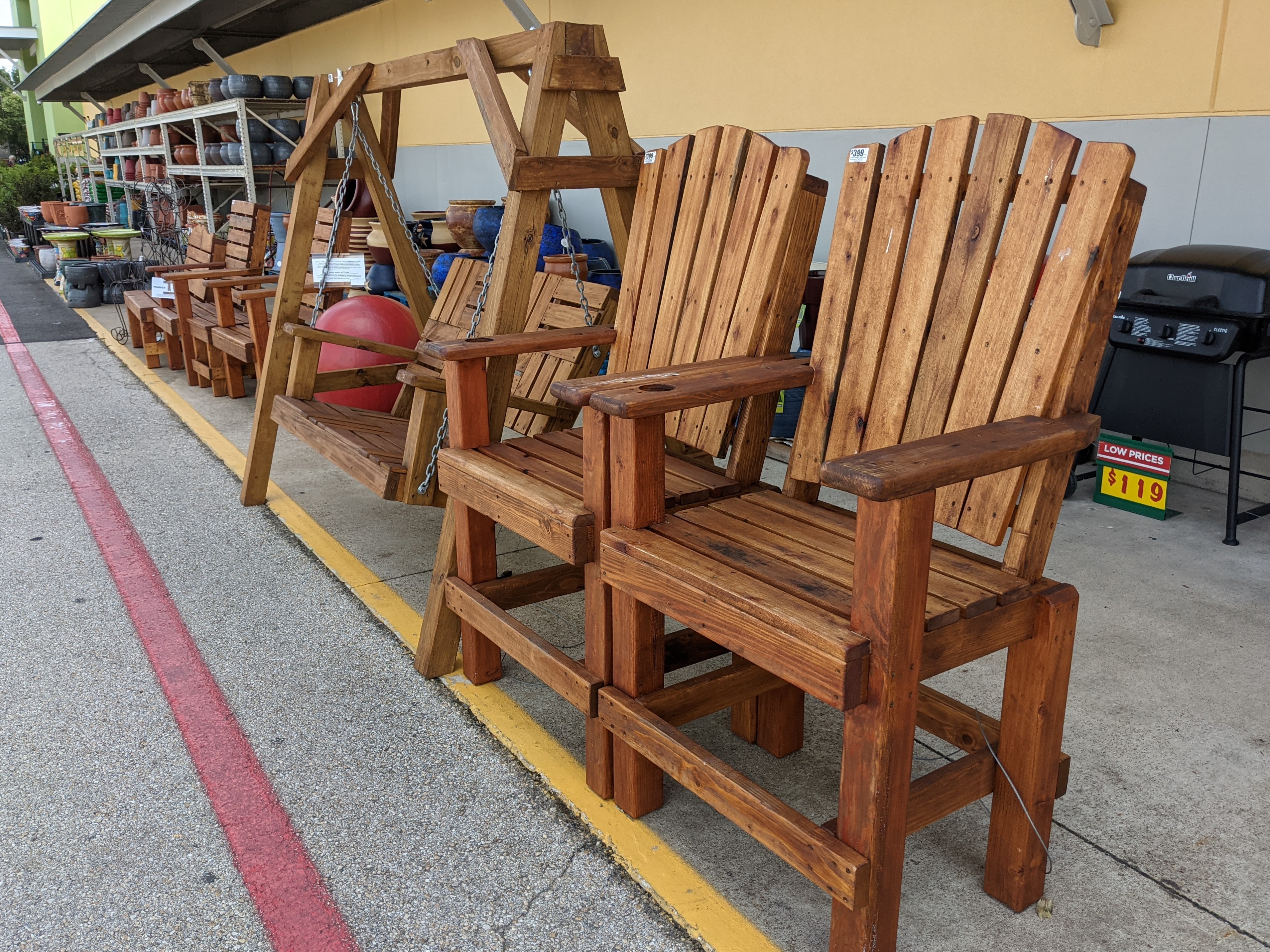 Later the same day I saw another compilation. It was radically different and buyable from a supermarket forecourt for a couple of hundred dollars. When I say different, I don't mean different as in different to the bench seat. I mean different into drawing attention sufficient to sell it. Three items stood in front of me and I was bemused by the ugliness of two outdoor chairs and a swing seat made from two by four construction wood stained burnt-brown as yard art, yard furniture. I was surprised by the reality that some designs have a cultural influence where Texanese has steadily become more an established form of state subculture. Yard art? Certainly. Ceramic pots decorated with watermelons and cacti reflected a summer message as a statement for outdoor living, yard decorating, yard eating and then a yard playfulness I haven't seen so nationally and universally accepted in the UK. It made me wonder in what ways do evolving and existing cultures within the constructs of any social environment predispose certain individuals to join the more delinquent subcultures?