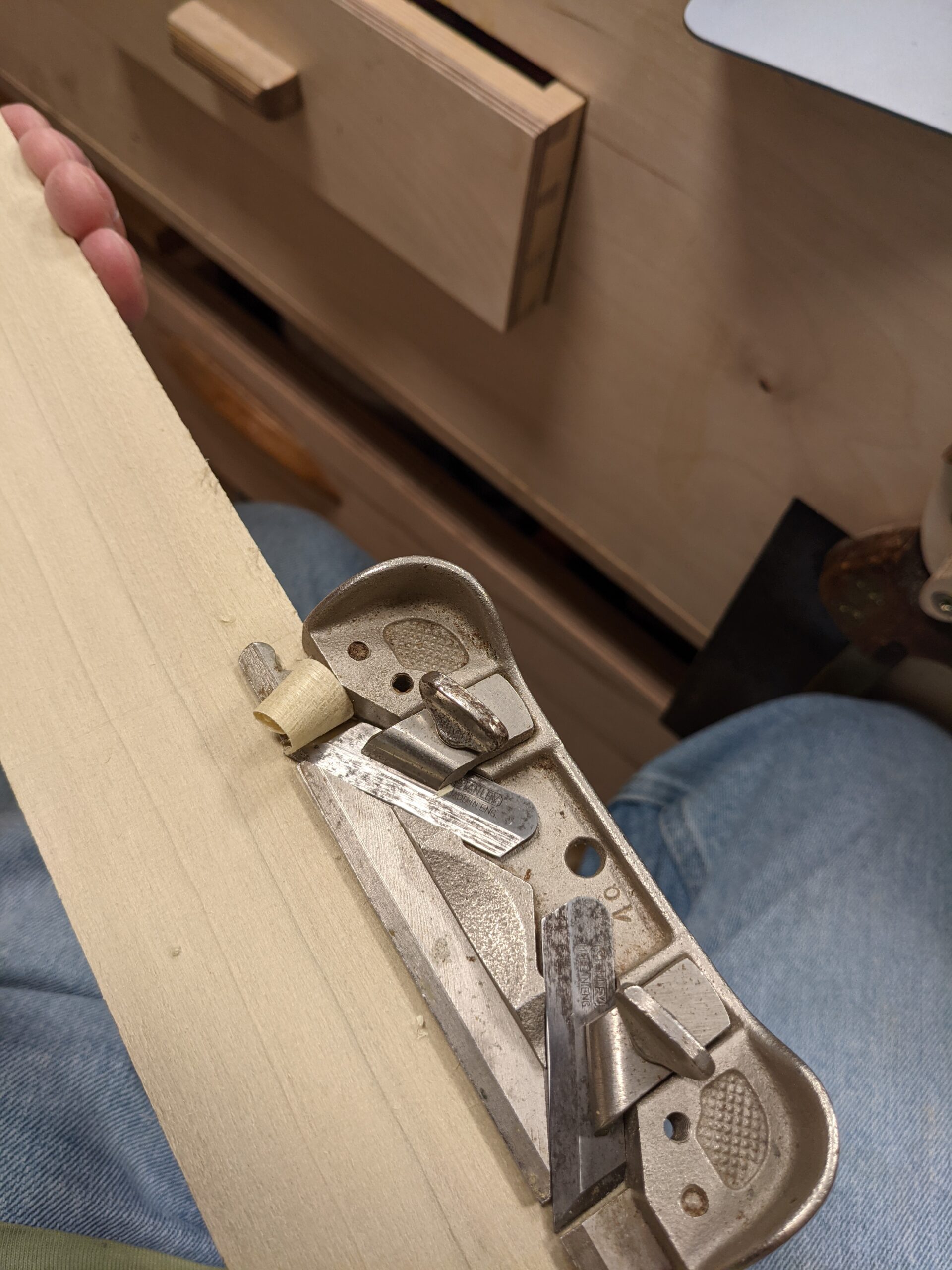 As I said, the side rebate plane is not an essential tool until you encounter many different-sized grooves according to pre-machined sizes in say manufactured sheet goods like MDF and plywood. 10mm is not 3/8" and 12 mm is not 1/2". The small differences can be reconciled with a side rebate plane but without one, you create a fence to guide a chisel as shown here. It is quick and effective.