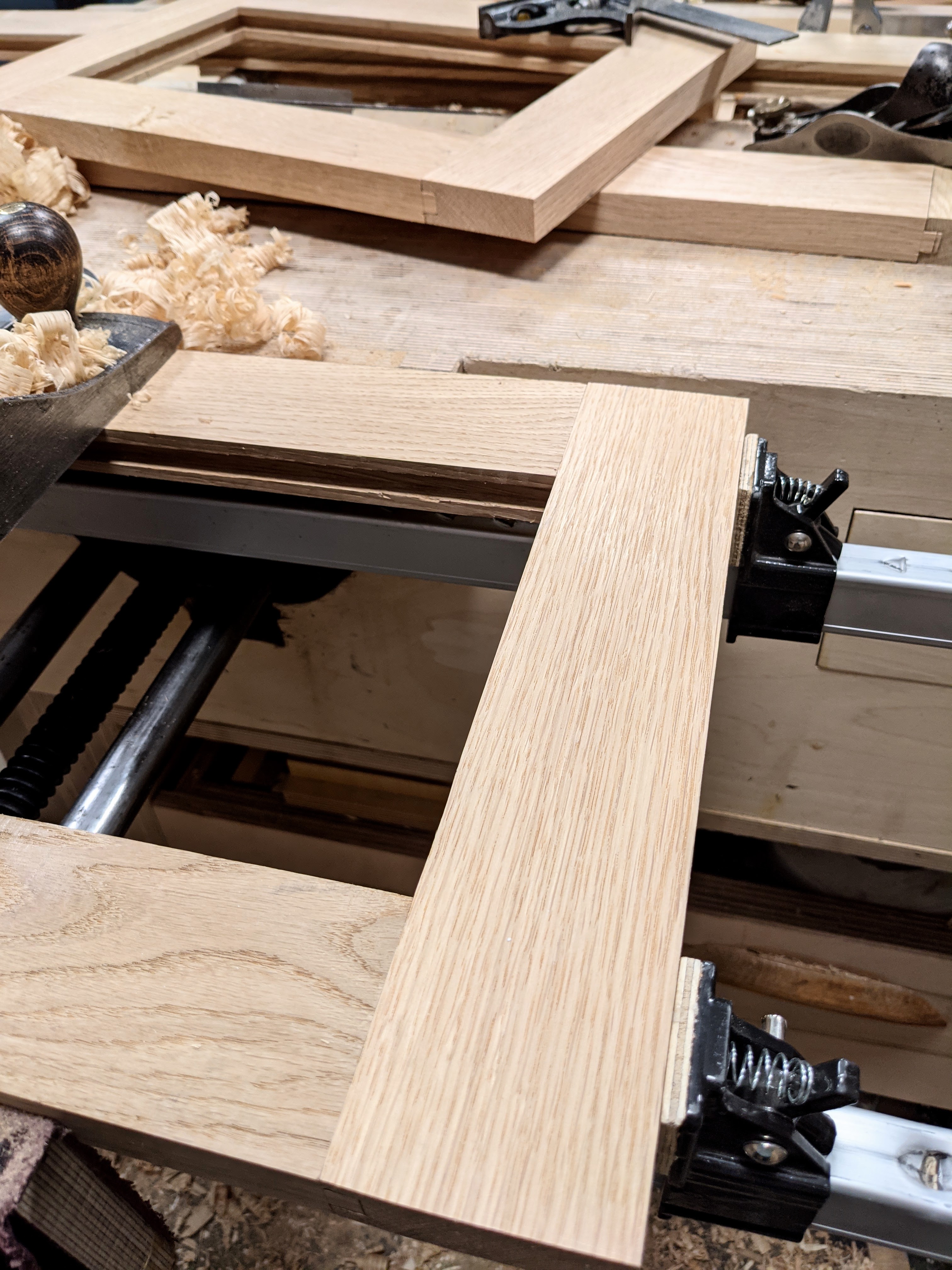 In circumstances like this, a sharp hand plane is critically essential with a double emphasis on its essentiality. In my understanding of people as a whole, procrastination is almost always the issue in just about everything we do. Bins overflow, apologies come too late and dishes fill the draining board to toppling levels. It's funny how we will push that plane to its absolute limit of our laziness rather than pop that lever cap, take out the plane iron and reestablish a sharp cutting edge. We humans will beat that wood and our bodies into submission with a dull cutting iron for an hour before we will take it out and sharpen it, yet when we do what we were supposed to do an hour ago we feel blissfully happy until we do the same again. My oak sections, boards and panels did move even after my curing of wood was down to around 7% and acclimatised to and by the surrounding atmosphere of my garage workshop by airconditioning to equal perfection. How can this be? The books all say blah, blah, blah! Well, it's wood. It moves, it changes its mood and its mind and its memory! Wood is not always compliant and neither is it always predictable.