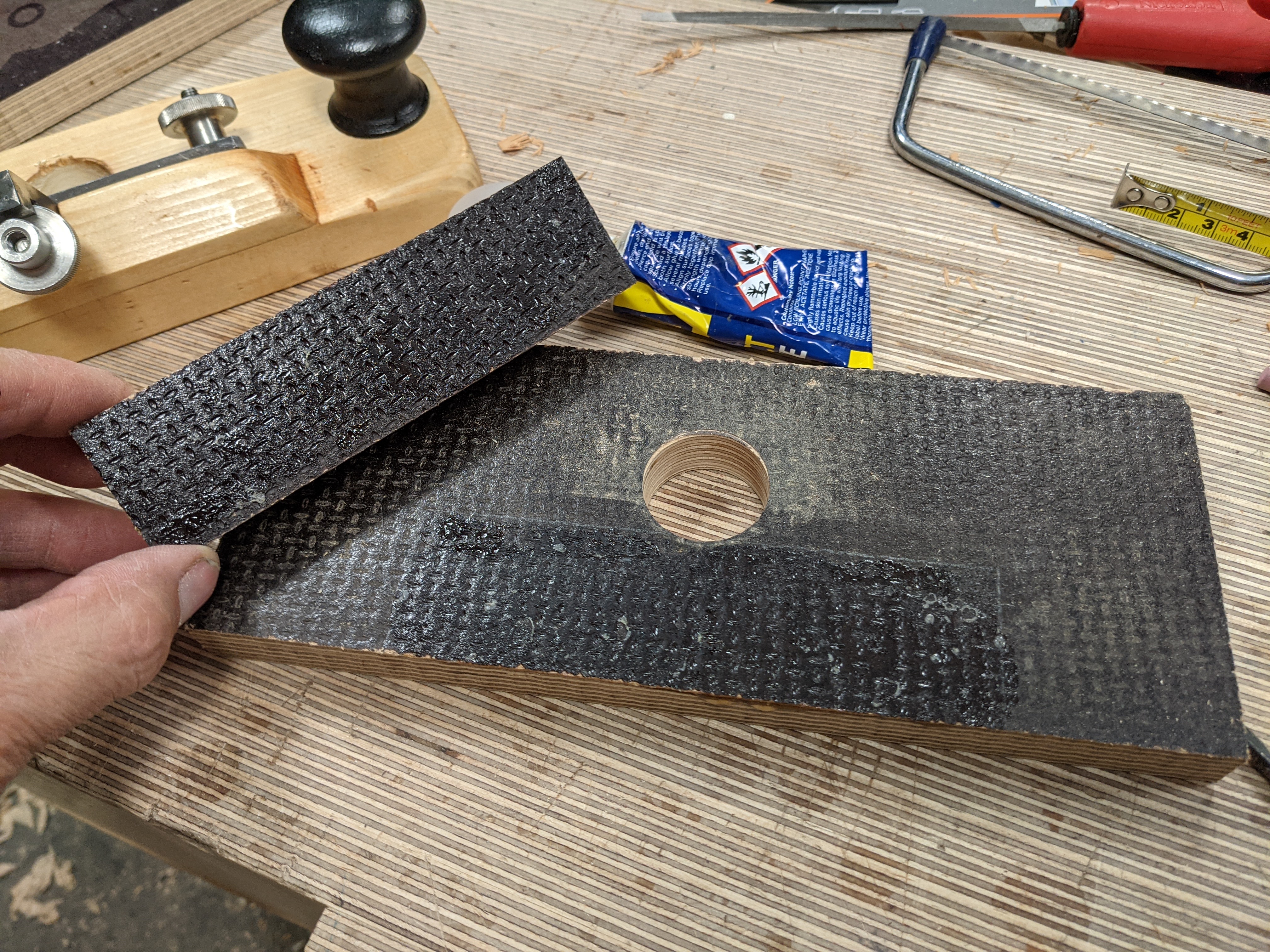 My materials varied too. On some of my planes, I use some coated and embossed Baltic birch anti-skid/slip, van flooring which I liked the look and feel of very much, and because it came from scraps, cost me nothing. There were issues surrounding thickness because the bolts came close to the face of the sole and a slight bubble appeared but I soon resolved that by removing the screw points by a small amount.