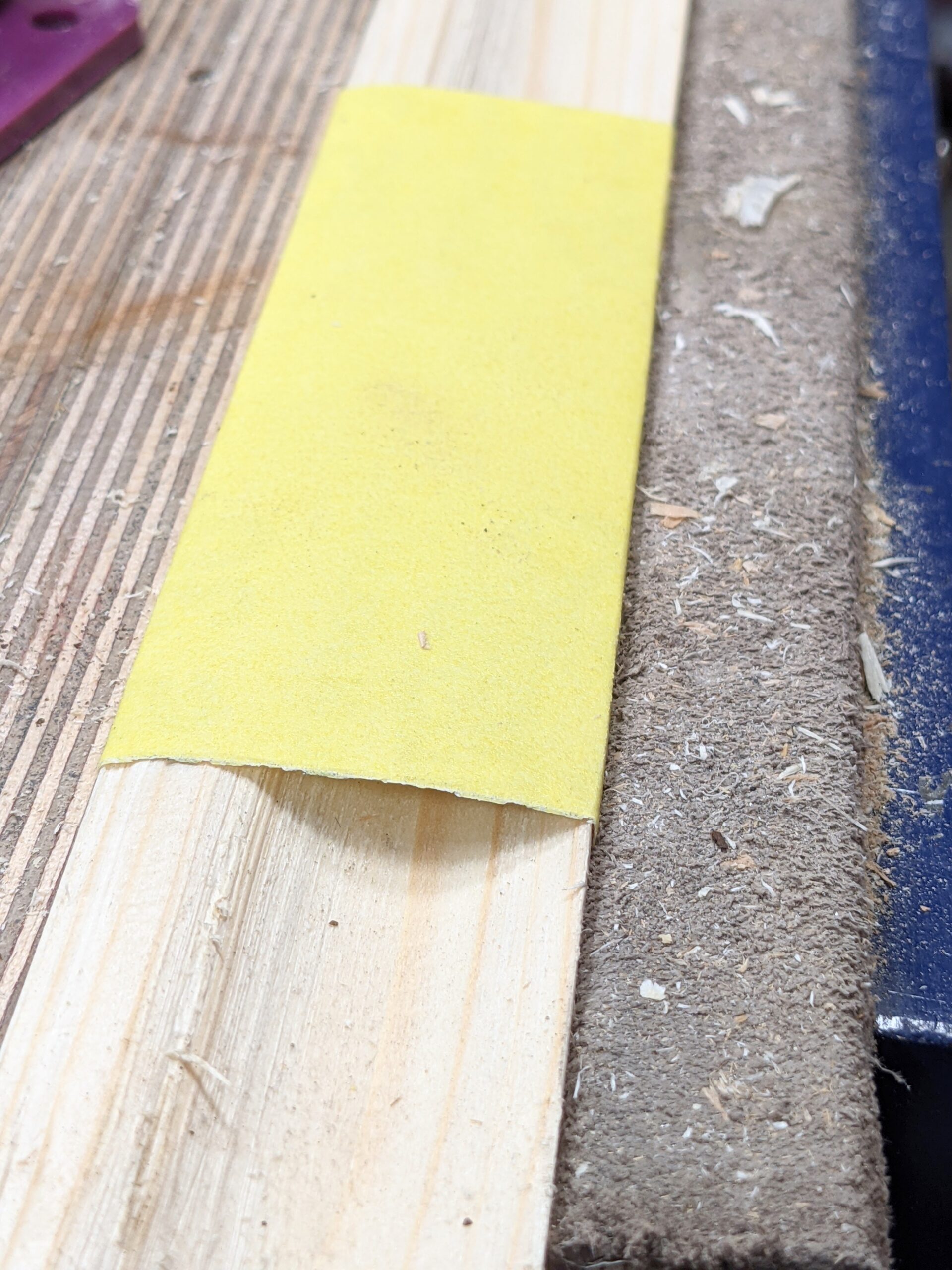 The paper conformed and after about 20 strokes I had achieved my objective in reestablishing the coarser grind of the primary bevel. From there, I coated the actual wood profile with 10,000 grit buffing compound and buffed the whole of the bevel but tried to maintain a 30-degree angle as near as possible.
