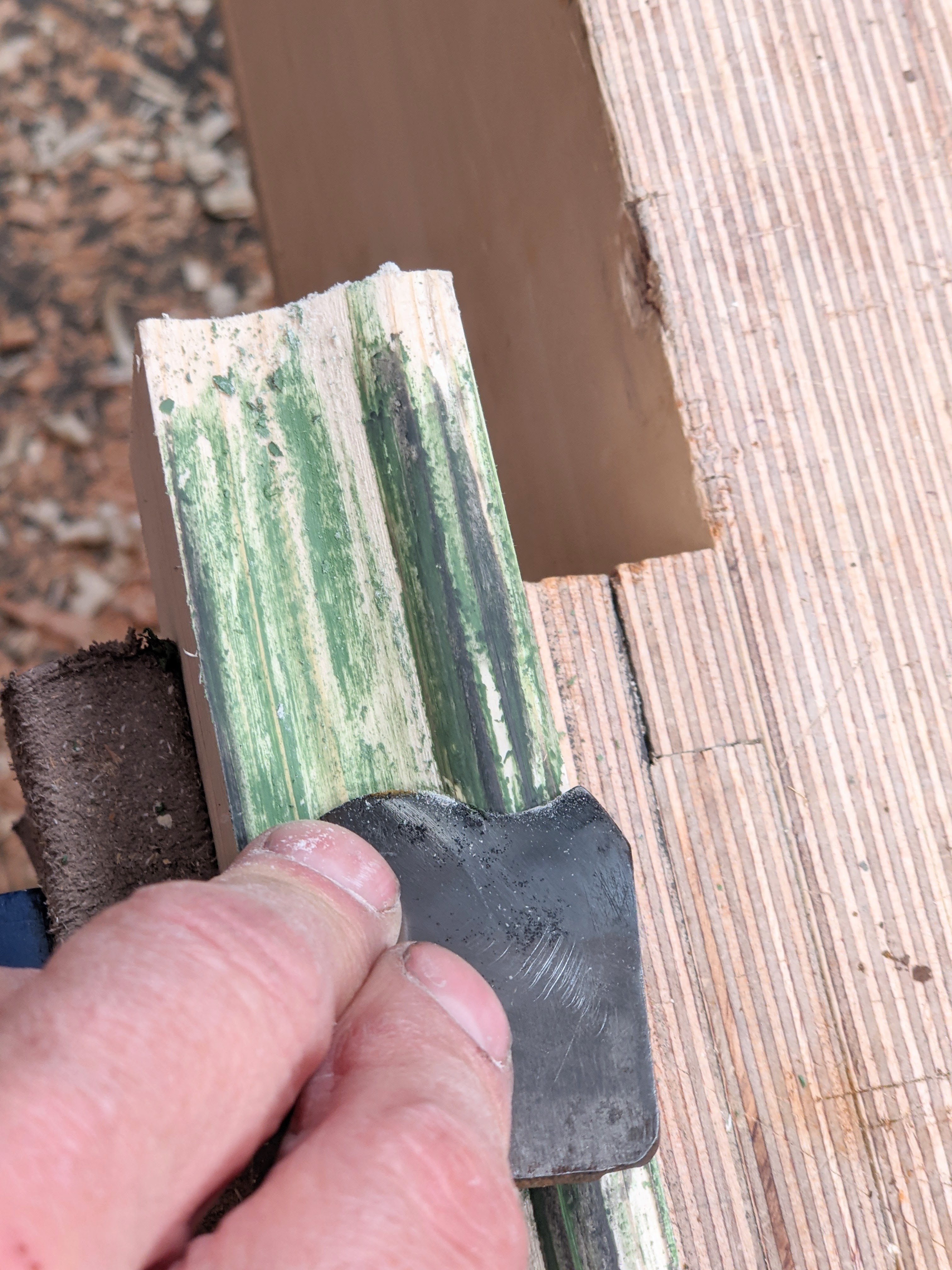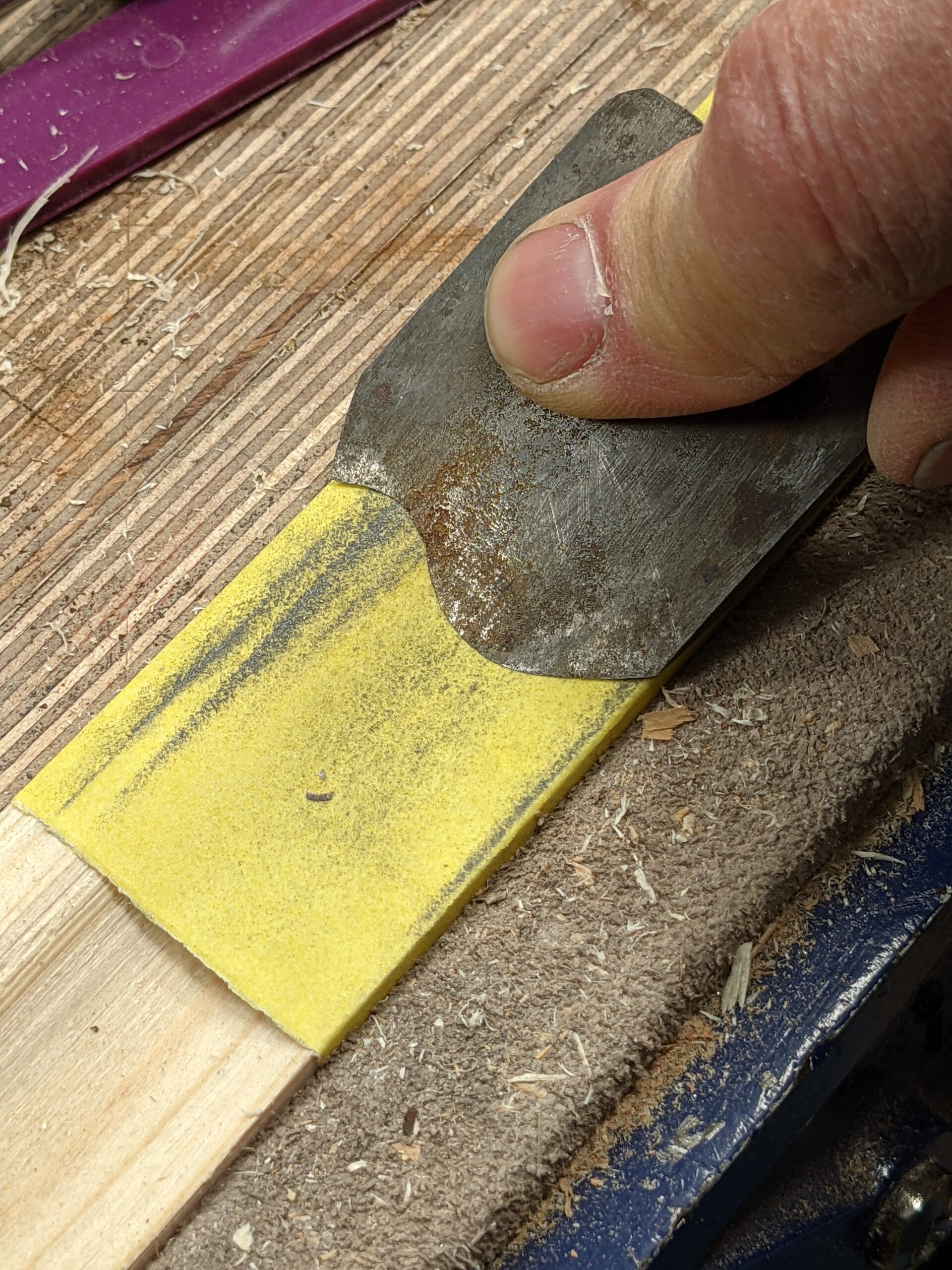 Stretching abrasive paper, 240-grit, across the face of the mould and clamping in the vice gave me the profile when I pressed the cutting iron at an angle of around 20-25-degrees onto and into the mould.