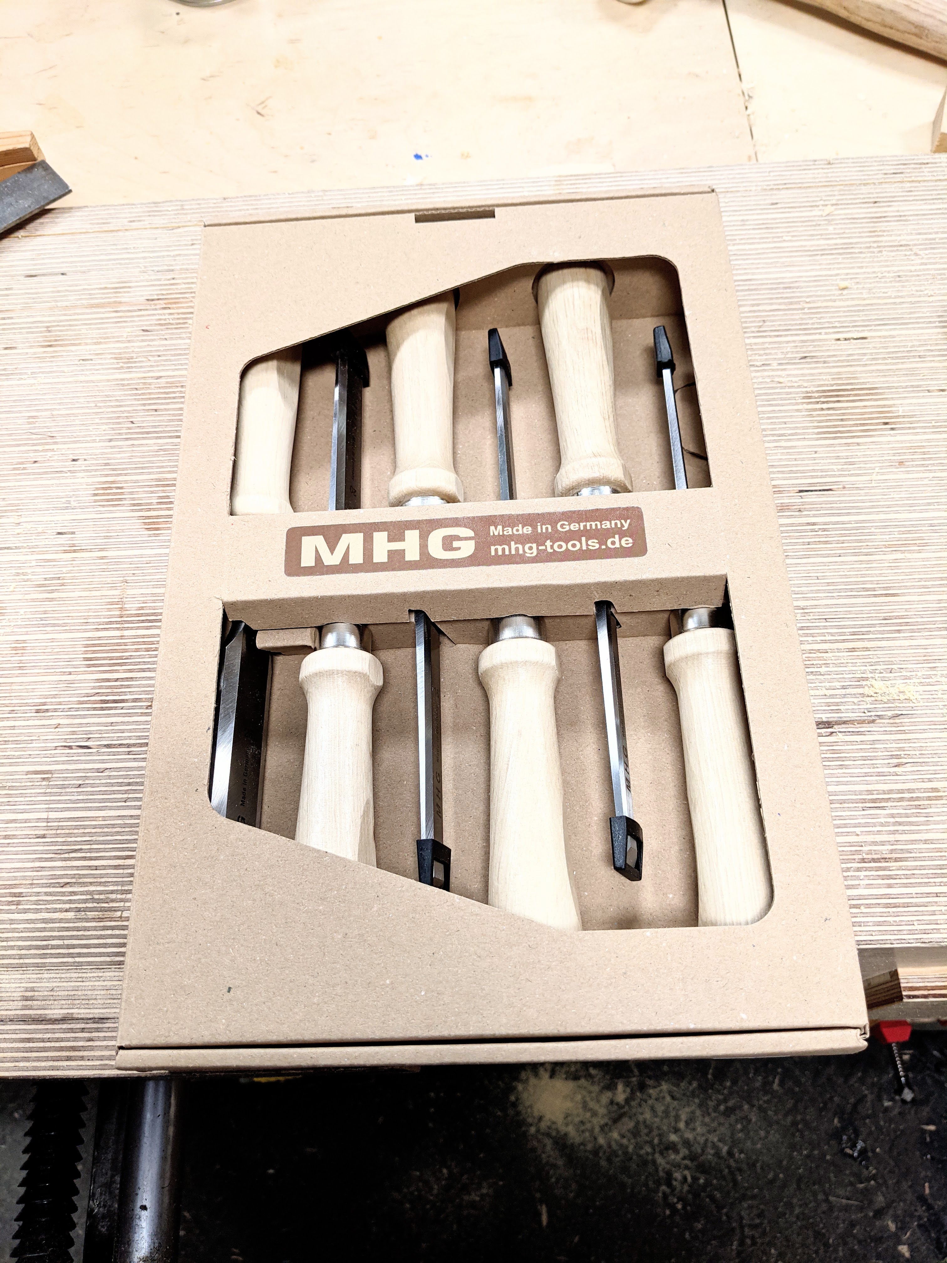 I have been trialing these chisels solidly in daily use for almost three months now and I find them to have excellent quality and give good value for money without compromising the functionality you might expect from say a premium chisel. MHG chisels are excellent value for money at around £60 for a boxed set of six with totally useable sizes inside the box. Others can be added individually for around £10 each to fill in any gaps. These chisels are made by the same makers as my everyday-use Aldi chisels. They have those wonderful, indestructible hornbeam wooden handles that just fit any hand perfectly. I might not like the shiny, steel-looking ferrules but they are fine and I will live with them as I continue to use them long term. Again, these chisels are unfussy and unfanciful and hard to beat when it comes to functionality, edge retention, steel hardness and sharpenability and so on. Comparing these chisels to what are considered premium chisels will be a matter of personal preference to each individual. I will say this, thinking through my past and trialing different chisels from the higher-end market, of the two hundred or so Aldi chisels I have used in my classes for 10 years to date, I have never seen a snapped Aldi chisel, I have never had a handle turn loose of the tang and I have never cut my fingers on the side bevels. I have done all of the above with so-called premium chisels. MHG's main-line production chisels, the former producer of Aldi chisels when they stocked them, are better chisels through and through and are indeed lifetime chisels.