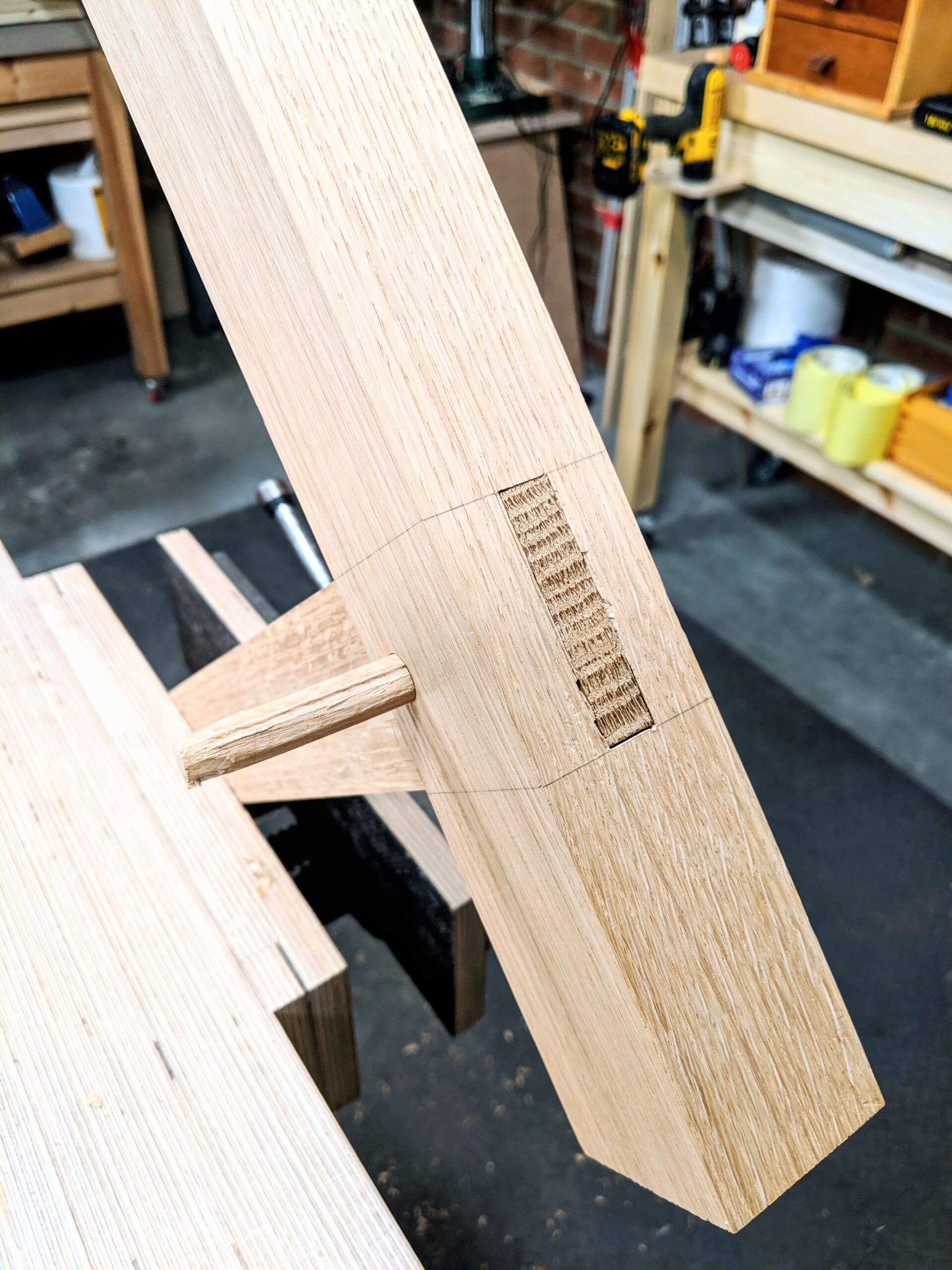 When I was making the first plane I took a two-by-four offcut (top pic and third from left above), lopped it down to 10" and then made the angled upstand and glued the two together. The thing for me in my world of designing and making is that I have always made the pieces I make inside my head before the physical work begins. These rehearsed actions in my head allow me to even arrange the tools I will use on my then 'virtual' benchtop so that as `I rehearse I can pick up the tools I will use to make sure that I have them all. That way, when I'm rehearsed so, I can just go for the real thing knowing the sequence of everything beforehand. Before too long, what I make is sitting or standing there in front of me replete with joints, shapes and so on. Ninety-five percent of the time everything works. I have picked my mortise & tenon sizes along with the dovetail types and sizes. Recently I was asked if I followed the so-called 'thirds-rule'. Not usually, I answered him, as a rule, it doesn't work for most stuff so I never even contemplate it and have never adopted it as a rule nor knew any of my mentoring craftsmen as full-time makers making any reference to such a thing even though for some frames we do end up with something like that happening. This rule generally works with doors and panel framing, so, for 95% of the work woodworkers and furniture makers do, the theory doesn't hold; table legs, chair legs are usually of unequal proportion when it comes to rails and legs, etc. How could it work? So too other pieces we make like tables, benches, bench seats and so on. Think about it. Look around your room and make mental notes. How many mortise and tenons on your furniture pieces follow the so-called thirds rule? On most tables, for instance, we push the mortise to the outer faces of the legs to increase tenon length in the rails to the maximum, for added strength.