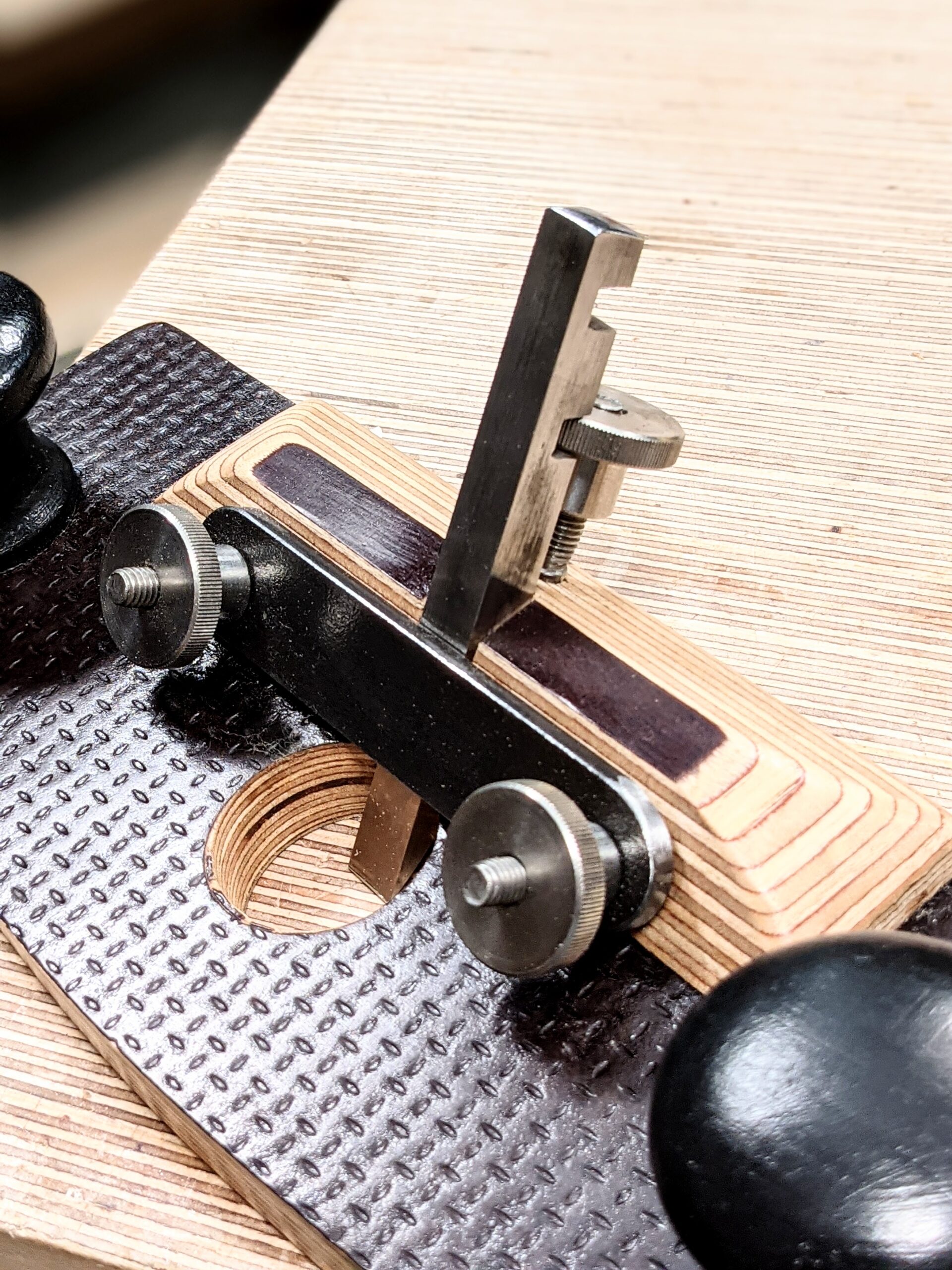 My plywood workbench did the same thing and punches above its weight in the daily use in my workshop. I am not into pretty workmanship (though I appreciate it most of the time and there is a place for it) so much as functionality first and by that the fullest of attraction. Truth is this, I want a bench I can gouge by accident when I slip with a saw or a chisel and one I can drive a nail into to describe an arc for a rocking chair rocker. If I spill paint, oil, glue or whatever, I don't want to panic. I just want to wipe up the spills and get back to it. So here is a tool that parallels my intent to simplify and counter pretentious snobbery yet something that truly works. Will plywood hold up long term? Probably, possibly! Does it matter that much? I expect a 10-20 year lifespan if I am careless with the plane, but I will not be. The only part that could be in jeopardy is the sole. This 15 ply Baltic birch plywood is the one engineered for lining working van floors, hence the texturing for an anti-slip surface. The other face is silky smooth. Of course, it's not cost-effective to buy an 8 by 4 sheet of 3/4" plywood to make a single router plane so you will need to be inventive in finding your piece. Start with eBay. I have seen inexpensive panels for just a few pounds. Also, you could consider the sole to be replaceable, add a wear plate of brass or reface it later.