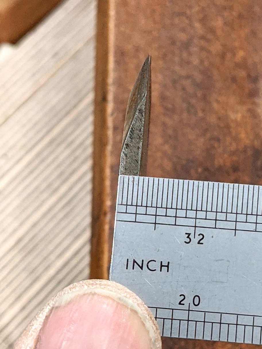To conclude my working on my Madox plane I will add the dimensions in response to two requests. The plane body itself measures 9 7/8" (250mm) long, standard for Madox planes, it is 3 5/16" (83mm) tall and 2 11/32" (60mm) wide. Beech seems always to be the best wood for moulding planes since the early 1700s when other woods were passed over in preference for the straight-grained non-problematic beech wood. Fruit and nut woods were used in earlier periods until beech took over. Beech is indeed well proven for its longevity, workability with hand tool methods and stability. This Moxon is as good an example as any and is as true as the day it was cut and moulded to its final profile. Additionally, it shows no sign of straying from the path it will keep creating. A few additional details interested me and I thought you might like my thoughts.