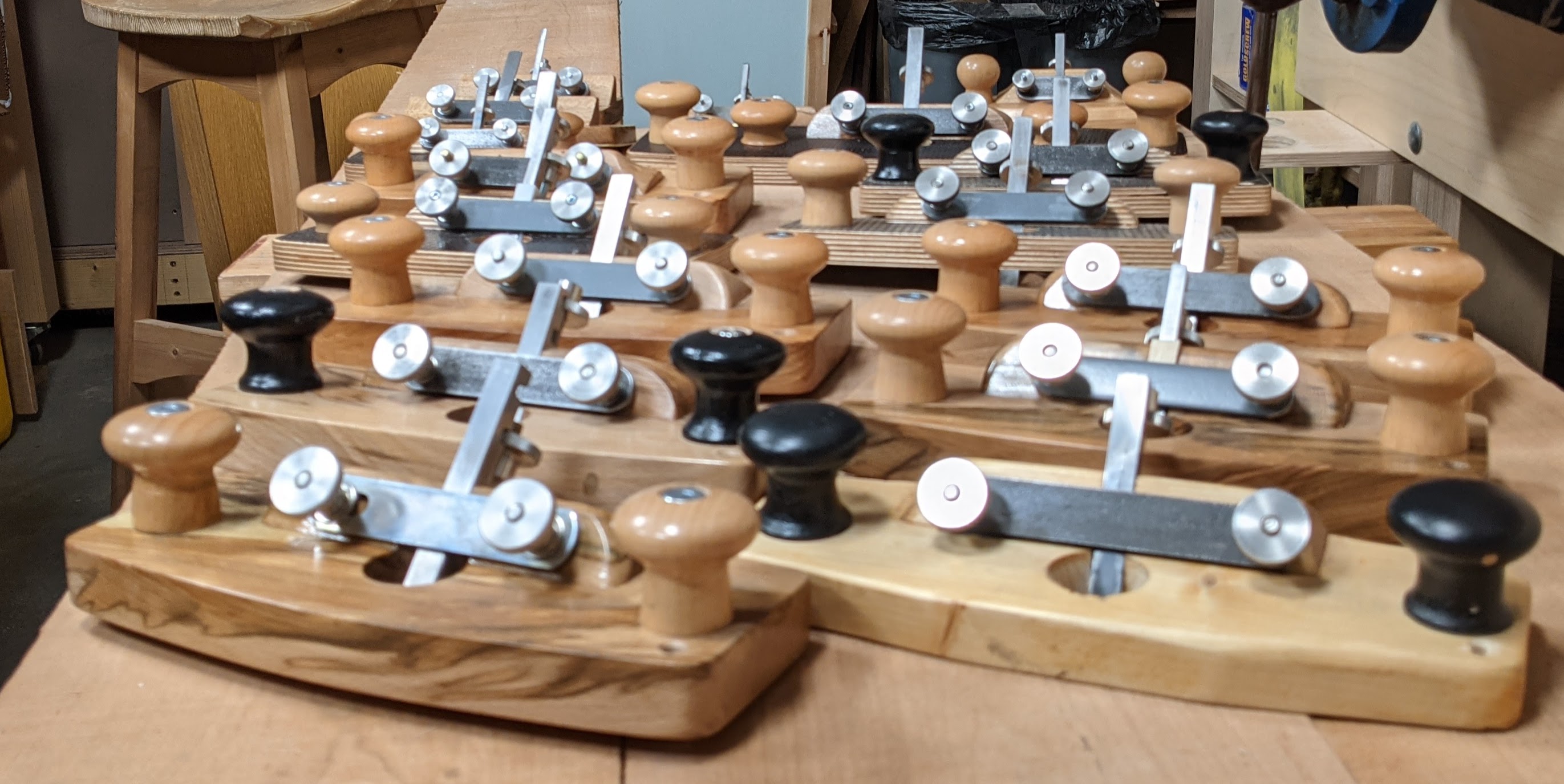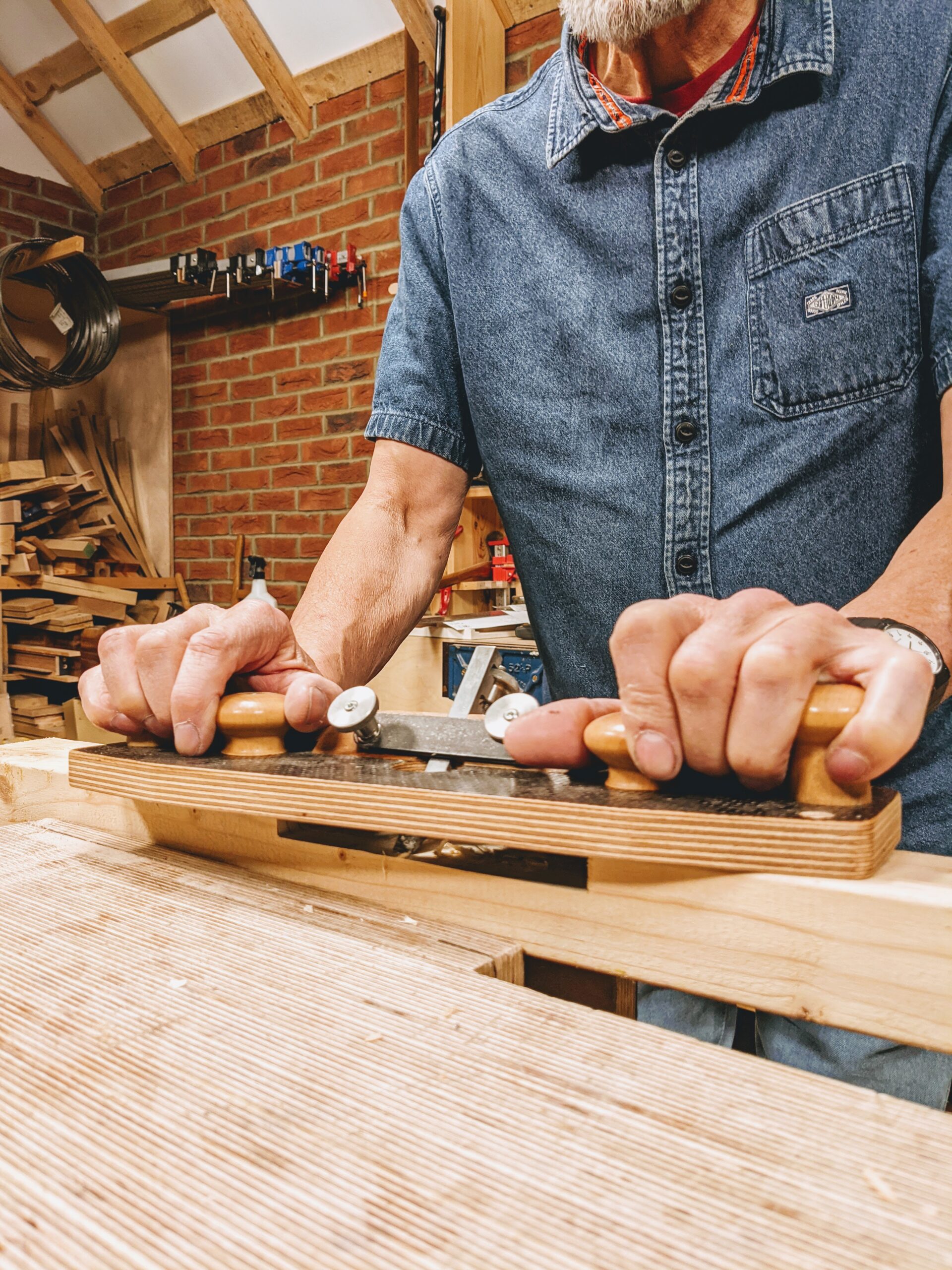 I have now used my new hand router planes since June on a more daily basis and especially since I brought it out of hiding. I cannot fault its functionality, weight-to-strength ratio in the hand and its simplicity, etc. I use three or four of my new types in quick succession or where I want to keep one to a fixed setting for the final pass. I have always done this because I have always owned 20 or more planes since the days of holding classes for that number of students. My concern in recent years has been the consistently rising costs that seemed on an ever-steepening climb month on month. New ones are generally prohibitive for those just starting out and those on a low budget, so something needed to be done. Also, since time immemorial, what we woodworkers have always enjoyed is customising an existing tool or making a tool that exemplified our crafting skills. We often want a tool to suit our more personal preferences and needs and this router plane offers that possibility perfectly. Already I see lignum vitae soles alongside purple heart sandwiched between maple, walnut and oak. Making any tool is always an adventure in the making but boy does this one tick all the boxes.