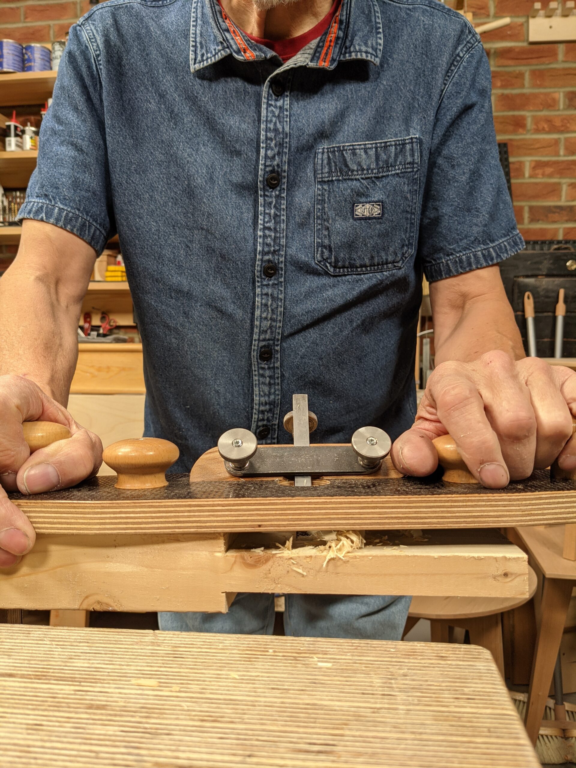 Some of you expressed concerns about not being able to sharpen the blade so that the cutting edge is perfectly paraplanar to the sole after sharpening. I showed how to achieve this with the now more common metal router planes with the vertical cutting iron strapped to the post with the adjuster to the top. My method works perfectly for settling what was a difficult issue to resolve on metal router planes on a consistent basis. On my new router plane, it's even simpler and I will offer this solution very shortly.