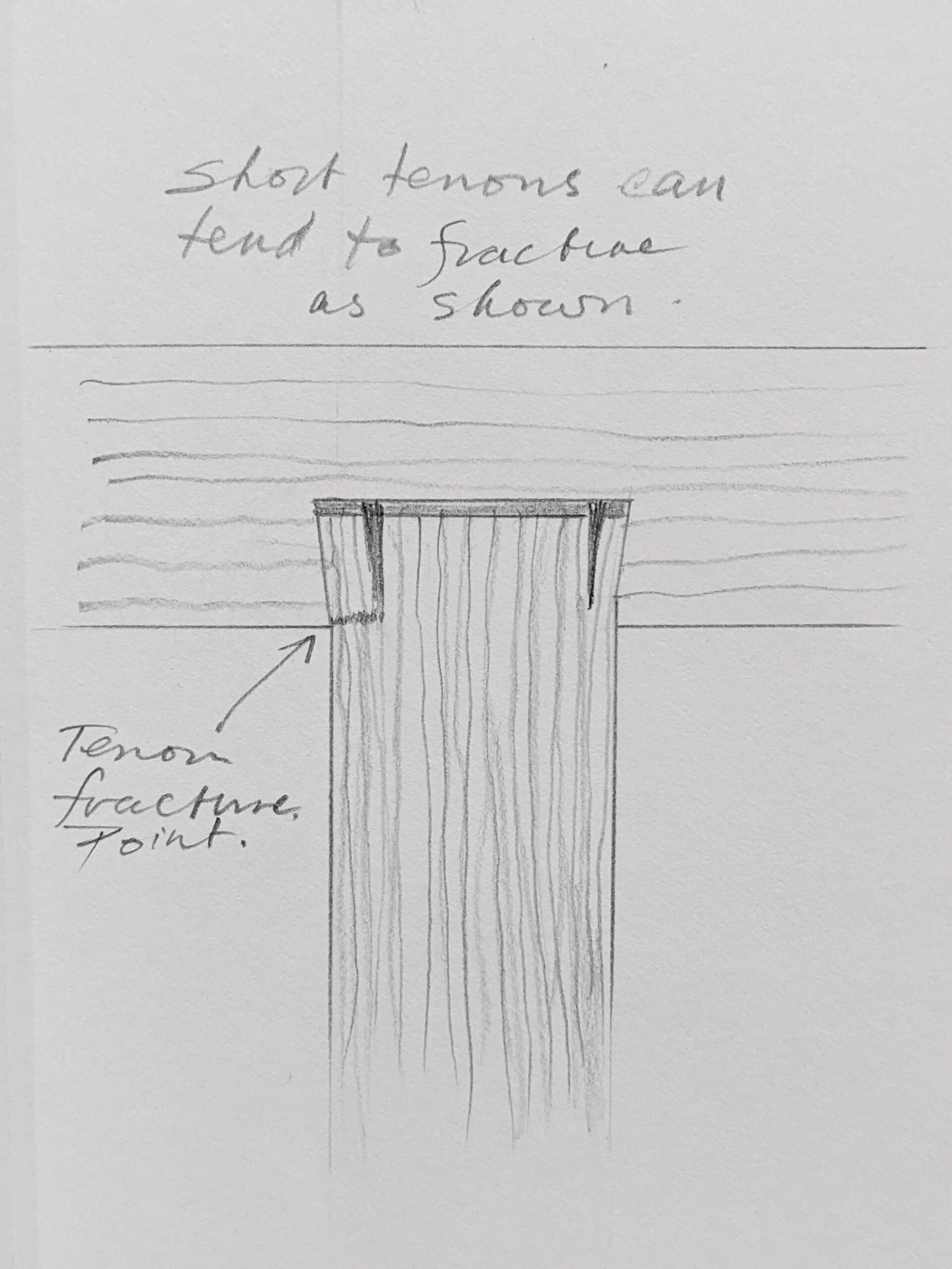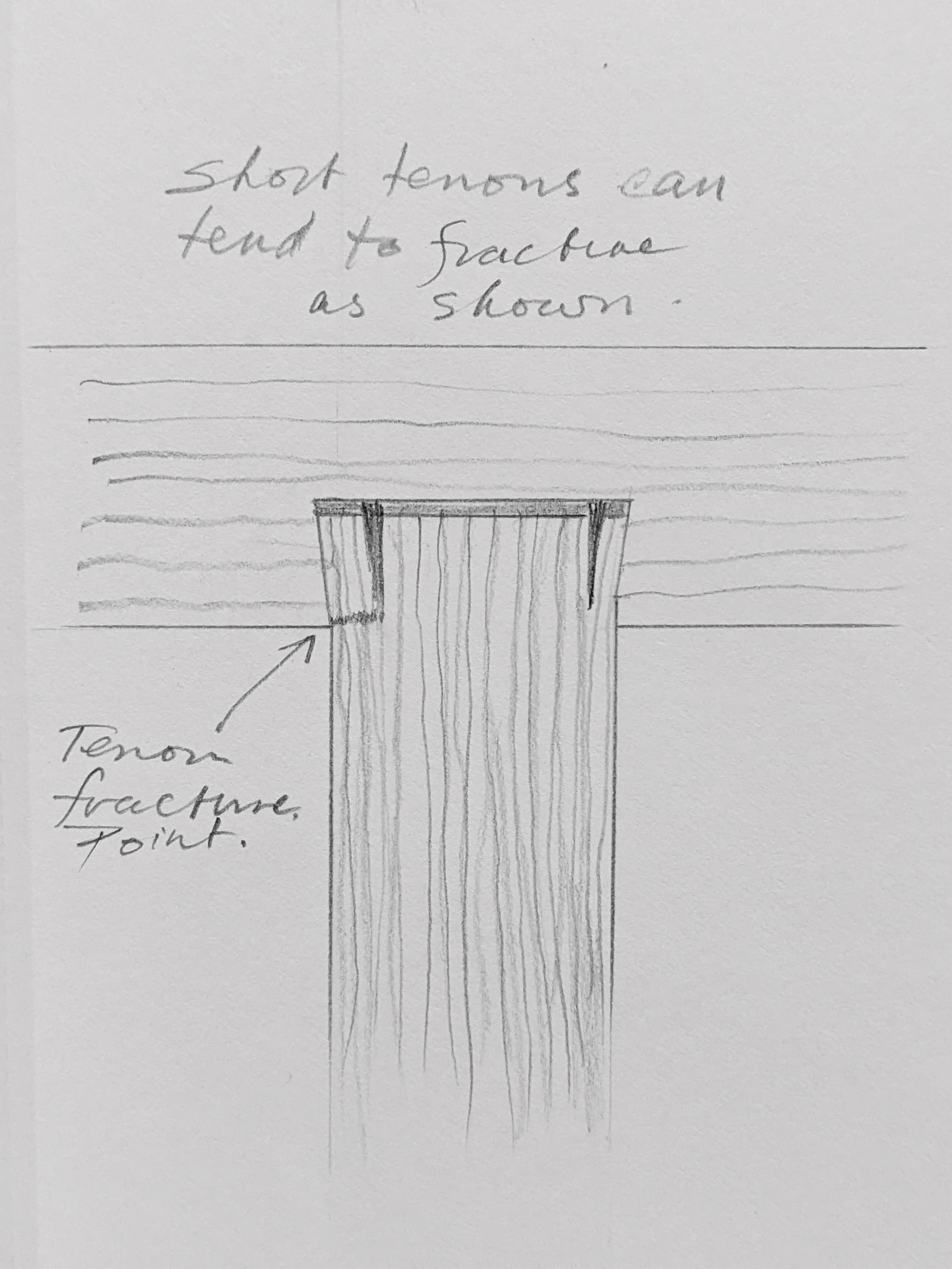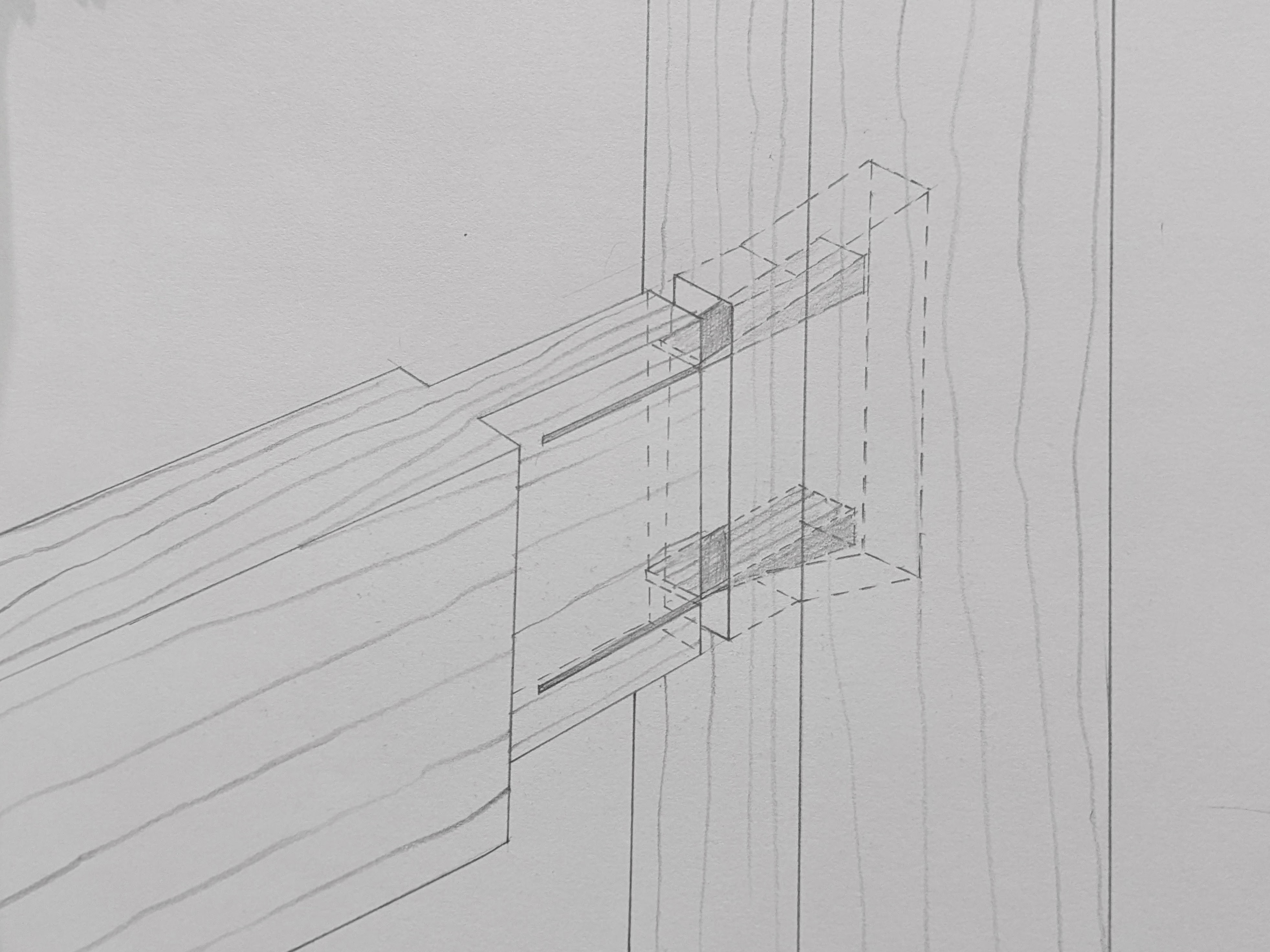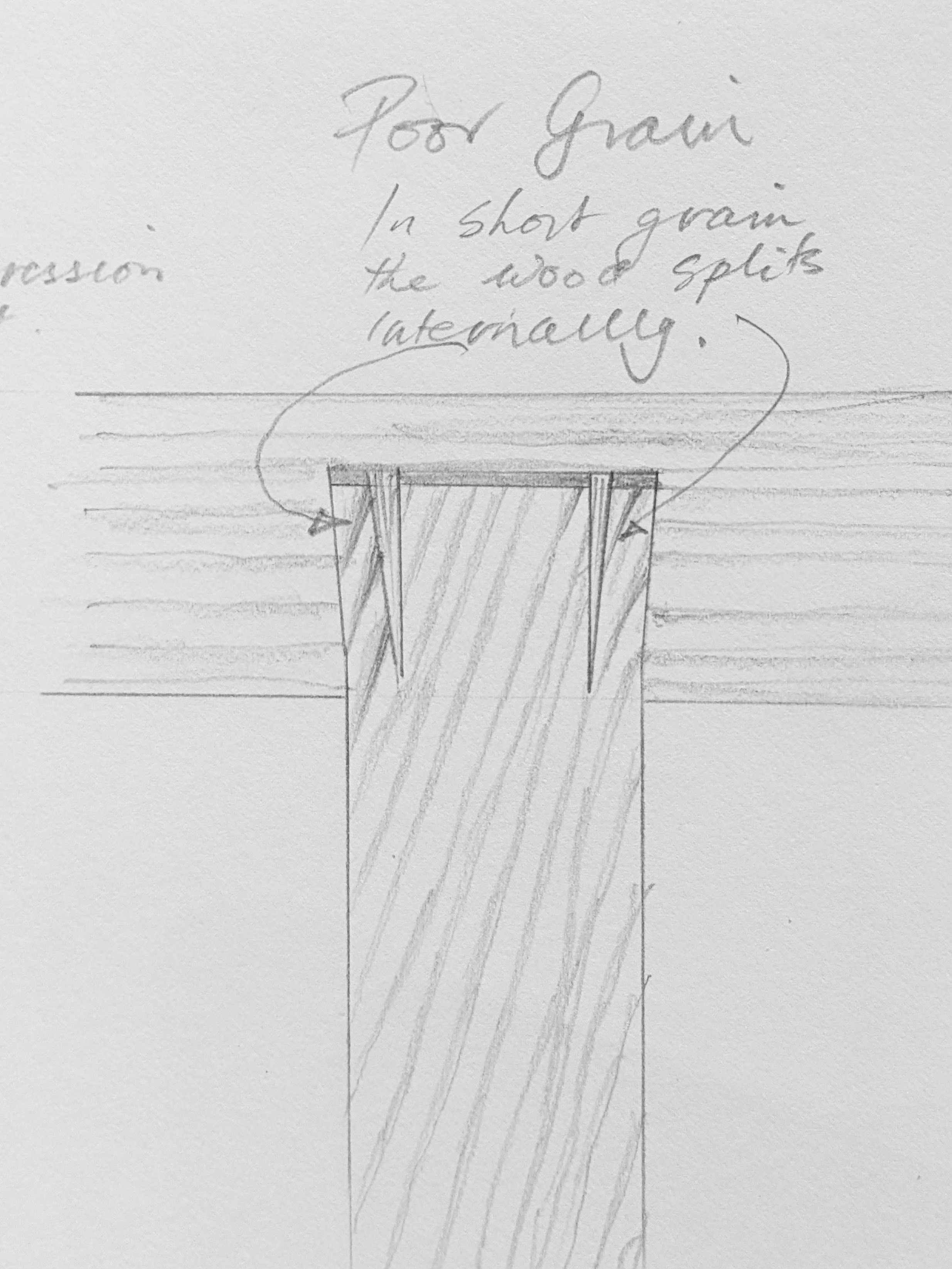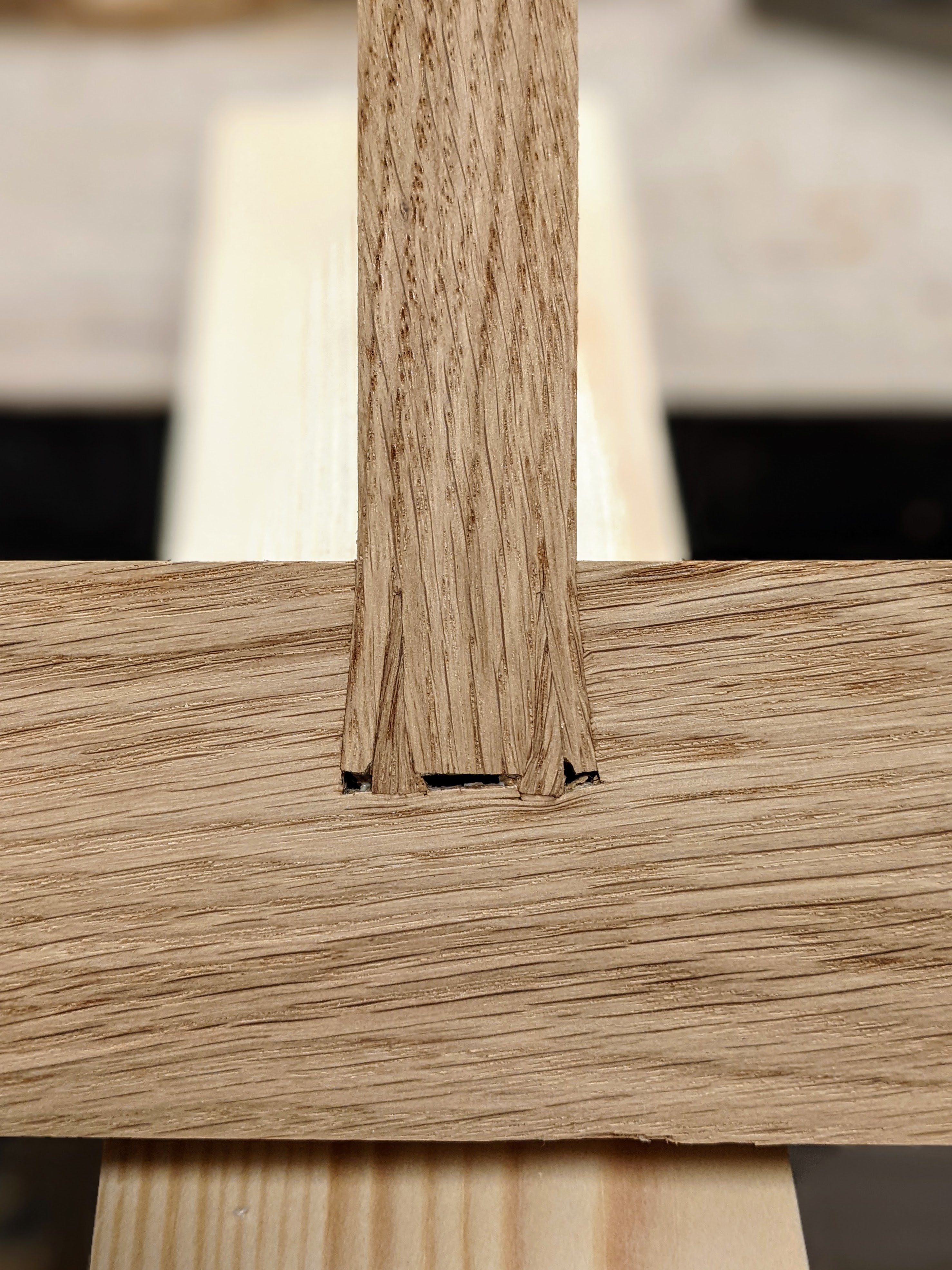 As mentioned, the fox-wedged mortise and tenon is rarely used but it is used as a rarer solution where pulling power is needed over long-term use. In almost all circumstances, it is used where the whole joint is to be hidden from view. Because of this, you are unlikely to ever see or even know such a joint type has ever been used let alone existed. I am using this joint in my upcoming project for an episode in the Sellers' Home series. It's not only a rare joint, the need for it is rarer still. I decided on it for a specific reason I will reveal in the video we film in the first week of the new year. I have four to do and I am looking forward to it. Anecdotally, I saw the joint used first when a door stile curved away from the shoulder of a super long rail in a massive gate for which no clamps were long enough. George, my then mentoring craftsman in my apprenticing days, cut the two saw kerfs and said, "Watch this!" When the joint and wedges were in place, he took a heavy sledge and pounded the stile until it seated to the shoulders. An amazing example of its efficacy!