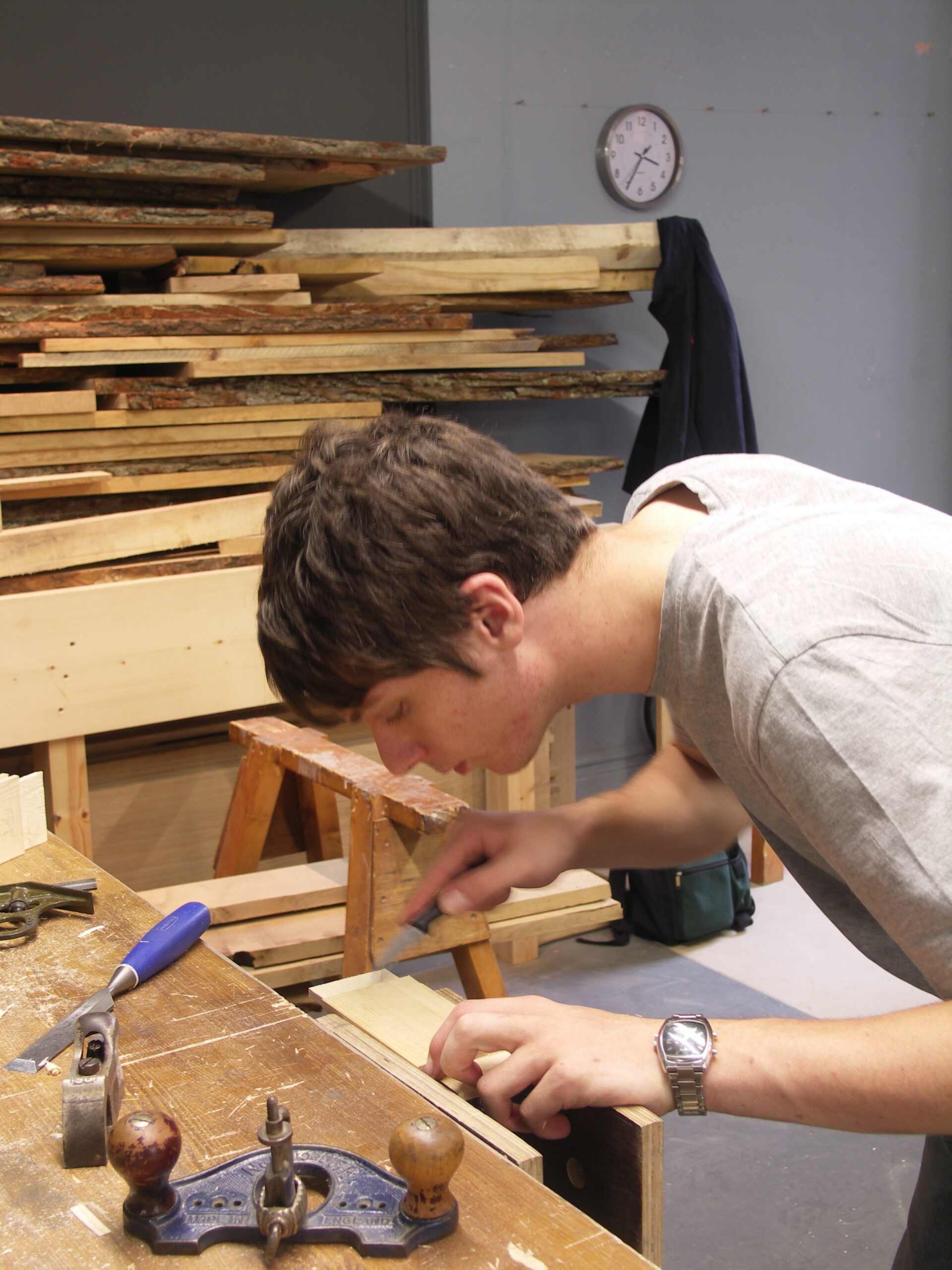 A few years later, John had finished high school and decided to take a gap year before pursuing a teaching qualification. He came to live with my family and work and train further with me at the workshop, which then was in Penrhyn Castle, in the form of a structured yet compacted apprenticeship. I enjoyed him being there and learning but I saw then that something had shifted. His interests in wood, tools and woodworking had really heightened exponentially. He reminded me of myself when I was young and apprenticing. He began experiencing things by experimenting with different elements of woodworking and took ownership of his findings. Taking interest in everything taught him, yes, but taking that ownership is a whole new level I have seen from time to time in different people and in my view, critical to those who want the lifestyle I so often suggest and speak of that can lead to a diversely different way of living. But John never took anything I said for granted. He wanted to know things from the inside out and this is the very ingredient I always looked for in my apprentices but did not always find it. He never stopped making and never stopped experimenting with tools, wood, etc to see just what could be performed with them. This might not seem significant but it is probably one of the most significant things in my world. Within a year, I had no qualms about him sharpening and using my personal tools. He had become experienced and I trusted him to treat the tools as I did.