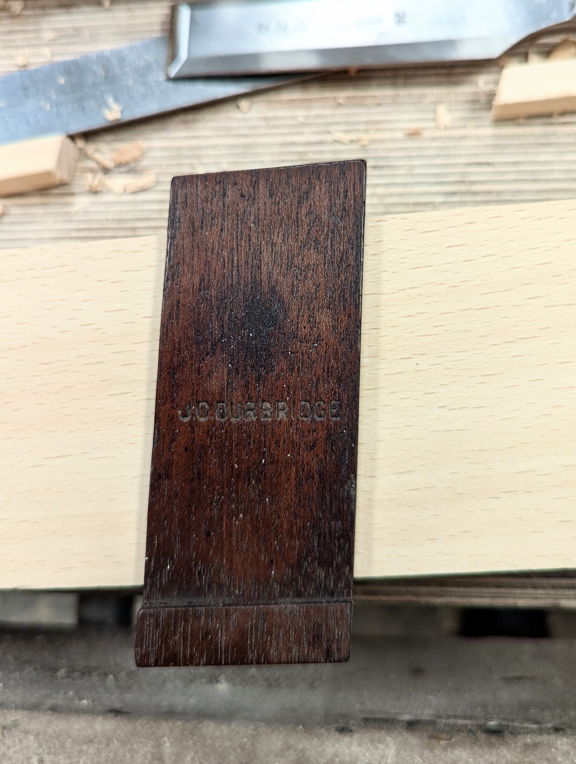 So now you have it. It's mine, for a season at any rate, this rarer find of almost discarded wood. These oft abandoned, nameless orphans seldom find a home nor ongoing use. You don't find dovetail templates very often, even, I can say, in a whole lifetime of working wood. Especially do you not find the well-used ones with the name of a maker stamped in and that's because the family most likely have no idea what they're dad, granddad or great granddad used it for. Most children and grandchildren have no clue of their father's craft in terms of how they did it, where they worked, things like that. He's usually a man that leaves around seven in the morning and remains unseen until six or seven each day. So I look at this well-worn, man-made thing and think of Mr. J C Durbridge marking out his thousandth dovetails with a pencil freshly sharpened. How he lifts his dovetail saw to cut to the angled lines dead-square across and lines his eye up to the saw plate, squints a little to focus, and then slice-cuts parallel to his lines. Really, it's the kind of thing I'd keep if it was my dad's. Even if I didn't know what it did.