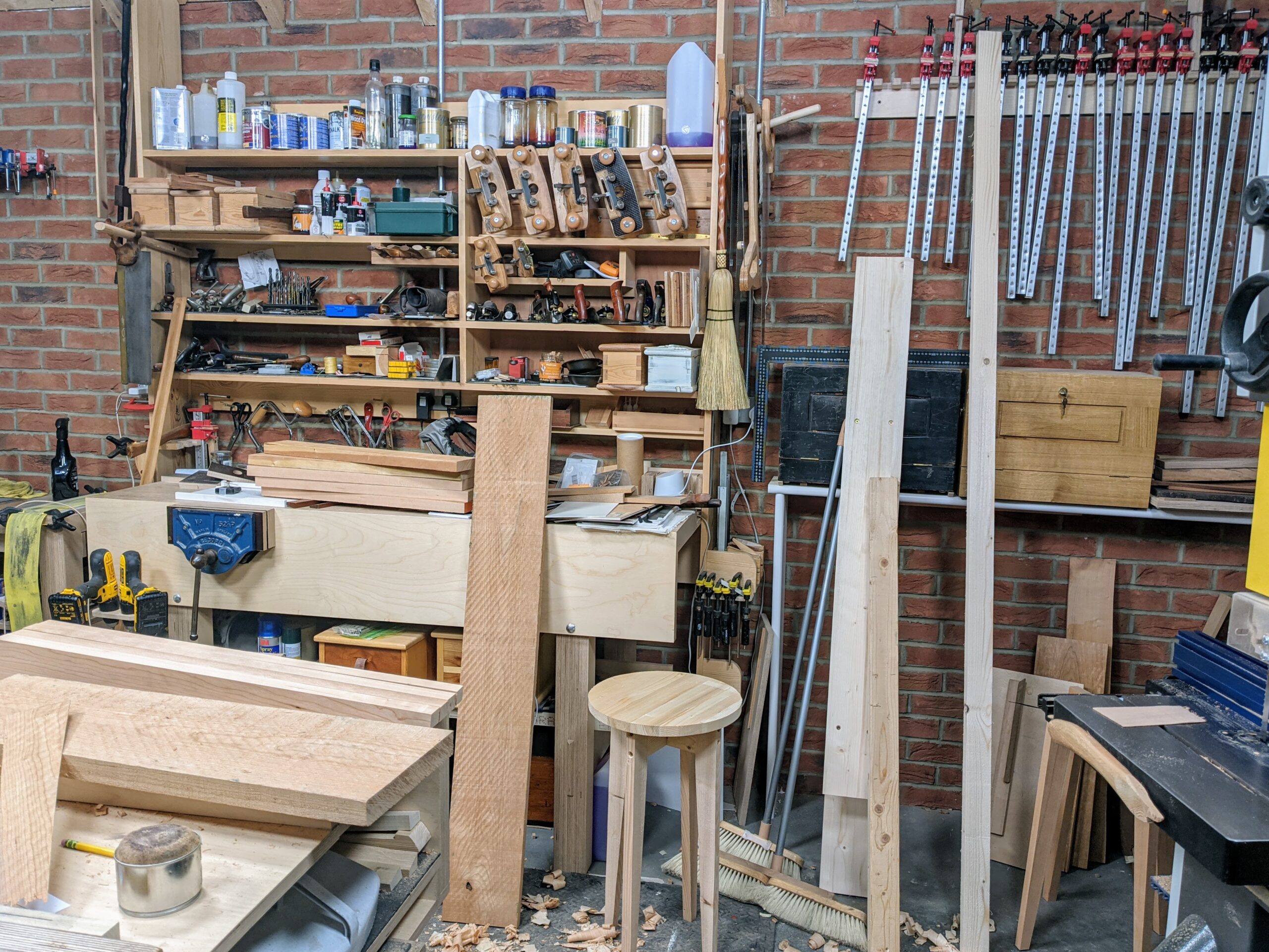 After all these years, decades, I still find myself trying often to put myself in the shoes of others and try to especially think how new woodworkers face taking on my craft might feel as they consider their future steps to include serious woodworking. By this, I mean what to dofirst? One issue is whether to take the obvious route and buy machines. Well, many if not most soon discover they must have a place to set them up and have a place that's big enough to walk around them to use them. The footprint of a tablesaw may be no more than a meter square, but factor in the outriggers, the fore and after space for feed and take off and the footprint generally quadruples. A bandsaw and a planer takes up similar space and a chopsaw or radial arm saw adds to the massive loss of floor space.
