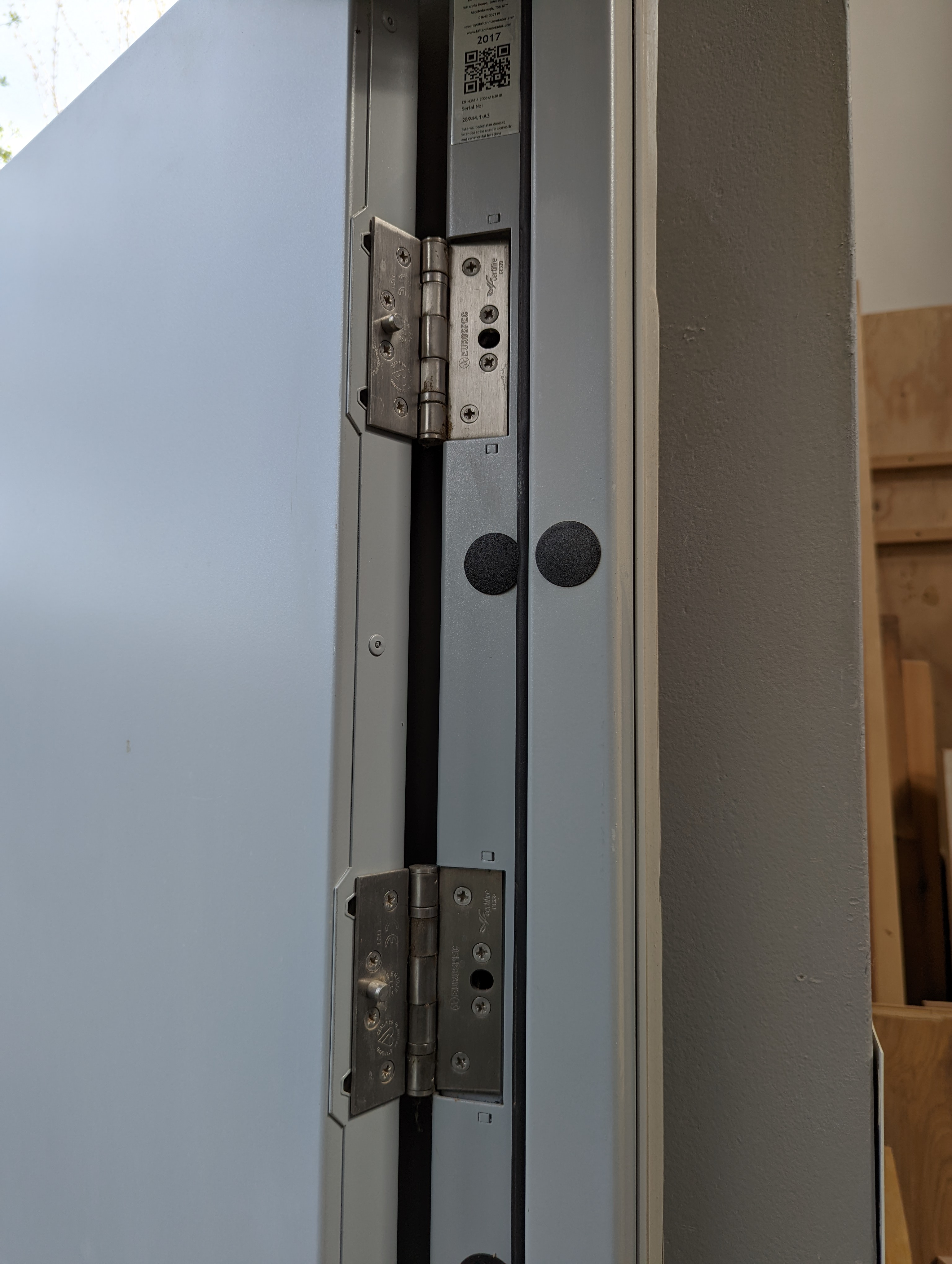 Considering the physics surrounding hinges and doors, questions arise around where to position them and this is mostly determined by the rails in relation to the stiles. Even modern doors still rely on mortise and tenon joints to the corners and rails and some of the larger, longest and deepest mortise and tenons we use today surround door making because the tenons extend into the mortise holes for maximising stability in something that literally just hangs within a space and that is fixed only on points along one side; this is especially so if we indeed dismiss timber-framed structures like vintage barns. On these buildings, I've seen them 21" wide, 1 1/2" thick and 10" long.