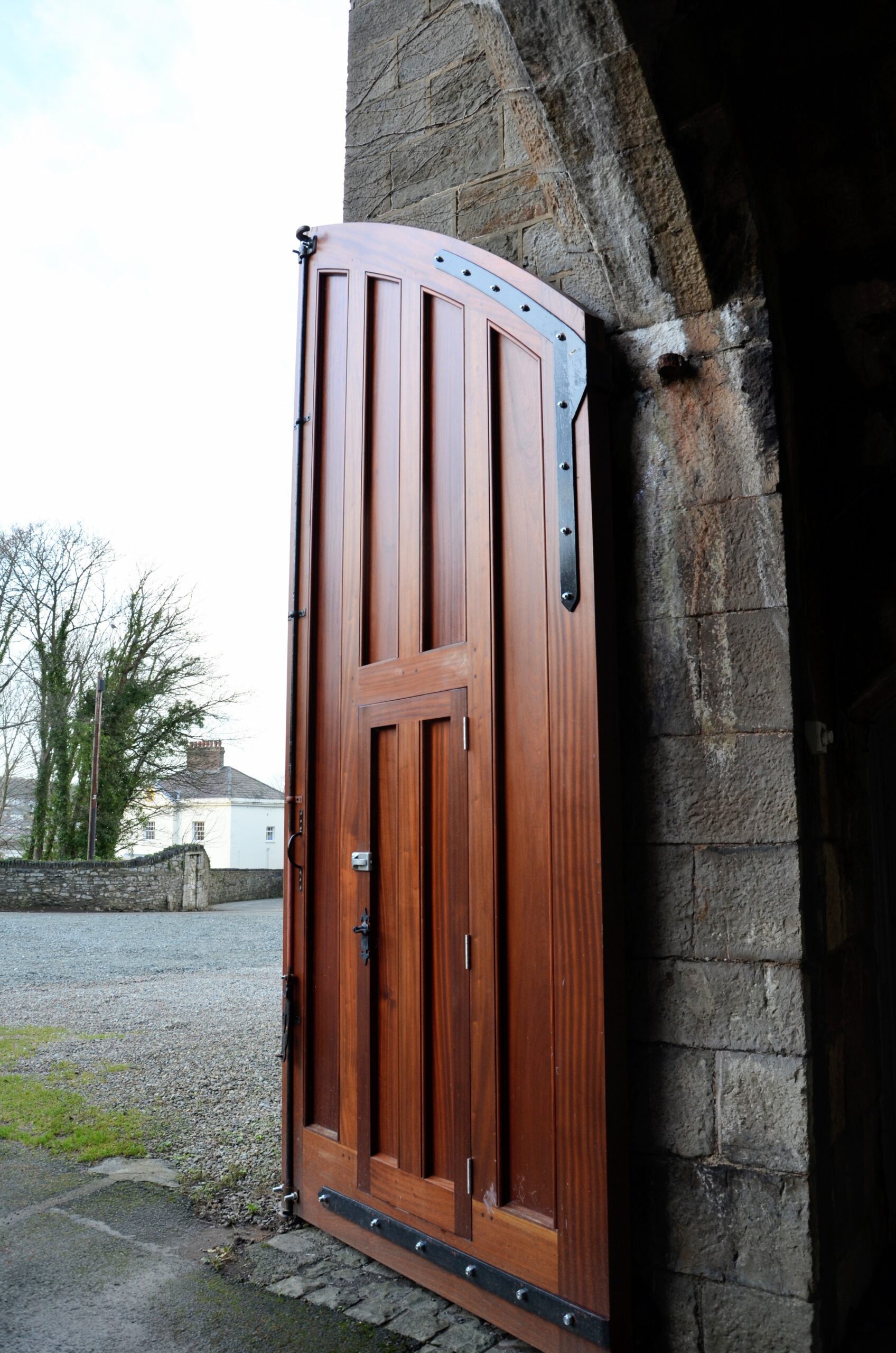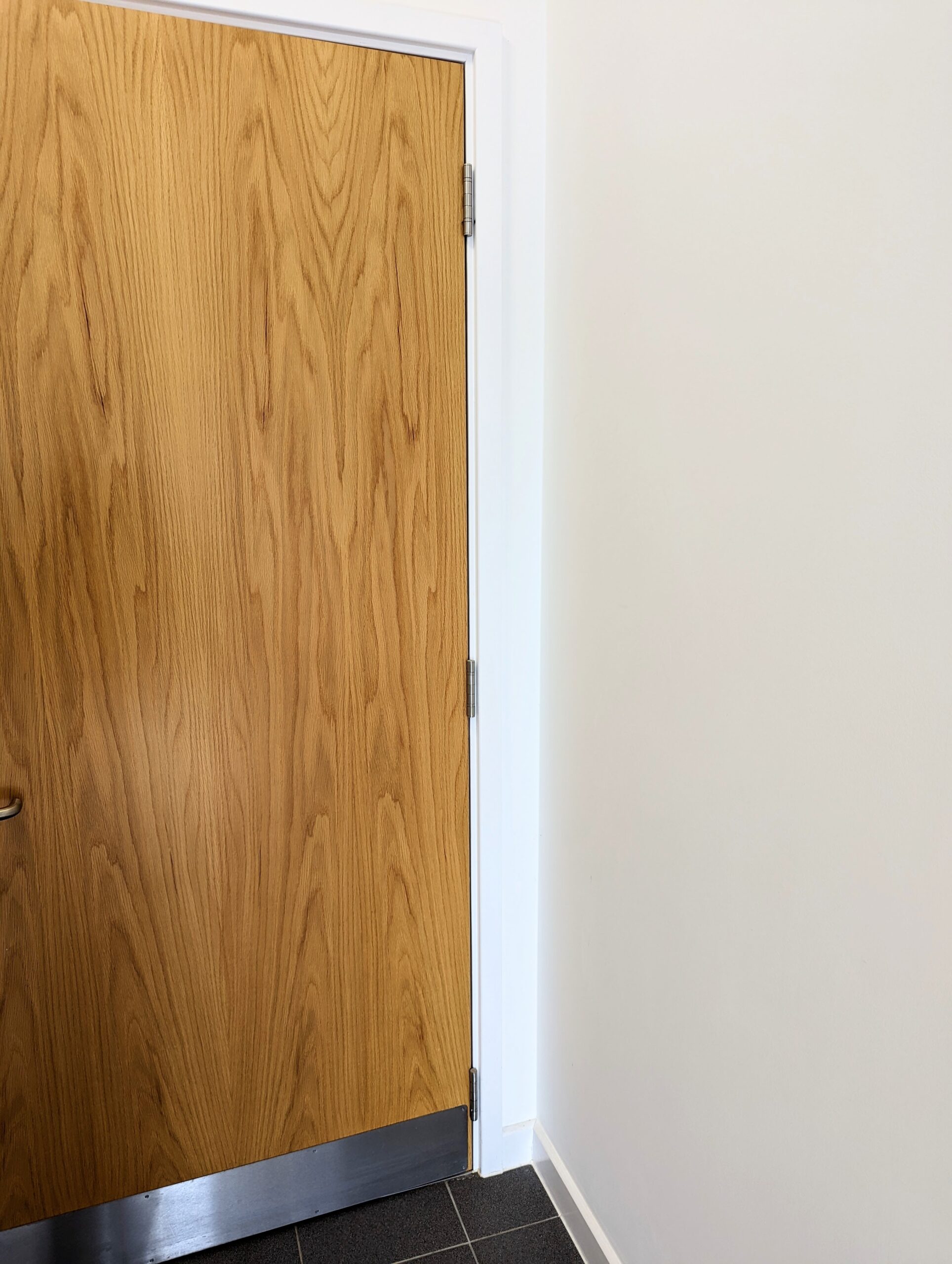 Considering the physics surrounding hinges and doors, questions arise around where to position them and this is mostly determined by the rails in relation to the stiles. Even modern doors still rely on mortise and tenon joints to the corners and rails and some of the larger, longest and deepest mortise and tenons we use today surround door making because the tenons extend into the mortise holes for maximising stability in something that literally just hangs within a space and that is fixed only on points along one side; this is especially so if we indeed dismiss timber-framed structures like vintage barns. On these buildings, I've seen them 21" wide, 1 1/2" thick and 10" long.