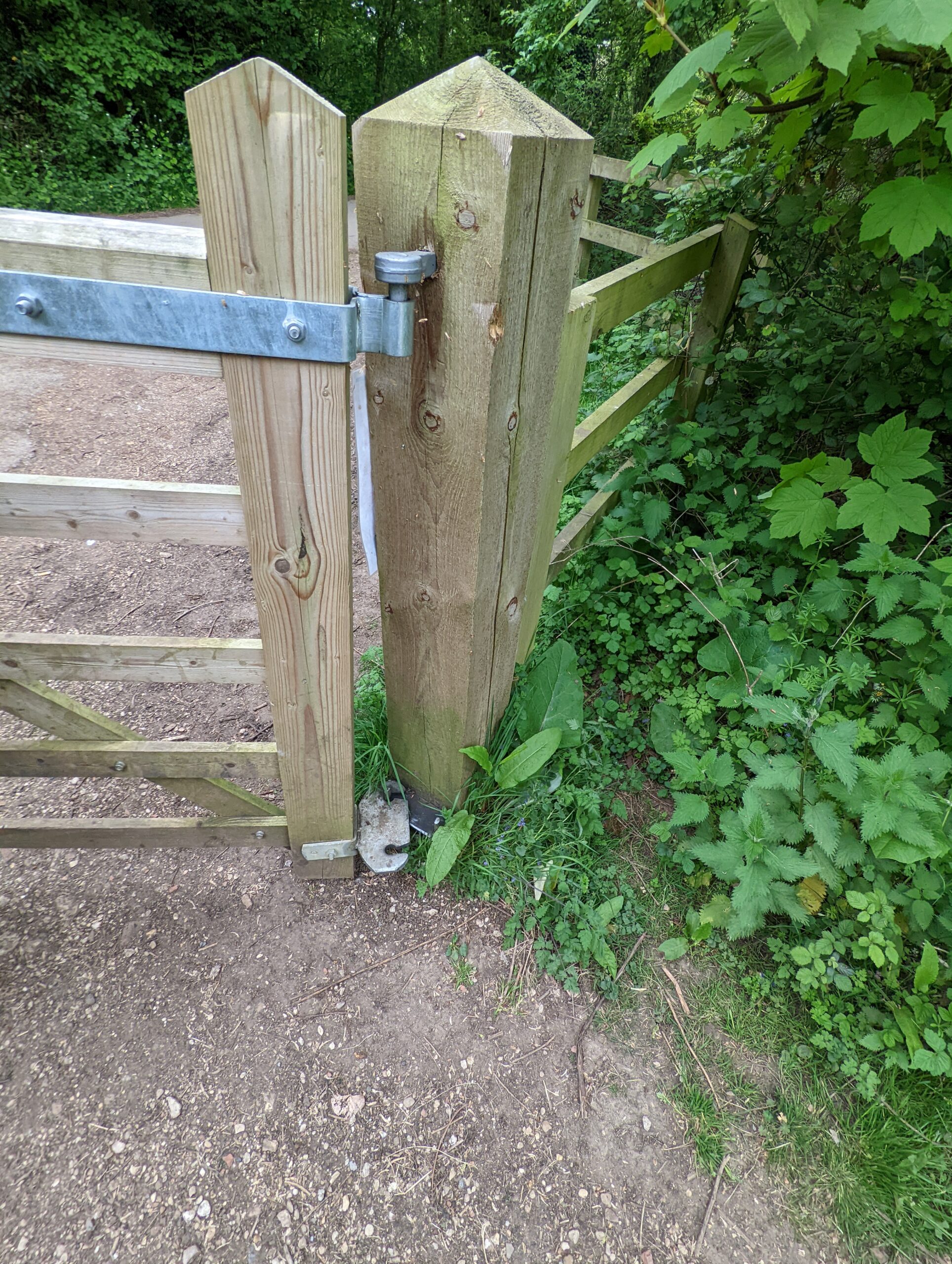 A wonderful example of weight transfer is the English field gate that relies on a fixed top pintel only and then the weight of the gate against the bottom ones twinned to allow the gate to open and close in either direction and used mostly for allowing horse riders to pass through whilst remaining mounted.