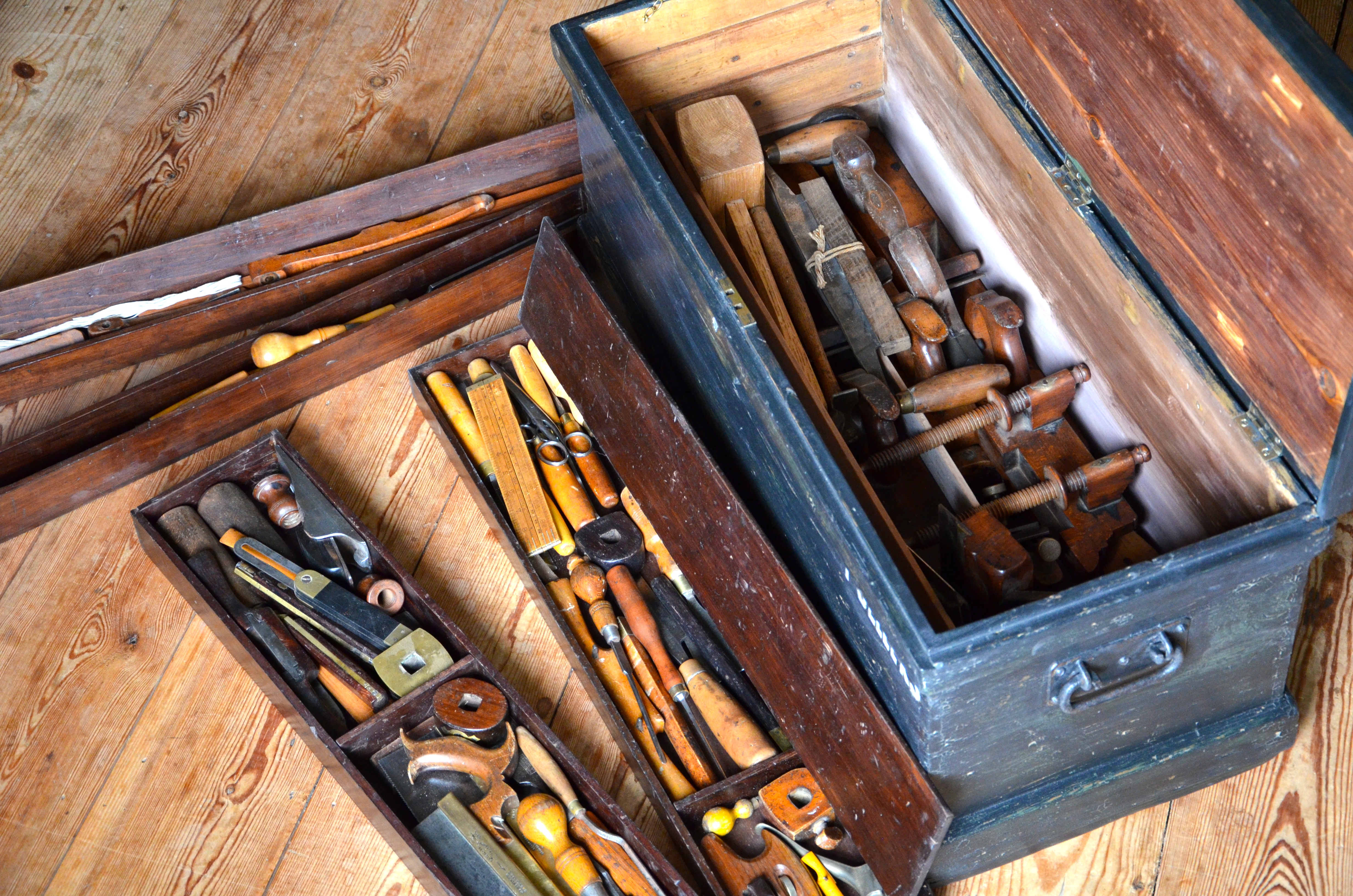I looked inside the wooden box where his tools were always placed in an interlocking pattern that allowed each tool to fit into or beside another but only one way. I knew to look only for a short second, barely a glance, any longer and I'd get a cuff around the head and a harsh word accusing me of 'casing the joint ready to steal something' when his back was turned. Of course, I wouldn't, but such was the culture of the day. Ten benches with a four-foot spacing between and set in a rectangle would be the rarity today as it was then. Wood and the working of it from beam to chairs and tables by hand with an odd trip to a machine in between are all but gone in most shops these days. Here, I am talking about toolboxes and chests laden with ebony and rosewood infil planes, wooden squares, sliding bevels and much more. Wooden plough planes, filletsters were fading out as tools of use, Jack planes in beech and then some vintage tools we would most likely have no knowledge of any more lined the insides of the boxes and perched on the benches nearby. I was in those transitional years when these chests and toolboxes would go with the man when he left for final retirement and they would never be replaced; no one would bring such things to their workplace to work from them or use them again in any ensuing generations. I saw it then and it did indeed come to pass.