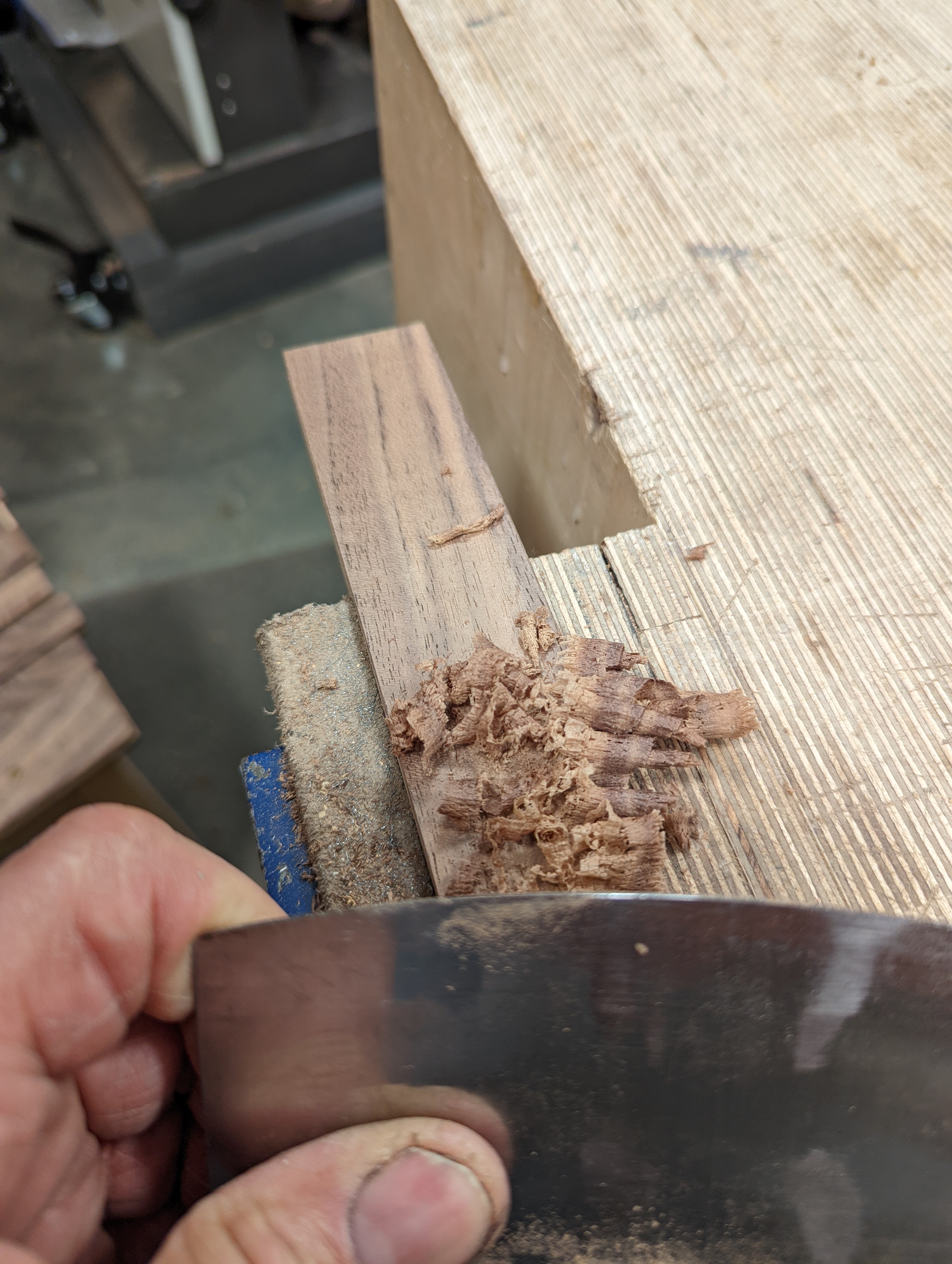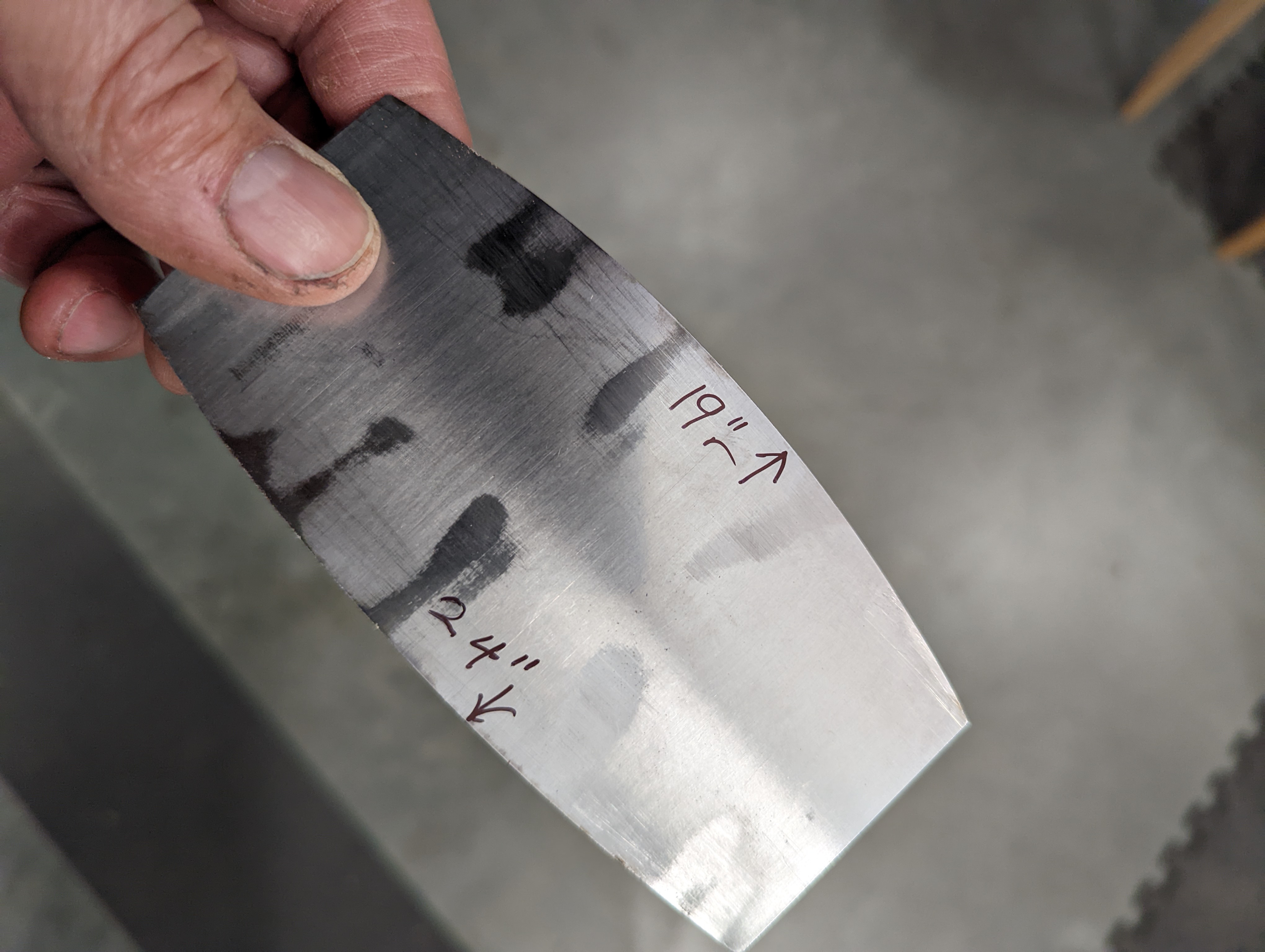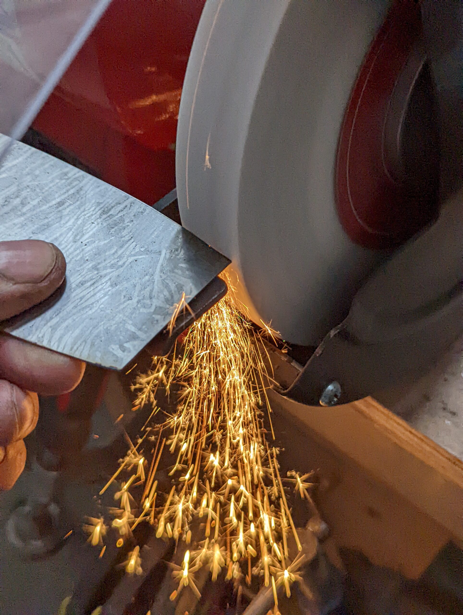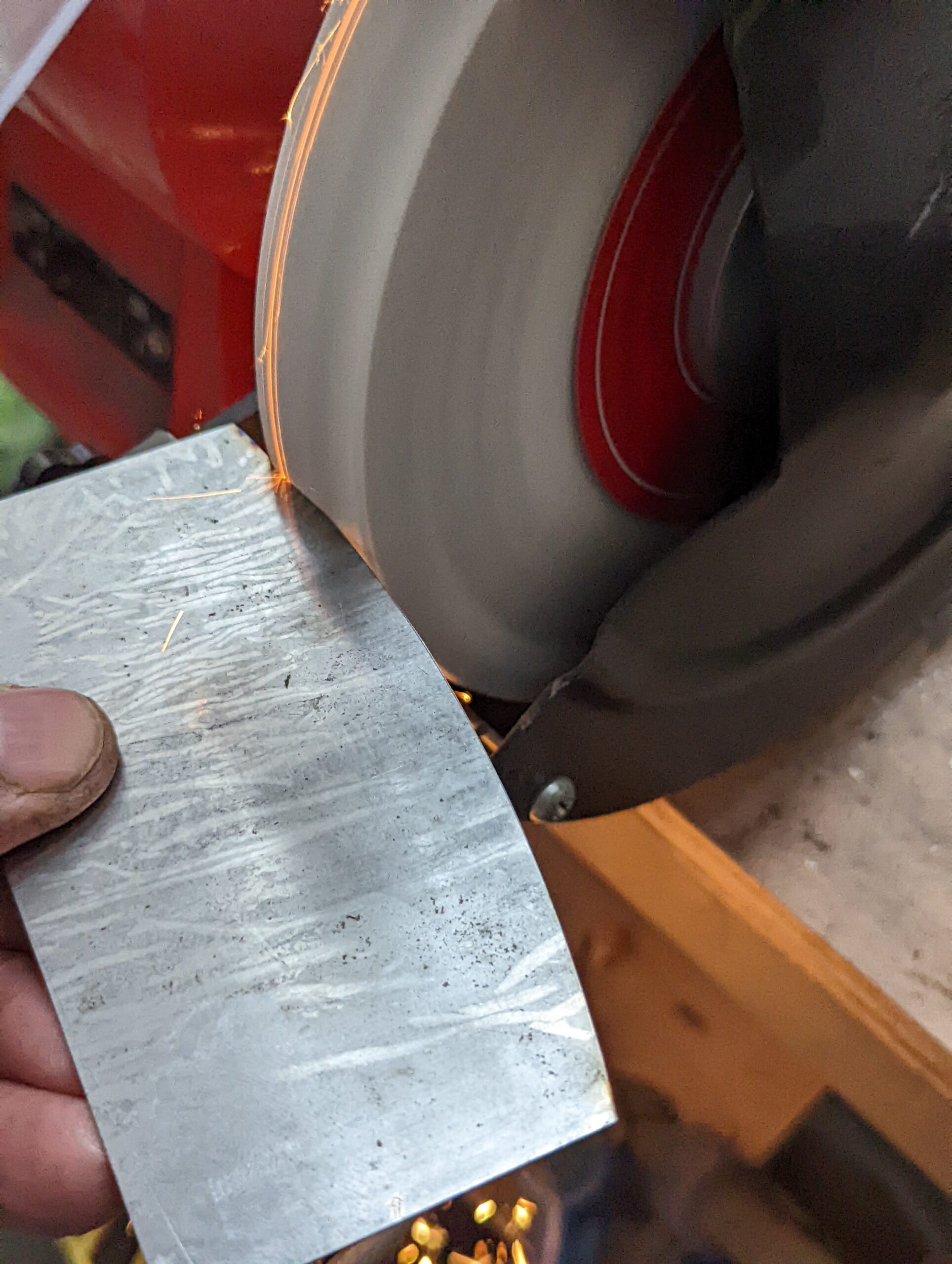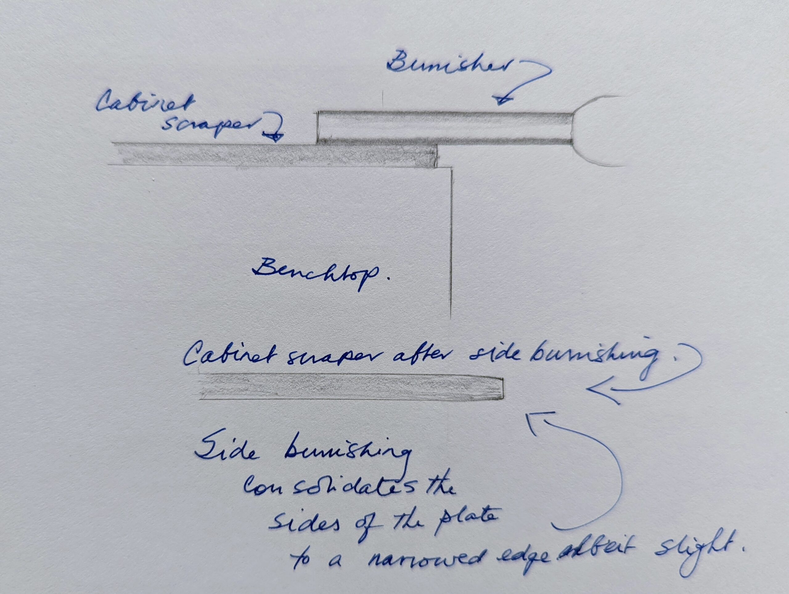 Consolidate both sides of the scraper plate on the benchtop 30 or so times. This sends the steel down into itself and also gives a super-polished edge ready for turning.