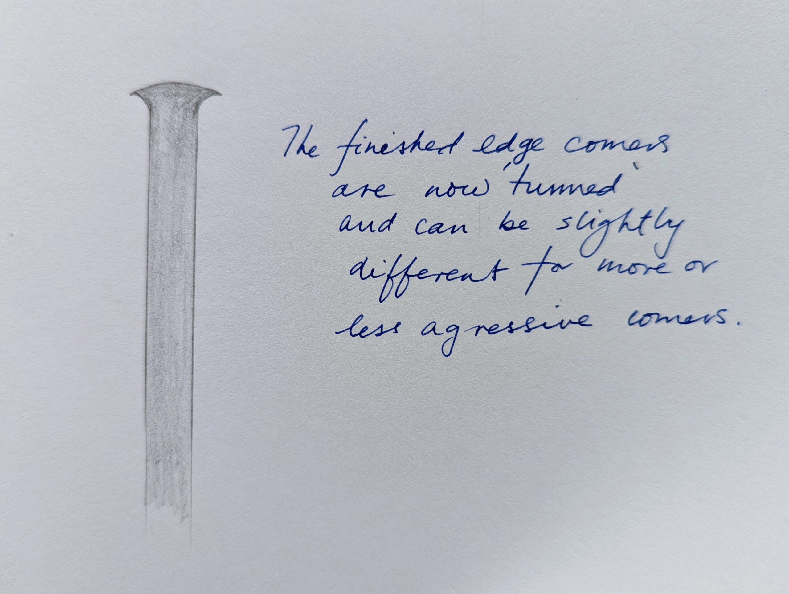 The radii are different for different applications and you can sharpen all for corner edges according to preference. use them interchangeably and you have a cutting strategy at your fingertips for just about any grain you might encounter. Radiussing your scraper edge is amazingly beneficial. To localise an area within a greater surface means you can flex for depth and feather out to the outer reaches so as not to indent the surface noticeably.