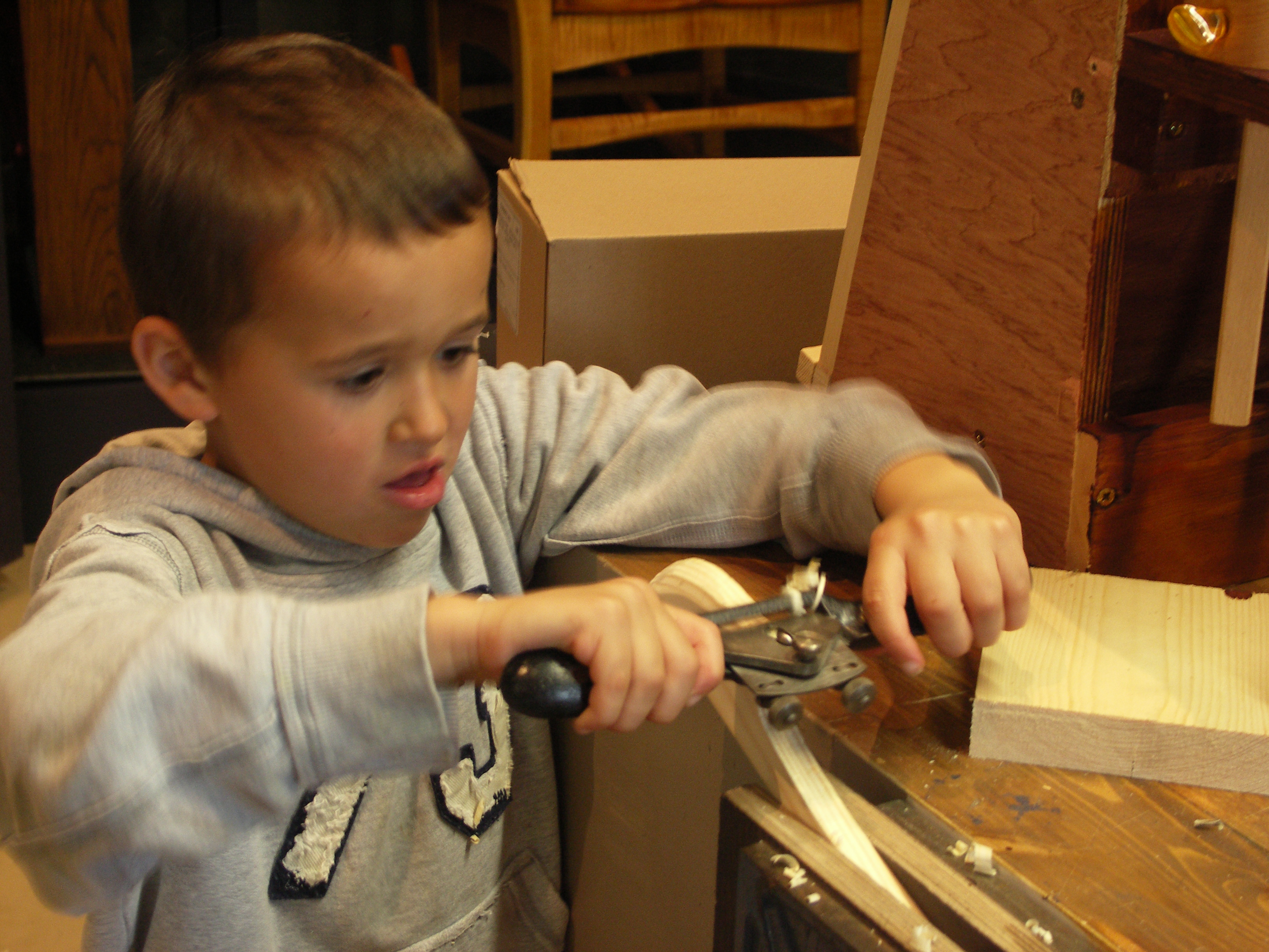 If you have a young child or children, the best time to get them interested in woodworking is around the age of five or six. That was what the poem was saying. Shaping a spoon with a gouge, the handle of a spatula with a spokeshave, the cutting board roundovers with a rasp and so on, uses the same techniques used for the neck of a guitar, a cello or a violin. Of course, there is nothing wrong with simply making the spatula and the cutting board alone. This takes skill. Contrast this with leaving your kids squarely outside the workshop door until they are sixteen or older. I'll guarantee the window of opportunity will be long gone by that time.