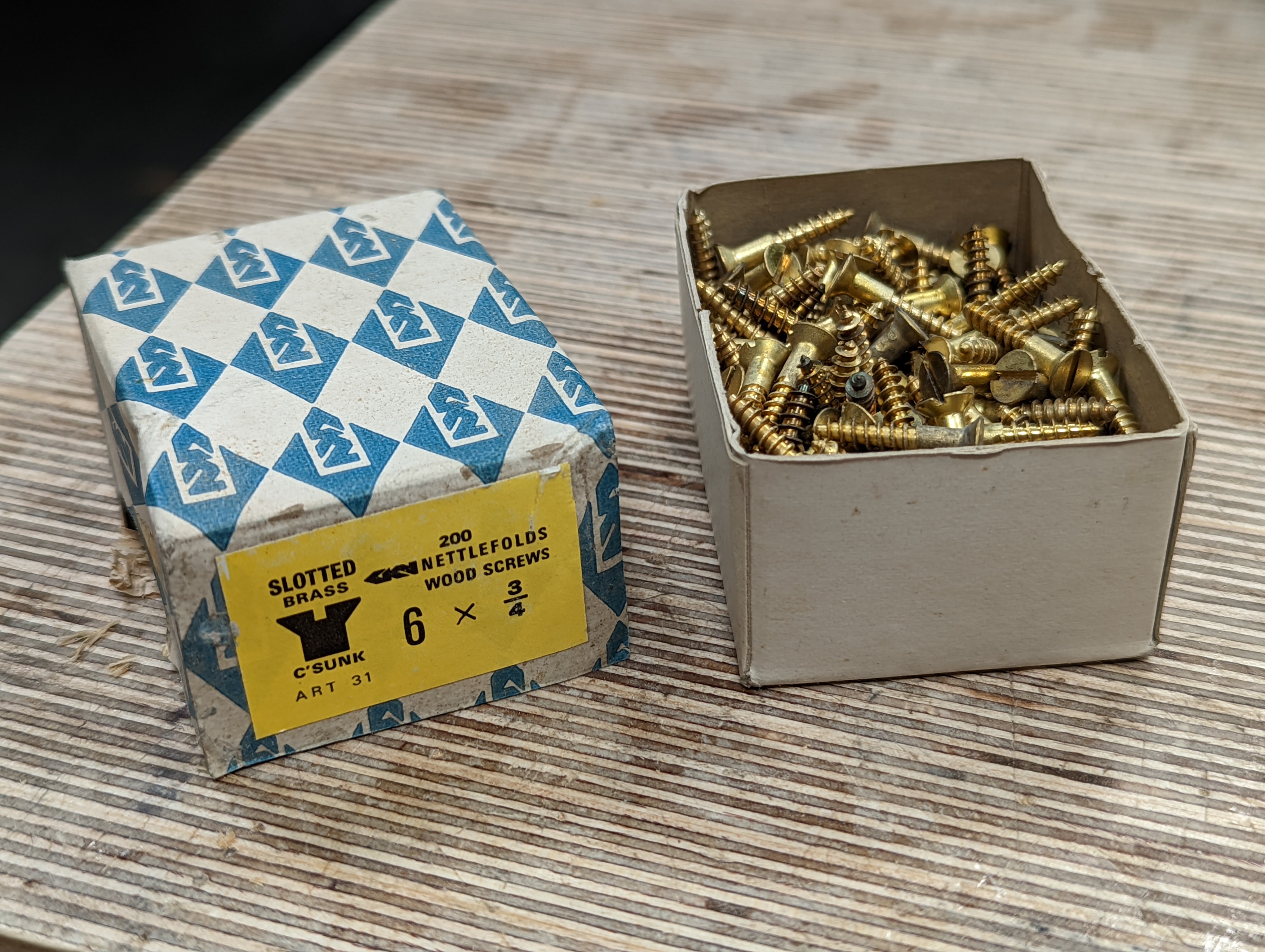 eBay is a bit like Marmite, you either love it or hate it, or so it seems. It seems such a small thing to buy a simple sliding bolt for a cabinet or the exact hinges you to hang your doors on. Then there are those now quite unique countersunk head brass screws that cost too much in a pack of five when you need 24 of them. The savvy seller of a few "new-old-stock vintage brass screws" splits the box of a 'gross' (144 or 12 times a dozen) into zippy bags of five to sell for £5 plus another £1 for shipping as an eBay seller. But I found a seller selling a bag of 50 for £5 and £2 shipping.