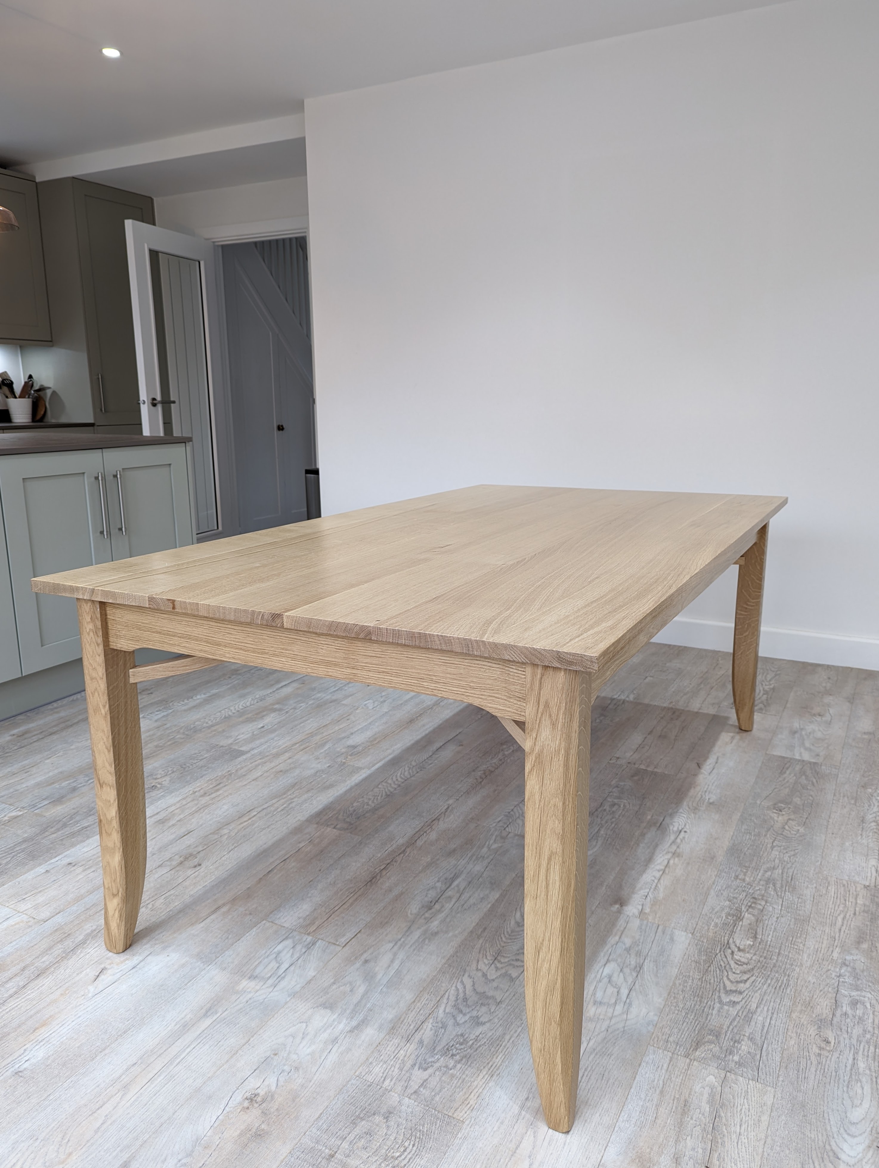 In November I began prototyping a new design for my dining table and delivered the full oak version to the house in mid-January. Yes, that means we left the living room to start on a new series for the dining room. I am sure that we will revisit the living room for a couple more pieces but this was an exciting new stage for all of us working on the videoing and so on. When the builders handed over the dining room and kitchen it was a blank canvass for me. I took out my pencils and paints. When the builders completed the dining room kitchen they handed me the blank canvass I needed and I started sketching in my ideas for the next pieces of 'artwork'.
