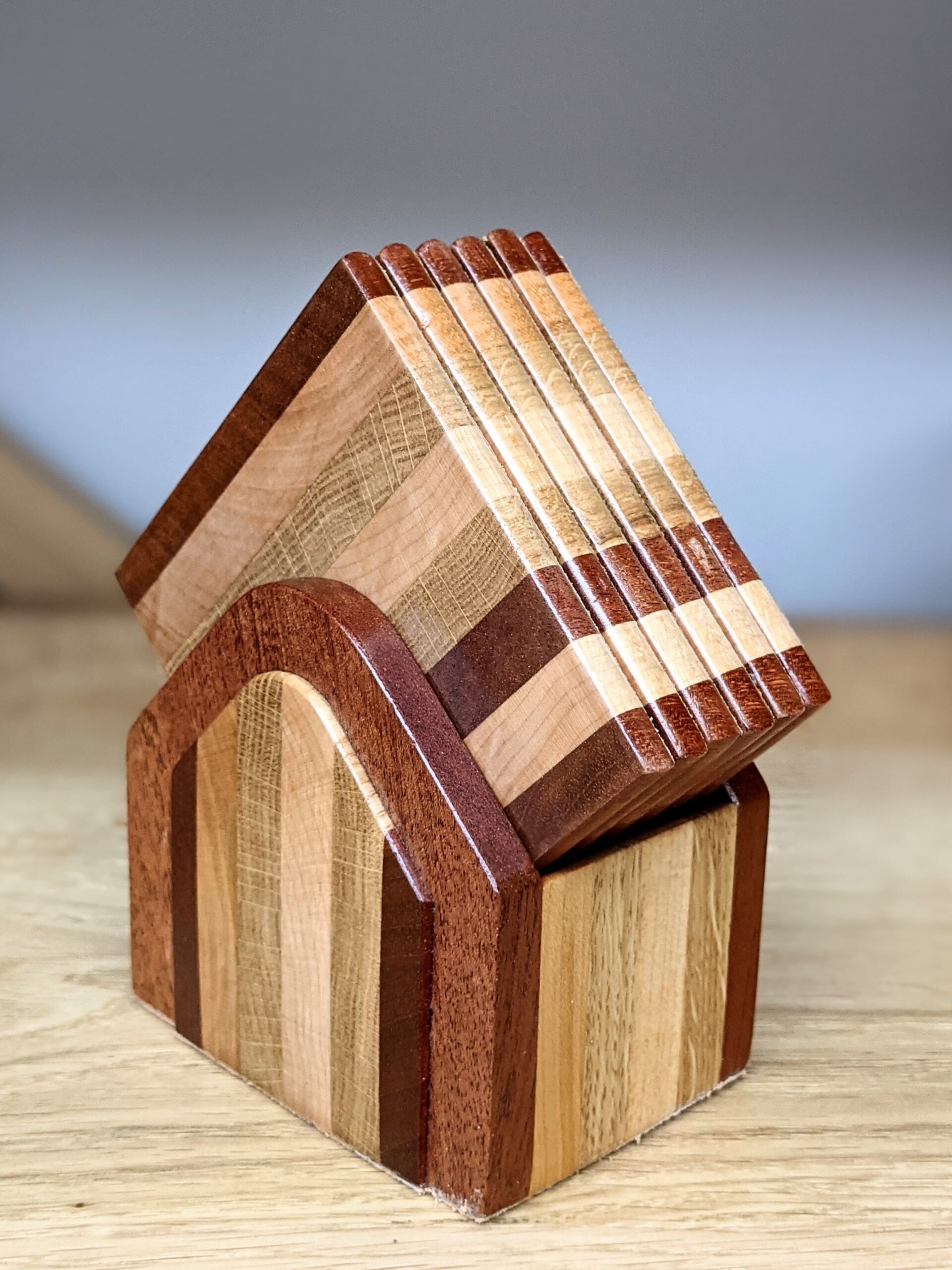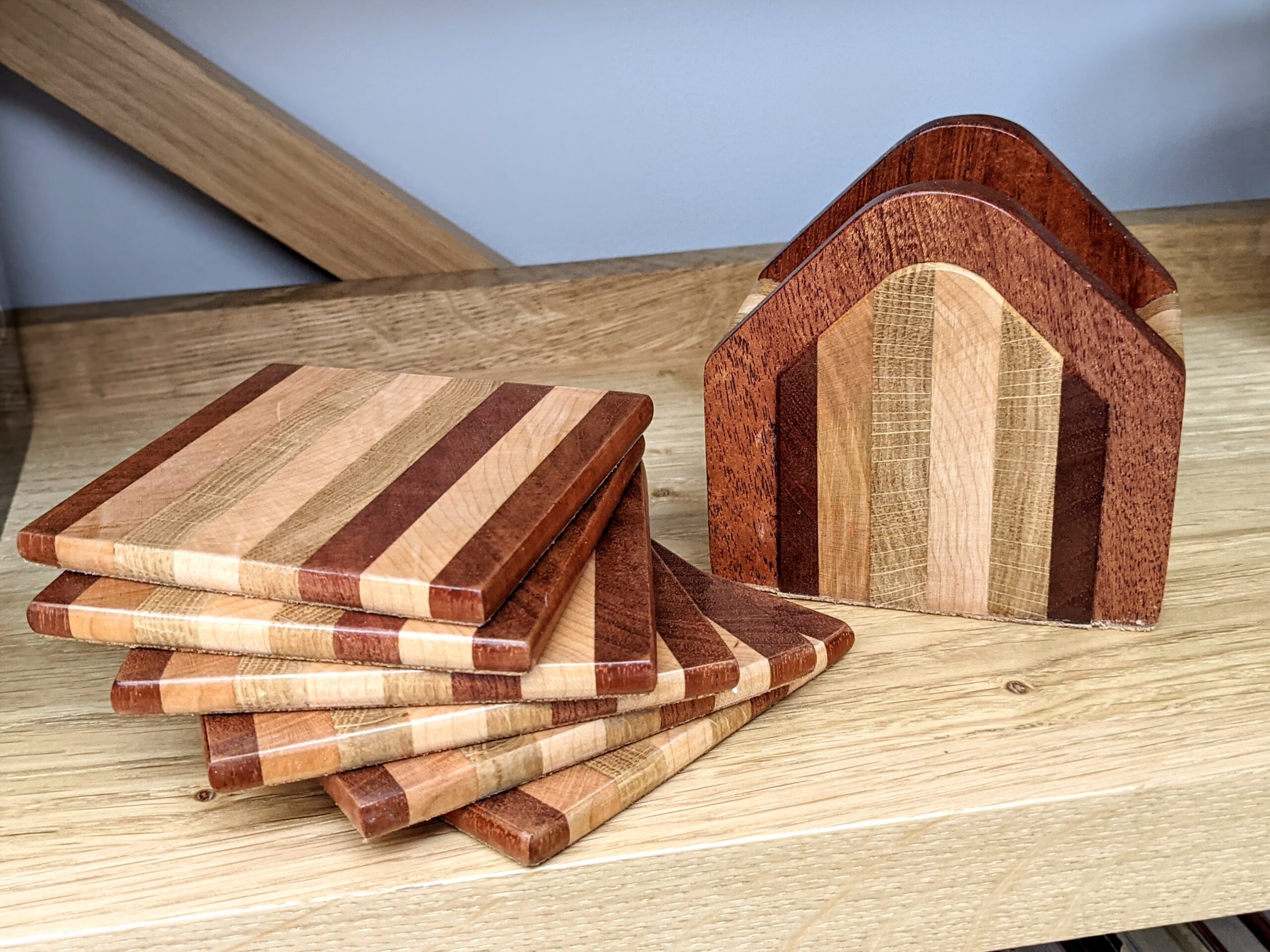 Coasters are essential for me as a furniture maker. I like to take responsibility for what I have made and want something to protect my pieces so here they are, one set of simple yet attractive coasters. Small things can take a surprising amount of time to do but those go quickly and are well worth stocking up on for that surprise gift you need to give.
