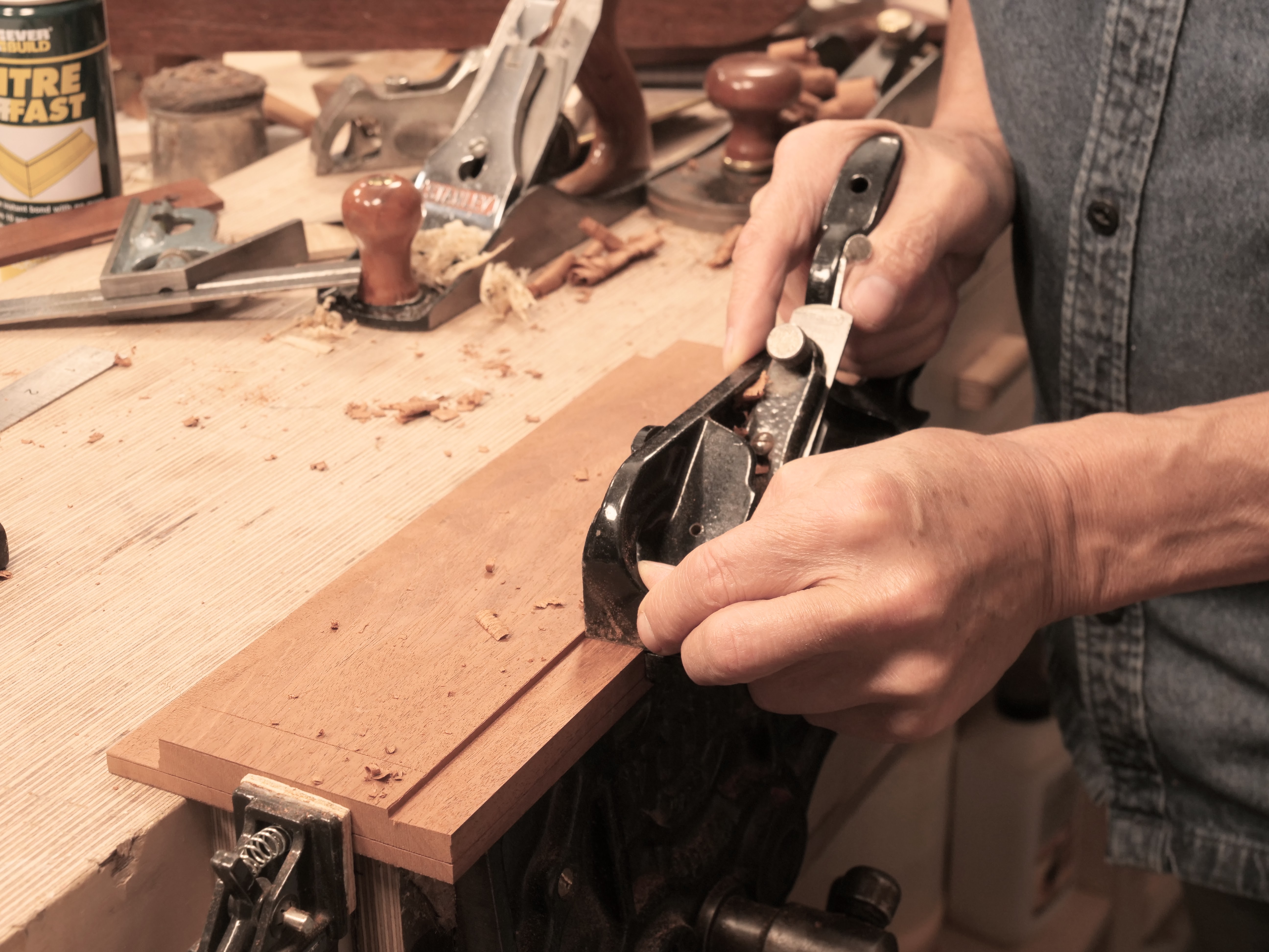 Below are the only tools I used for making the furniture pieces for Sellers' Home. I am putting this list in one place with some minor explanations for everyone to consider how my work continues to reach and influence woodworkers around the world. The important thing for me has been to show how an ordinary man using ordinary tools makes his furniture and that all ordinary people can learn the same ordinary skills once they are told and shown how it's done. You will not see me using a fancy and expensive plane or saw that cost me more than £25 and more likely the ones that cost me £3.50, 57 years ago. I have not nor ever would retrofit a plane with a thicker cutting iron as there is absolutely no reason to. The handsaws cost I am currently using cost me under £20 and as you work down the list of tools below you will see them in use throughout the videos we made to train you and a hundred thousand more just like you. Yes, I did apprentice, but time for my training was short, one explanation only was given with a clip around the ear when I got something wrong and even when I didn't. George, my mentor, was the only one who didn't, so I stayed close to his bench most of the time.