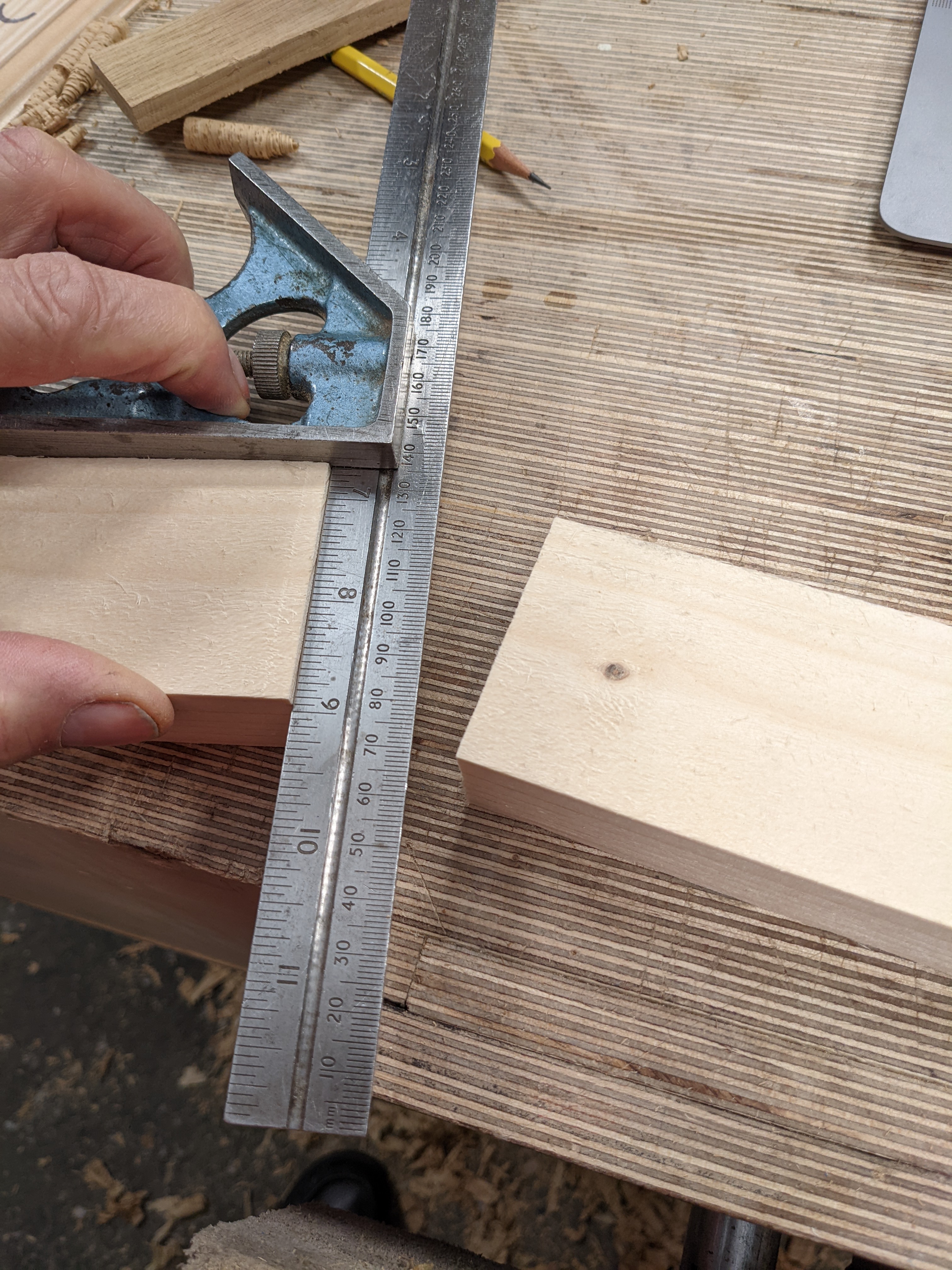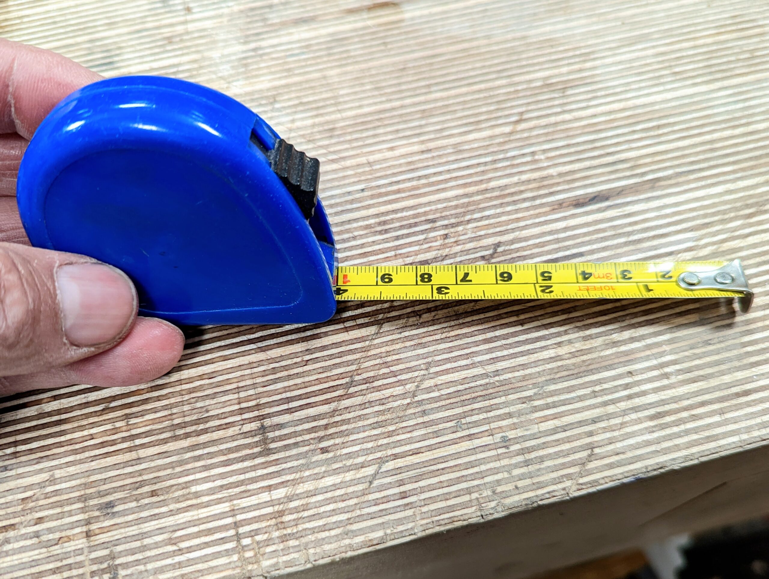 Many may contradict me but there isn't really too much to say about a tape measure. As it is very rare that any piece we make as furniture is longer than eight feet, a ten-foot tape is plenty long enough and can be had as lightweight items in your pocket. I have the least expensive plastic ones that are accurate and compact. I carry one in my pocket I bought for its size and then several (five) of the blue ones shown to identify as mine and I can leave them around the workshop and never have to go in search of one. I need one when I am out and about as my whole life revolves around measurements and angles and with a tape measure I can deal with both by developing a formula as I go. Oh, and make sure you have both metric and imperial in a single tape. If you are not used to converting in your head, especially here in the UK where both measurements are still being used, it can be a nuisance trying to work things out.