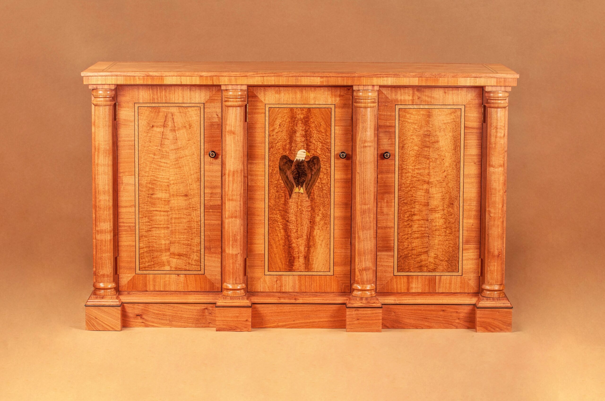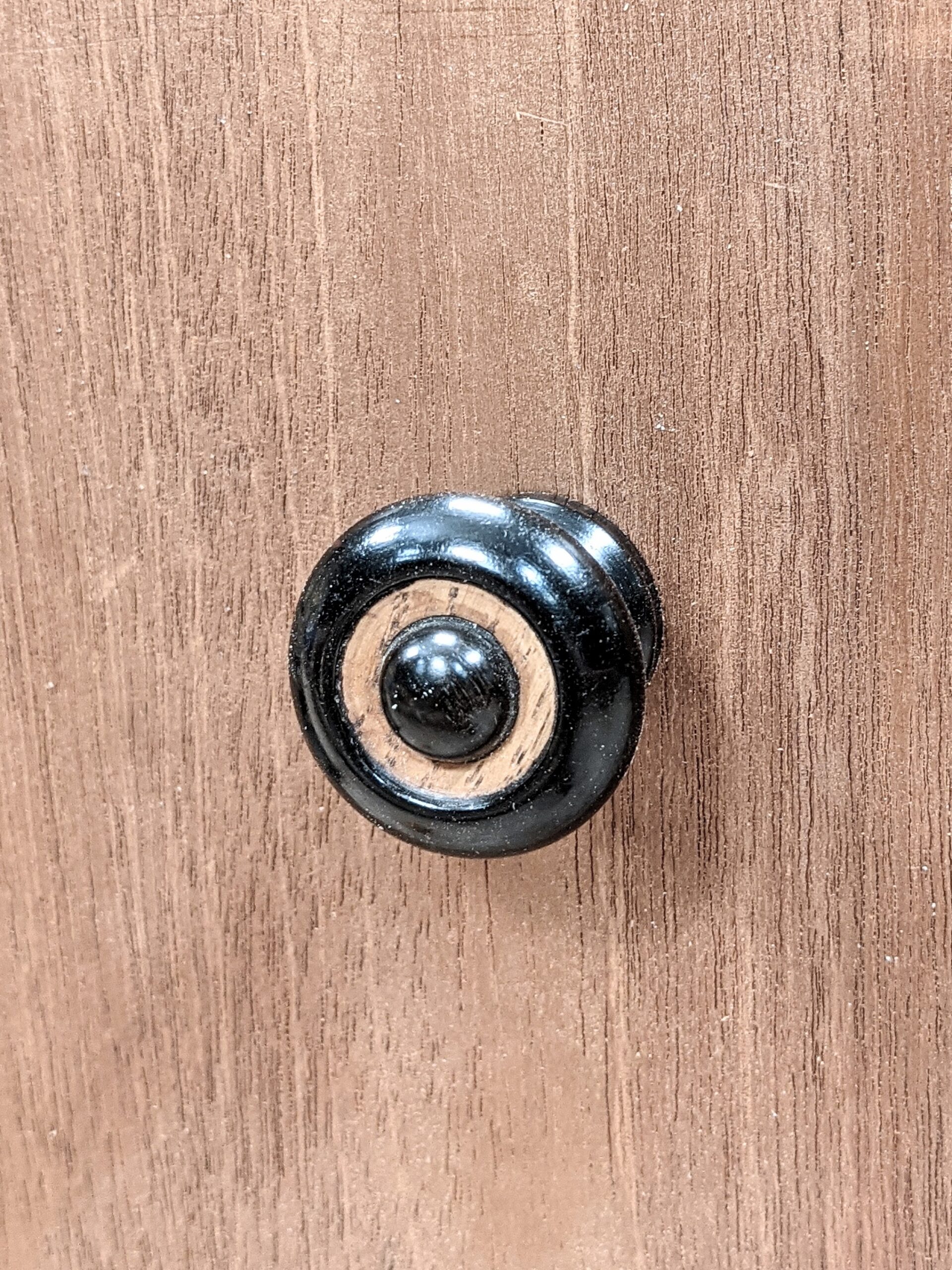 In most cabinet needs we tend to rely on turned knobs. They are cheap to buy, easy to make and easy to install. Door knobs and handles crop up every place we turn our heads. Bought in, they tend to look the same by virtue of most cabinet handles being turned on some machine to make them round, ergonomic and functional. They survive in our world for the three reasons given. Transforming plain round into a distinctive signature is the art of the designer-maker. When I designed the two credenzas for the White House I chose two woods of contrast, ebony, for its jet black contrast, and oak, to tie in with the oak fielding around the mesquite panels. Symbolically, the oak was taken from the fallen oak originally planted by President Benjamin Harrison on the North Lawn of the White House. I say contrastingly symbolic because President Benjamin Harrison is one of the least known presidents and was known as the "most forgotten president." Historians and political scientists generally ranked Harrison as a below-average president, so perhaps his oak tree planting was the most notable of things that he did. The Harrison oak is not a type of oak but one of two oaks planted by the President sometime between 1889 and 1893.