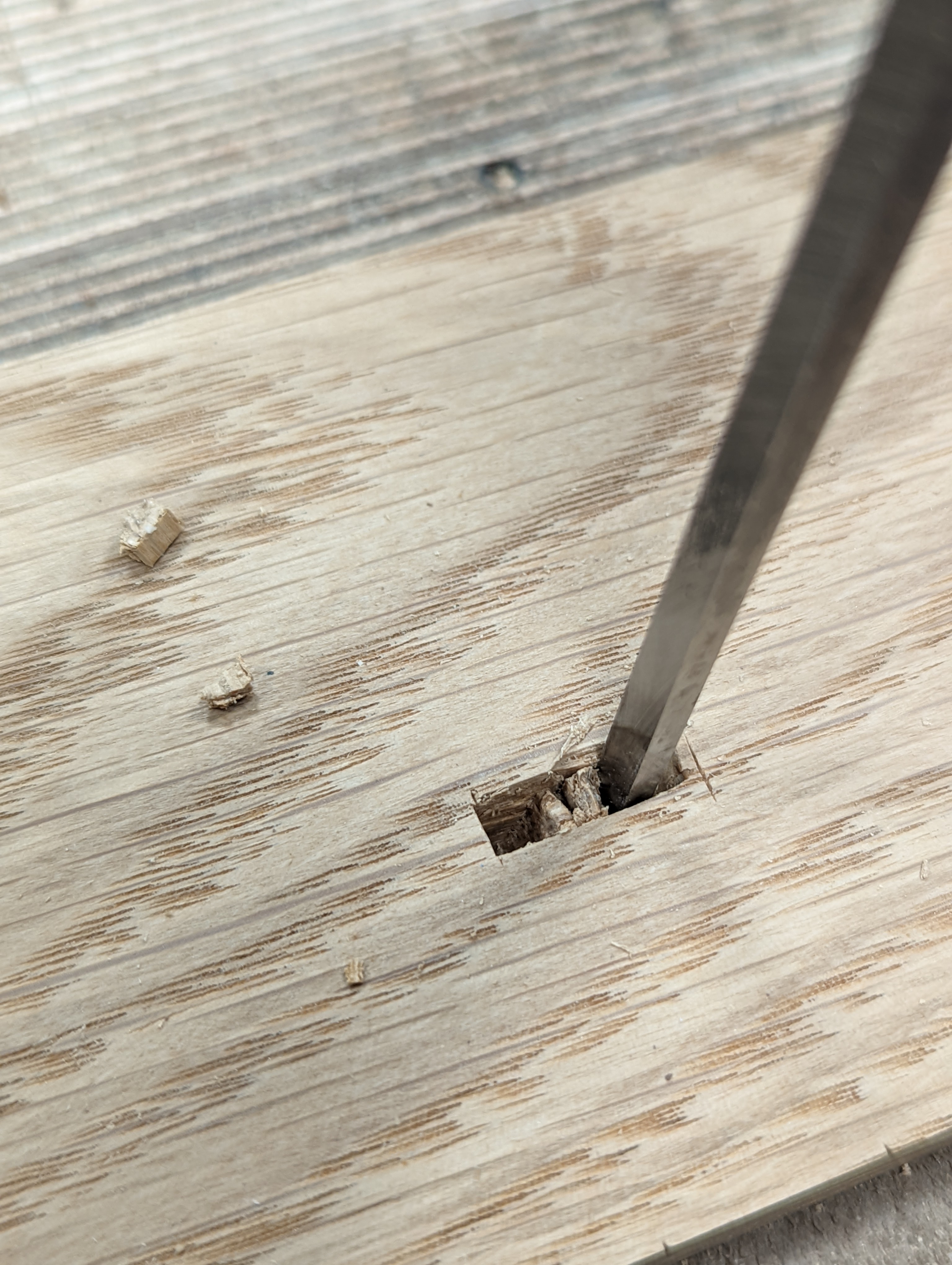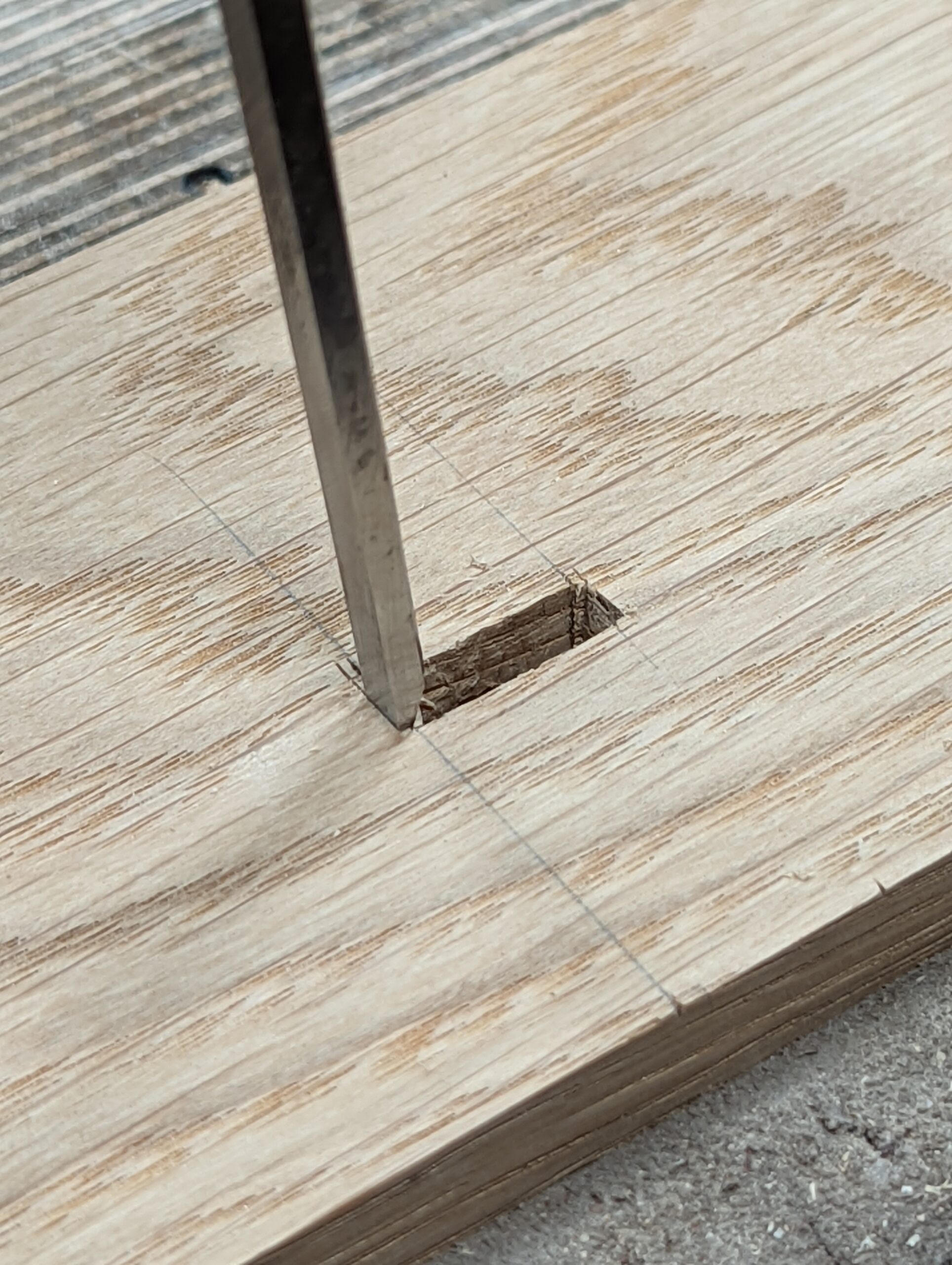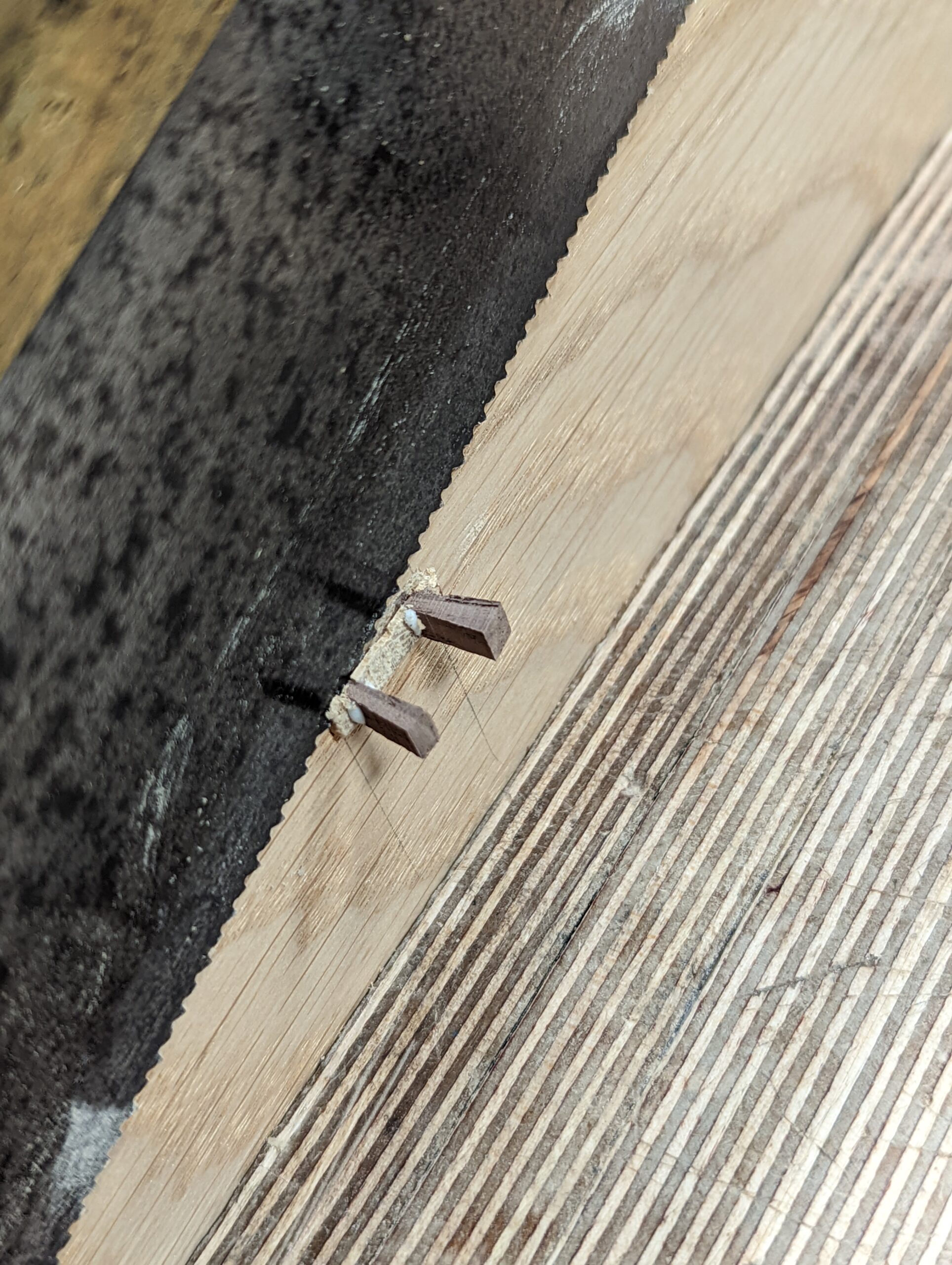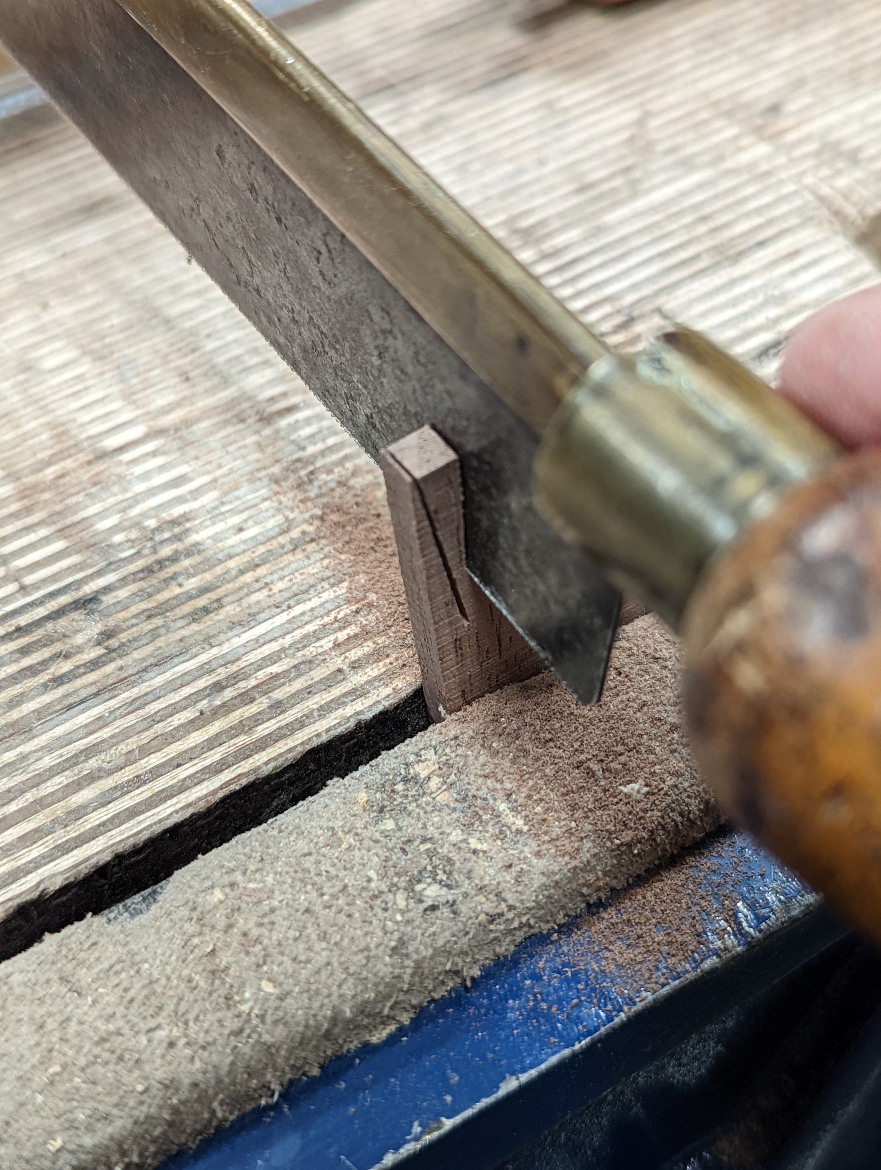 In the tenon I made two saw kerfs slightly angled to receive two wedges.