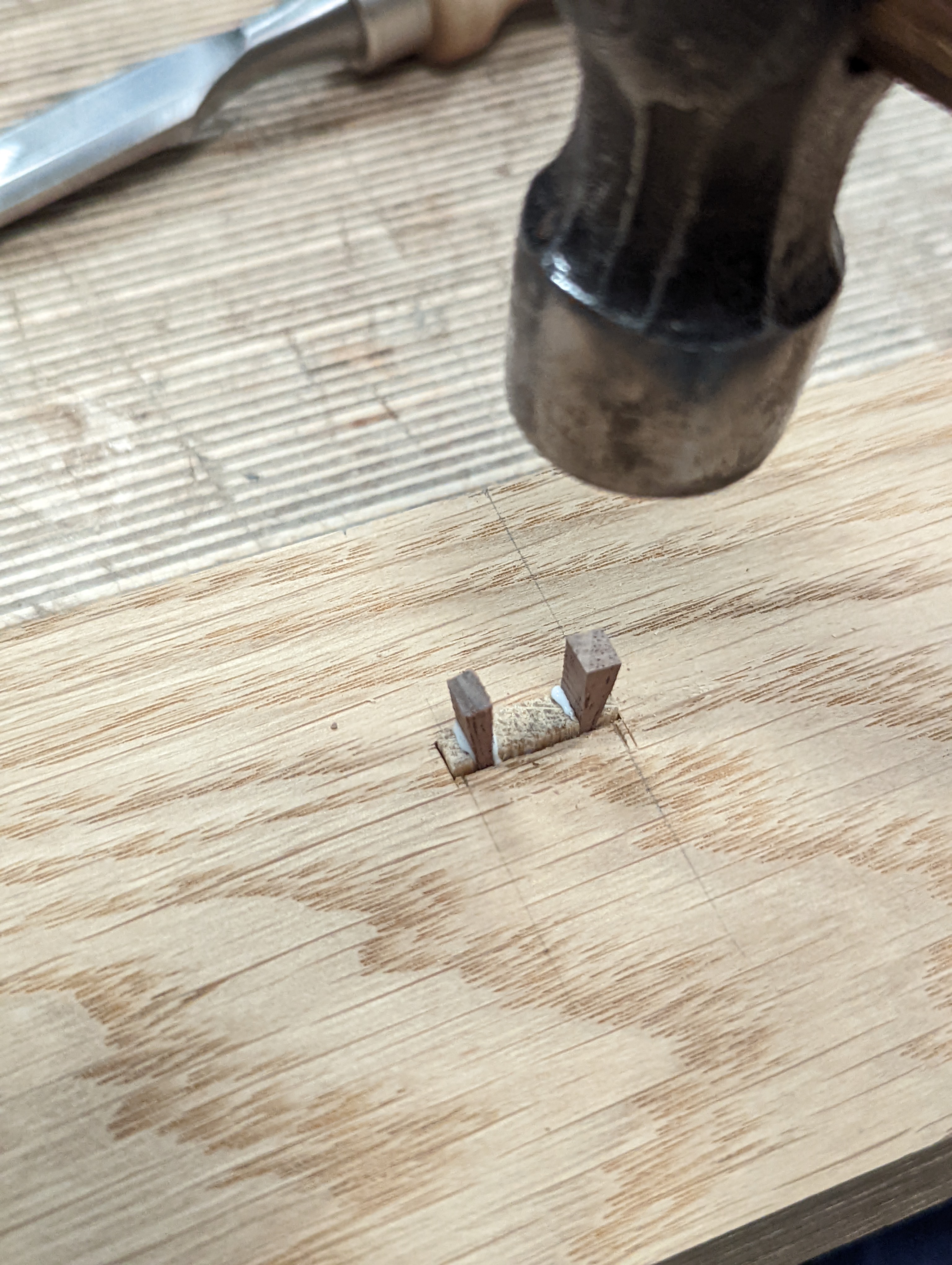 . . . drove in the glued wedges to expand the outer edges of the tenon to dovetail it in place.