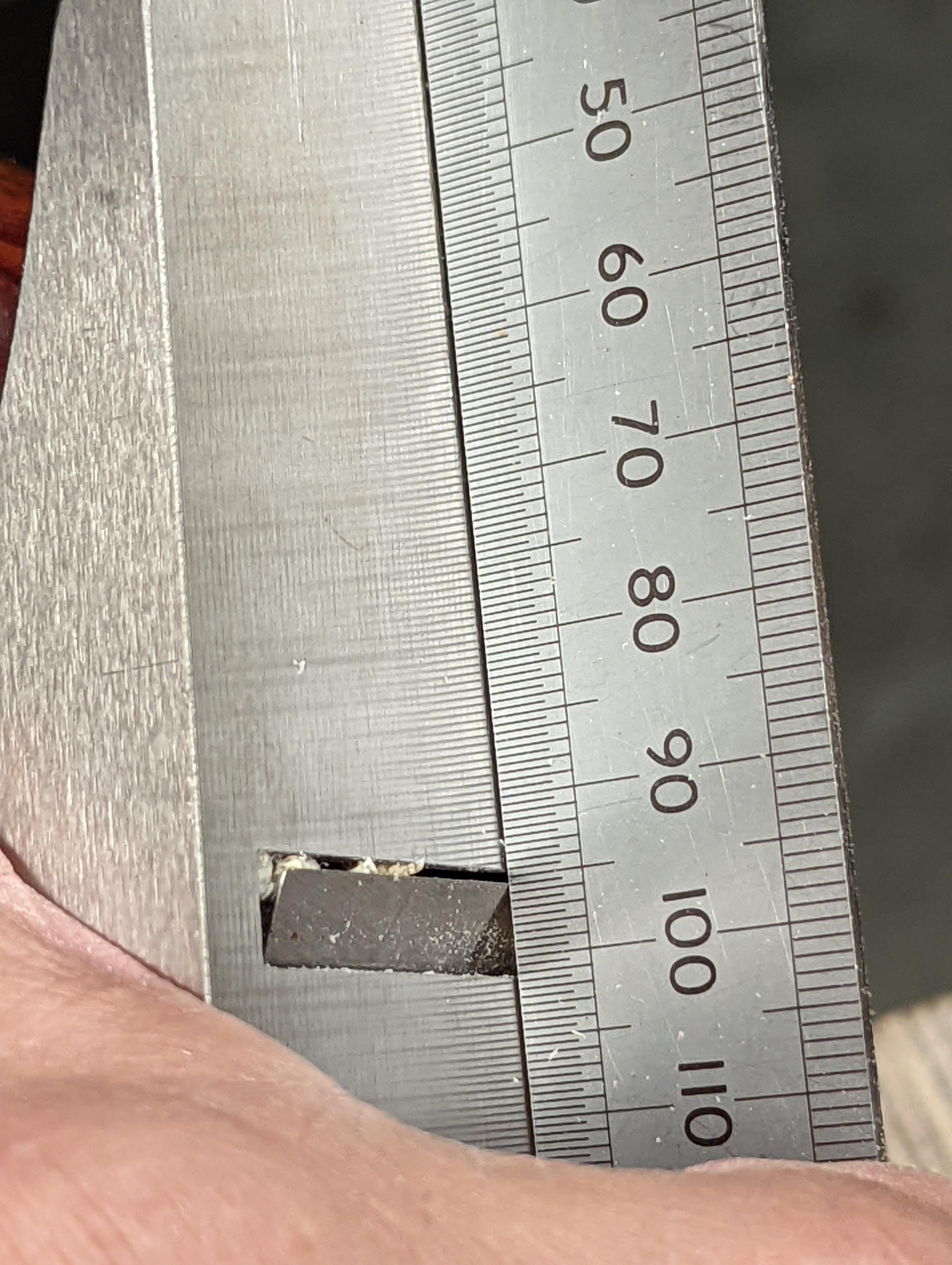 Taking the plane with its frog shunted forward to close down the throat from zero-thickness shaving both narrows down the throat opening but at the same time, in tandem and unintentionally, automatically changes the depth of cut to a massive .62mm -- so thick the shaving is not a shaving but a staggered fractured coil that then leaves a skudded surface like you have never seen before. This means the supposed benefit the BedRock plane pattern might possibly offer is sorely negated by having to majorly adjust the depth of cut to a safe level. Even in experienced hands, this is no minor inconvenience to anyone planing wood.