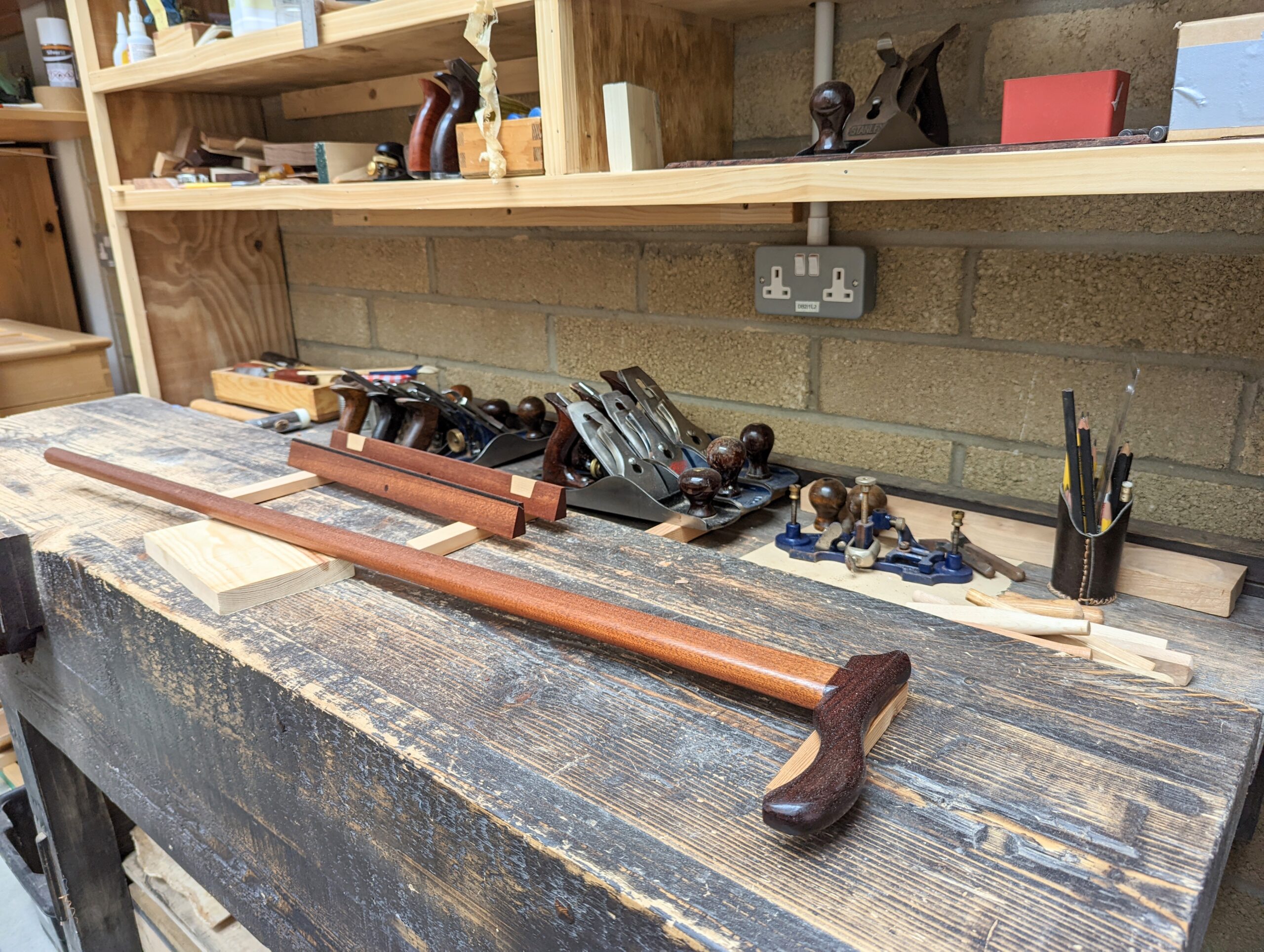 Glimpsing over the stair rail of the metal stairs as I pass the workbenches of three makers is the treat I love most. I never know what I will see. A chisel takes a series of mallet blows and a mortise chopped by a steady rhythm gapes openly as the chips clear beneath the sweep of a hand. It takes a year or two for rhythms and beats to register a synchrony made individually by a maker. From my workshop, I can tell who it is that's chopping by such rhythms and sounds. Even pare cutting gives off sounds by one maker that cannot be replicated by another. The opening and closing of a vise, the placing of the planes on the benchtop. I remember first knowing such things as a boy maker in the early days of my apprenticeship. Other apprentices seemed not to care so much for woodworking as was the case with some of the men. There was no rhythm you see. Of course, the rhythm of craftsmanship isn't formed in the first days, but you get a feel as you watch someone emerging in their working. I saw this once in an Israeli car mechanic once. His tools aligned, rarely thrown, perhaps gently tossed and never dropped. There was an exactness that somehow defied mere mechanics but elevated him above the mere nuts-and-bolts fitting of parts into the multidimensional harmony I speak of.