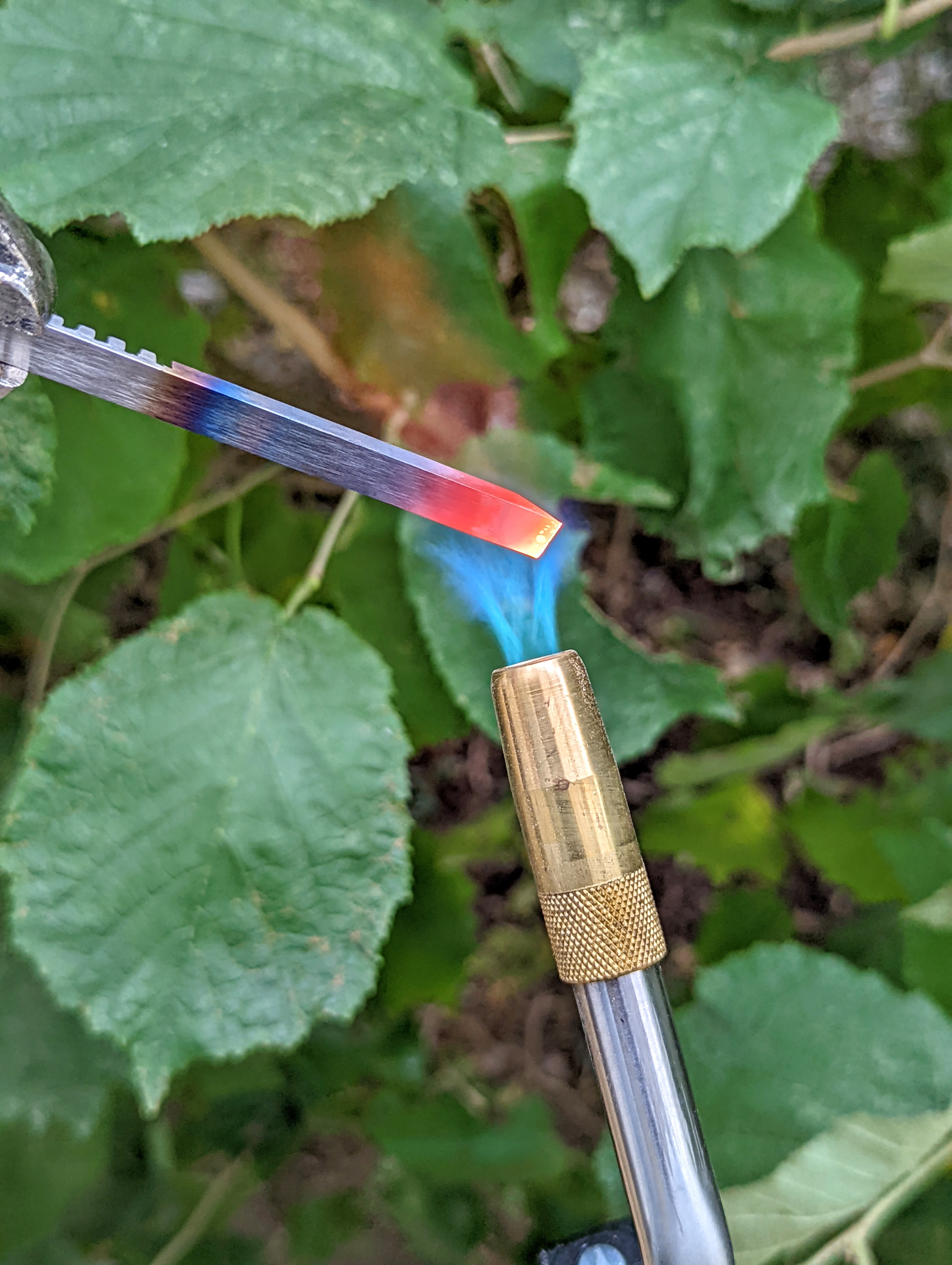 Steel that size heats up to a good red in less than a heartbeat and before I knew it I had a blade made in not much more that 15 minutes tops.