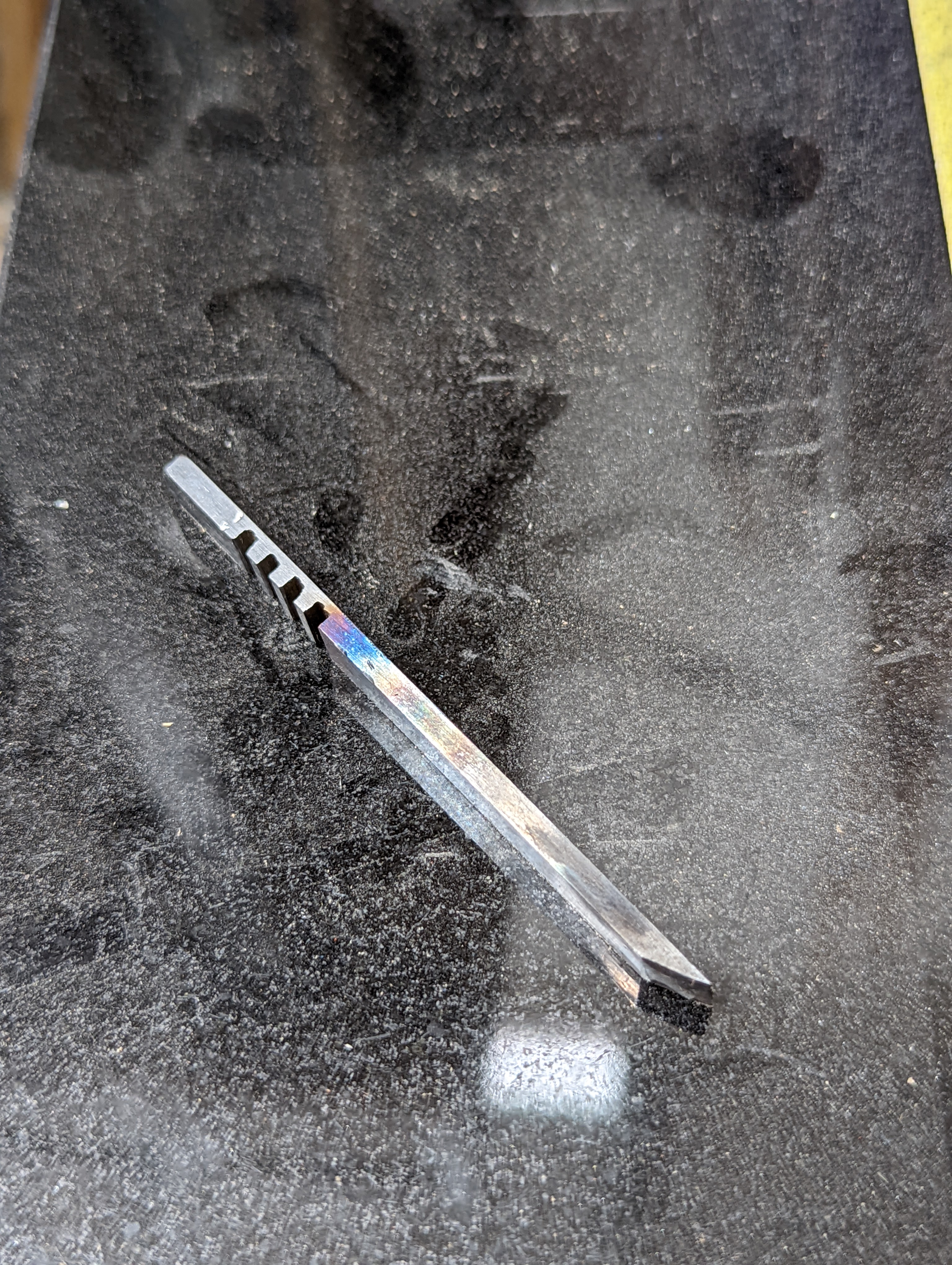 Anyway, the hacksaw trick worked fine and I had a blade made ready for hardening with the blow torch.