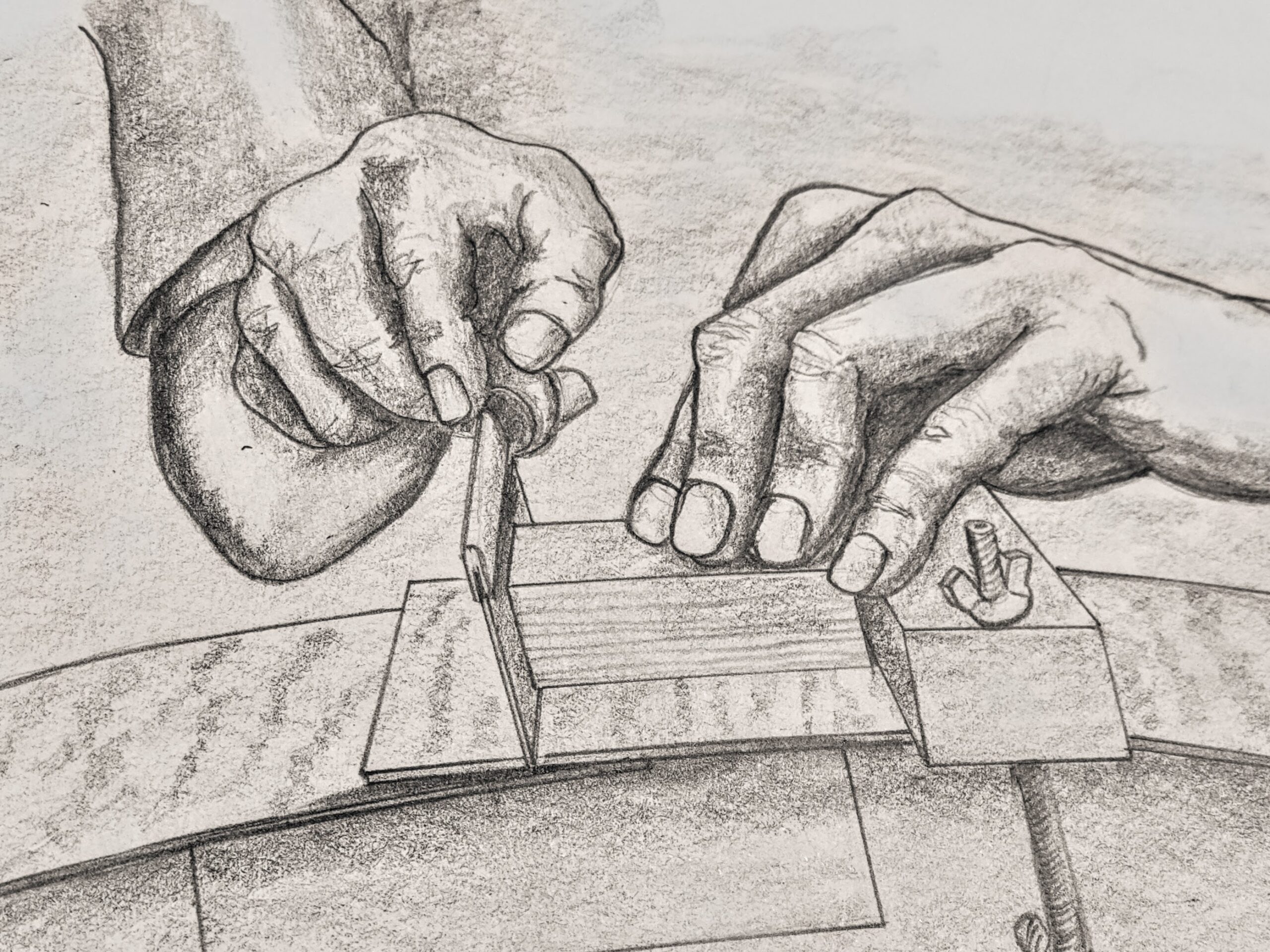 I relax into most of the cuts, let the weight of my arms and the tool work ahead of me. My task guides, adjusts after withdrawals from thrusting cuts readies reengagement cut on cut. Two hundred saw thrusts take but minutes with two hundred withdrawals matched equally in number and power. I realign and engage to push forward and cut more. I do this on and off throughout the days. Who can know the number of cuts in 58 years as a maker.