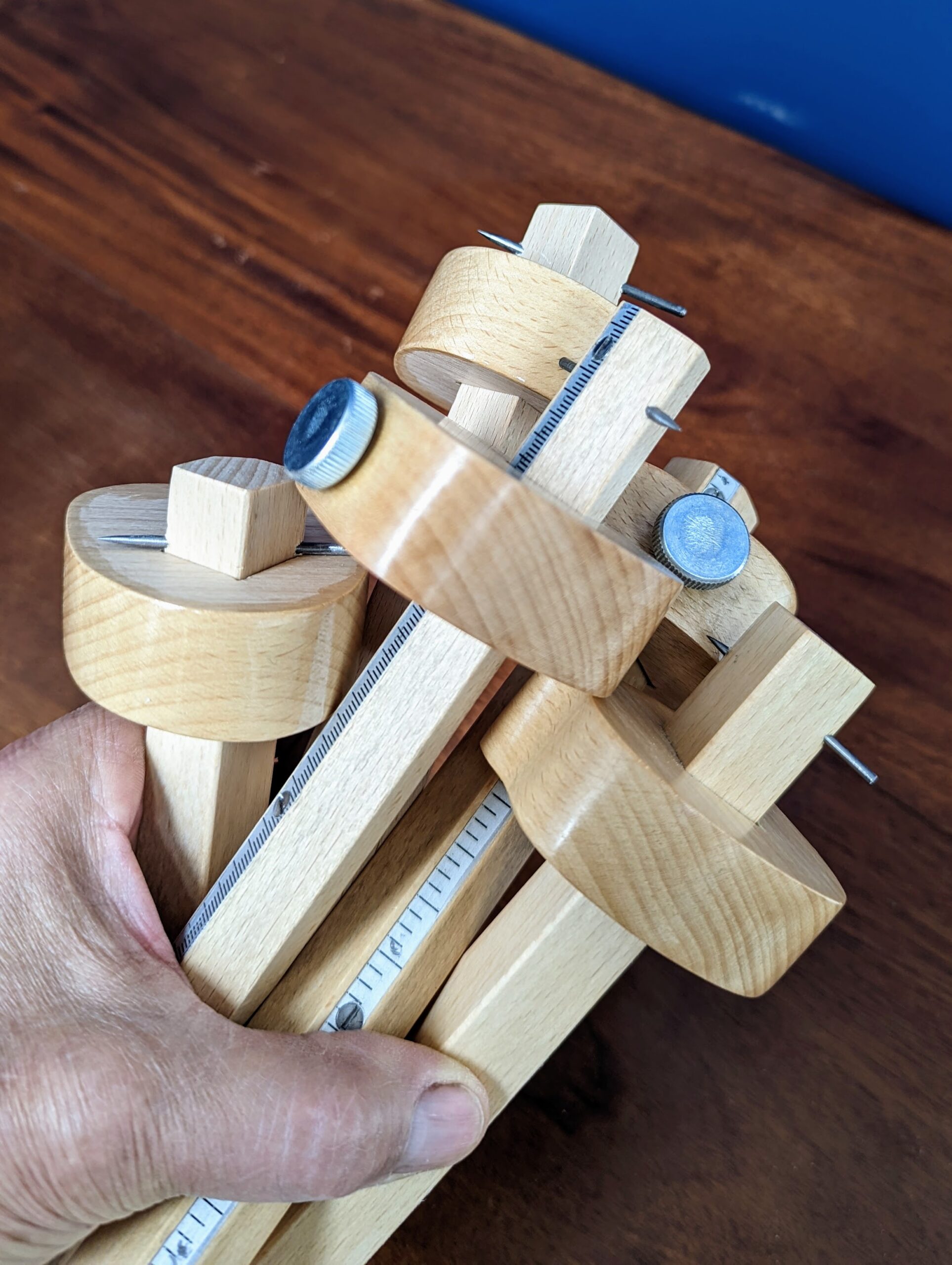 Through teaching and training students over the years, I saw how most if not all found handling the basic marking gauge awkward. Mostly. this was because they didn't know how much pressure to apply and what direction to apply the pressure to the tool. Without exception, the students simply exerted way too much force to press the gauge point/s hard down into the wood with the pin/s perpendicular to the wood. They wanted dead-obvious lines in the wood without realising the more they pressed, the deeper the pin/s went and the deeper the pin/s enter the wood fibres the wider the line/s became. Of course, they lost the actual point somewhere down deeper in the fibres of the wood. The desired finer trace line would be the very tip of the point and not the full width of the pin. Inevitably, the pin would also follow the grain of the wood no matter how much bull-dogging they applied to the tool and this all resulted in inaccurate marking. Getting the heavy muscled to lighten up was an issue as was getting the lighter built to be less aggressive. Inevitably, by the end of a week's course, they got it, but I wish that I had had my gauge from the get-go. Life would have been easier for everyone and that is the reason for this article