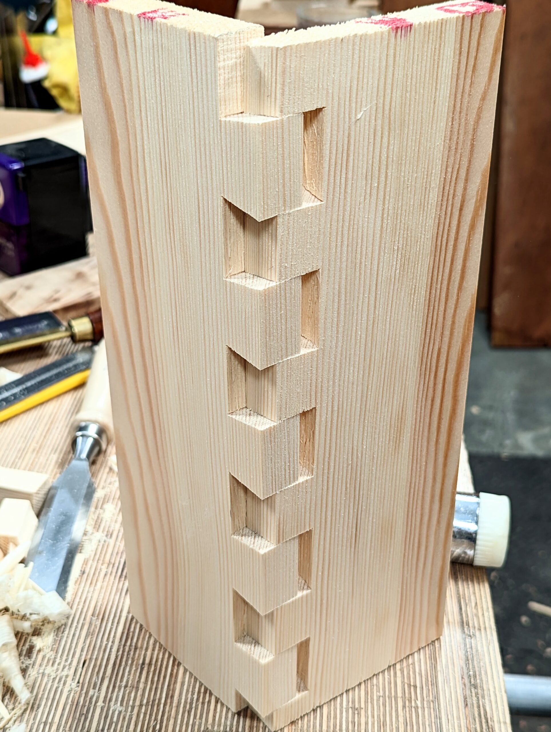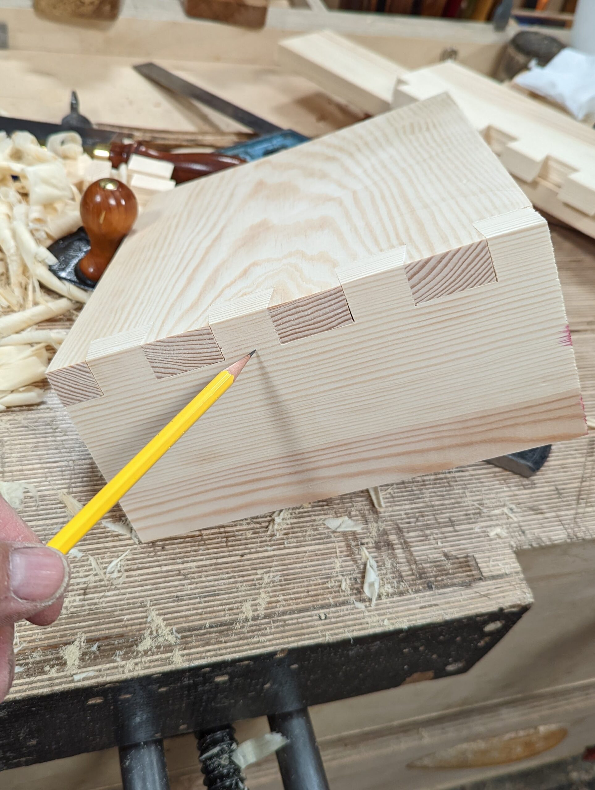 I love that sometimes new woodworkers will contradict the status quo -- they often do something that others say is not the right way and it is this that I find so refreshing. If we lose trying different options we lose the gift experiment brings together with the experience by which we learn and earn and own our future. A few years ago a man showed me a dovetailed box he had made with the dovetails and pins oriented in the non-traditional way. I say non-traditional intentionally rather than the wrong way for a reason. It was impressive to see this because the four corners of what looked like a tall vase re[resented his first, second, third and fourth attempt at dovetailing . . . something very worth keeping. As I complimented him on his accuracy and good fit, the man standing next to him, we were at a woodworking show in Mesquite, Texas, said, "Those dovetails ain't right!" Much different than saying something like, "It's unusual to orient the dovetails that way, we usually orient them differently, but your ability with the tools is exemplary." It struck me how the critic focussed on the wrongness with an unforgiving manner. In so doing he simply missed or dismissed the remarkable precision of the cuts and the fitting of what had they been in any way too tight would have split one or all of the tails or pins. Jealousy, envy, whatever can do this, make us blind to equally important elements, as can the legalism of another. Both can be demoralising and destructive. People even do that with me, quite regularly actually. "You sharpened that saw the wrong way." and then, "Look what you did laying that plane down on the sole and not on its side!" Perhaps they are right, mostly they're not, but I listen, respect, and move along. You will be surprised how often I cut the most perfect dovetail in front of an audience of 200, then cut two perfect 45º mitres and piece the two parts together with a sawn spline having first moulded the parts with a 200-year-old moulding plane, and then someone comes up to the bench and lays my plane on its side telling me it's wrong to put it down on the sole and how they got a clip round the ear doing such things. Another says, "Always cut the pins first." when that always seems such a backward thing for me to do and I don't care which prince of woodworking does it the backwards way.