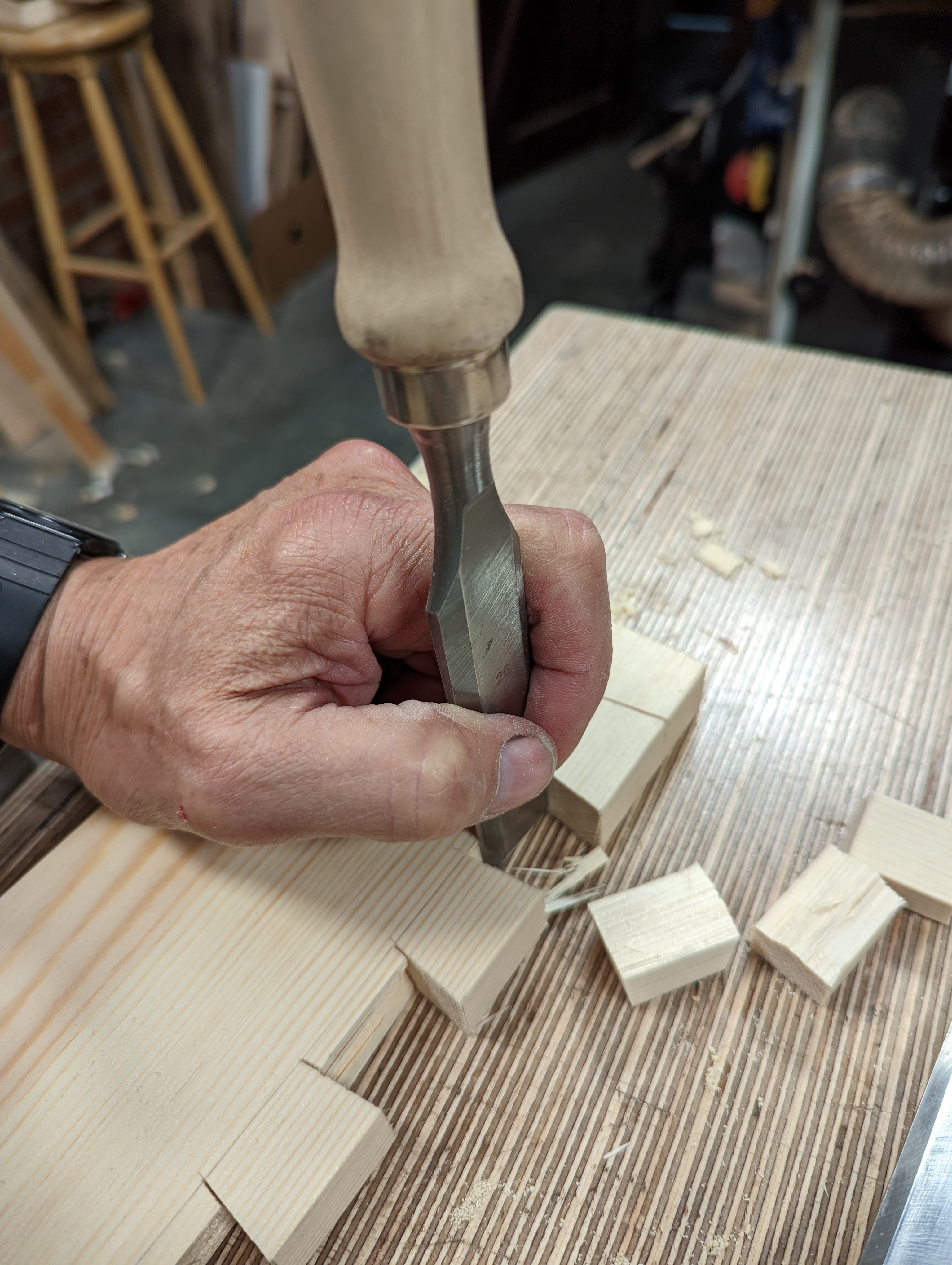 In crunching the alternative dovetailed examples, thinking about how it felt at the time, in the minute, I did feel a wall of resistance, a reluctance within me that I had to push through knowing that I had created something well intending to destroy it. I found, of course, that it went against the grain in that I am always making for longevity and permanence and never so short a life to intentionally destroy something I had just made. I have only done this handful of times in my 57 years of woodworking. The last time was with the fox-wedged mortise and tenon, you might recall, where after it was done I cut through the whole to see the effect of the spread within the mortise. The fox-wedge is not a common joint but an extremely useful one with specific applications. It at first seems destructive and time-wasting, but the visual impact is far more informative and long-lasting than an explanation alone and so that compensated to make the effort well worthwhile.
