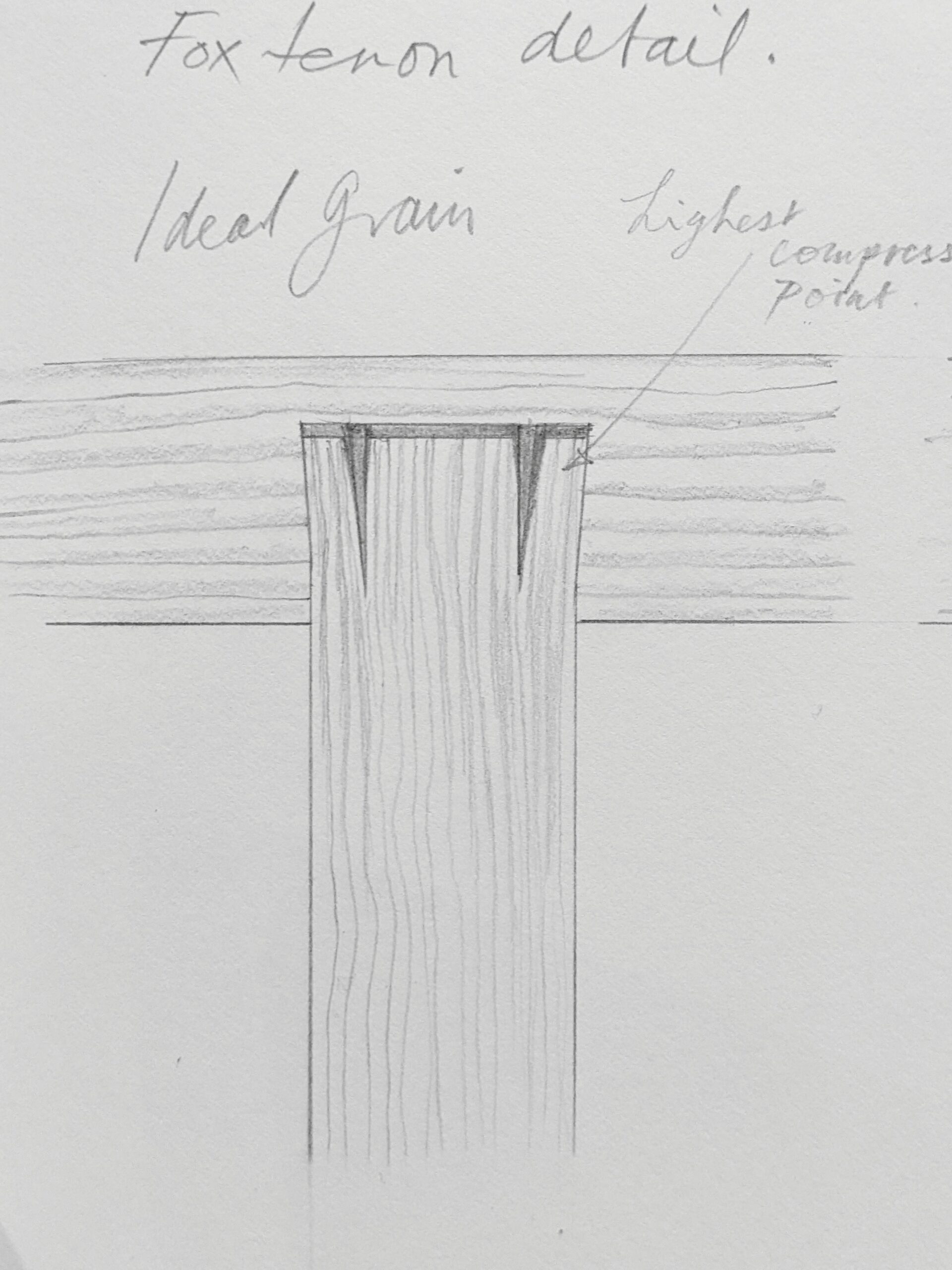 Because of the growth direction of the tree, the grain in the wood we get is generally unidirectional along the main stem until the branches splay and spread to become the leaf-bearing canopy. The commercially harvested and processed wood sold to us comes from the stem only and not usually the branches. This results in straight-grained wood with greater strength and resistance to pressure in one direction over the other. Wood only splits along or with the grain and not across it; that's unless subjected to some very extreme force which is usually breakage rather than splitting. When we cut the tree stem into boards and beams the wood has greater resistance to bending and cracking along its length. In continuous grain, the wood retains this property, but when we cut across the grain as in the short cuts for the splays of the dovetails or in between the pins, the resistance to pressure and the risk of splitting is radically reduced and so an unwritten law exists to those of us who accept and work within the natural limitations and properties of our materials. It does not mean we cannot experiment, try something different, just that we should be prepared to change direction in view of our findings.
