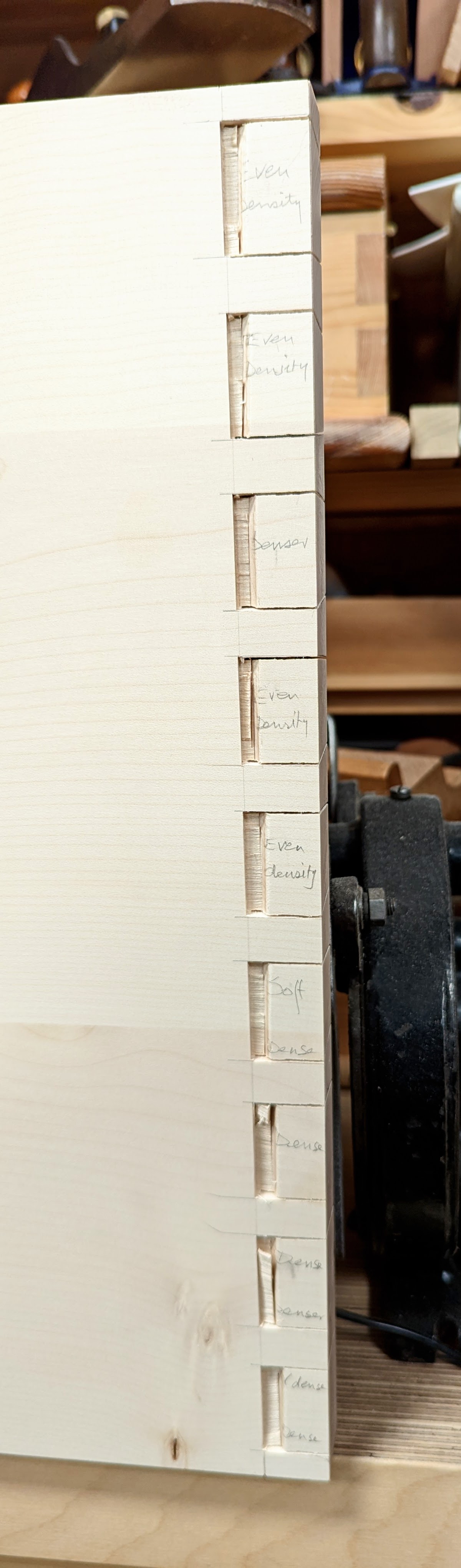 How we learn about woods and their characteristic properties is in the working of the fibres. Even so, even within the species and the same tree there will be minor and major differences that defy writing about. Reading about these properties from a book and timber supplier is like trying to know grain from a photograph of its surface fibres rather than the internal fibre of its structure. Describing a wood type as having even texture or open porous basically tells you that all of that species has equal density throughout the wood that comes from the whole tree. This is wholly misleading. Crotch-grain and the wood surrounding knots and so on is wood in tension and compression caused by the weight of the branches which in turn consolidates the region beneath the branch while the wood above is being stretched. In a recent video, I spoke of this as I chopped out the wood each side of the dovetails and pins. Across the 16" width I encountered ten different densities if I encountered one. The most consistent thing I noticed was how evenly the knife moved through the wood to establish a clean-cut knifewall. But when it came to vertical chap cuts and angled paring cuts the whole thing changed. I could not in any way predict that the wood would do this or that.