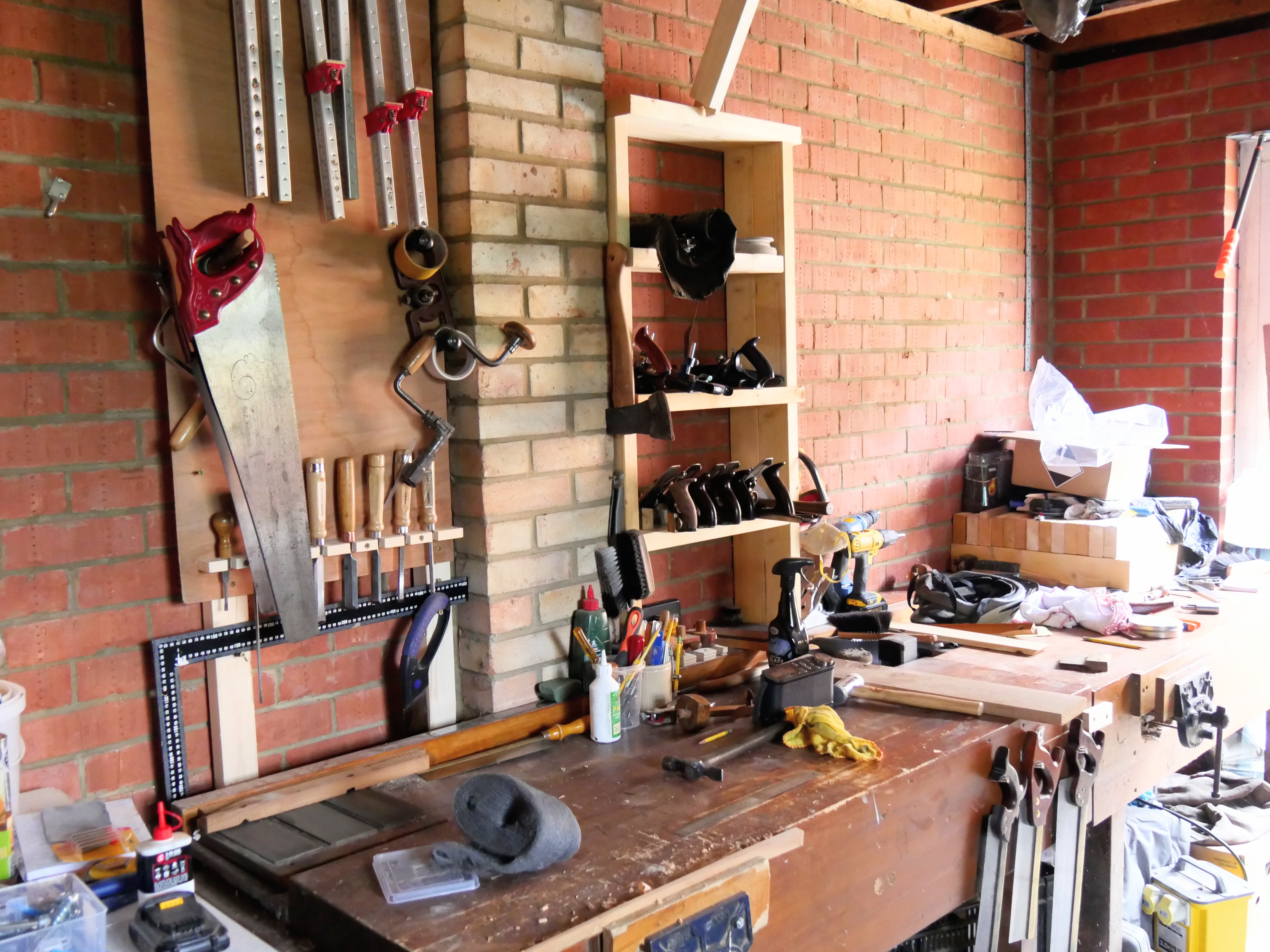 With the garage reworked so that there is no hint of damp rising from the concrete floor or coming through the walls, I am now replicating in reverse what I had before. For complete success, comfort and to avoid confusion it must pretty much replicate the workspace at the studio. Tools identically placed, identical workbench, shelving etc. It will be different in that the half that is normally occupied by cameras and the film team is another unique work area where I can write and study and even relax and listen to music. The difference in footprint is different but only minimally in size. The depth I gain one way I lost the other, but the added depth the other way allows room for a small desk table and a compact recliner. Please, no reference to 'man caves. That serves only to patheticise men and quality adult malehood and will likely take you into the realm of big-boy toys too. Thankfully, that usually refers to machines, so I am 'outa here!'
