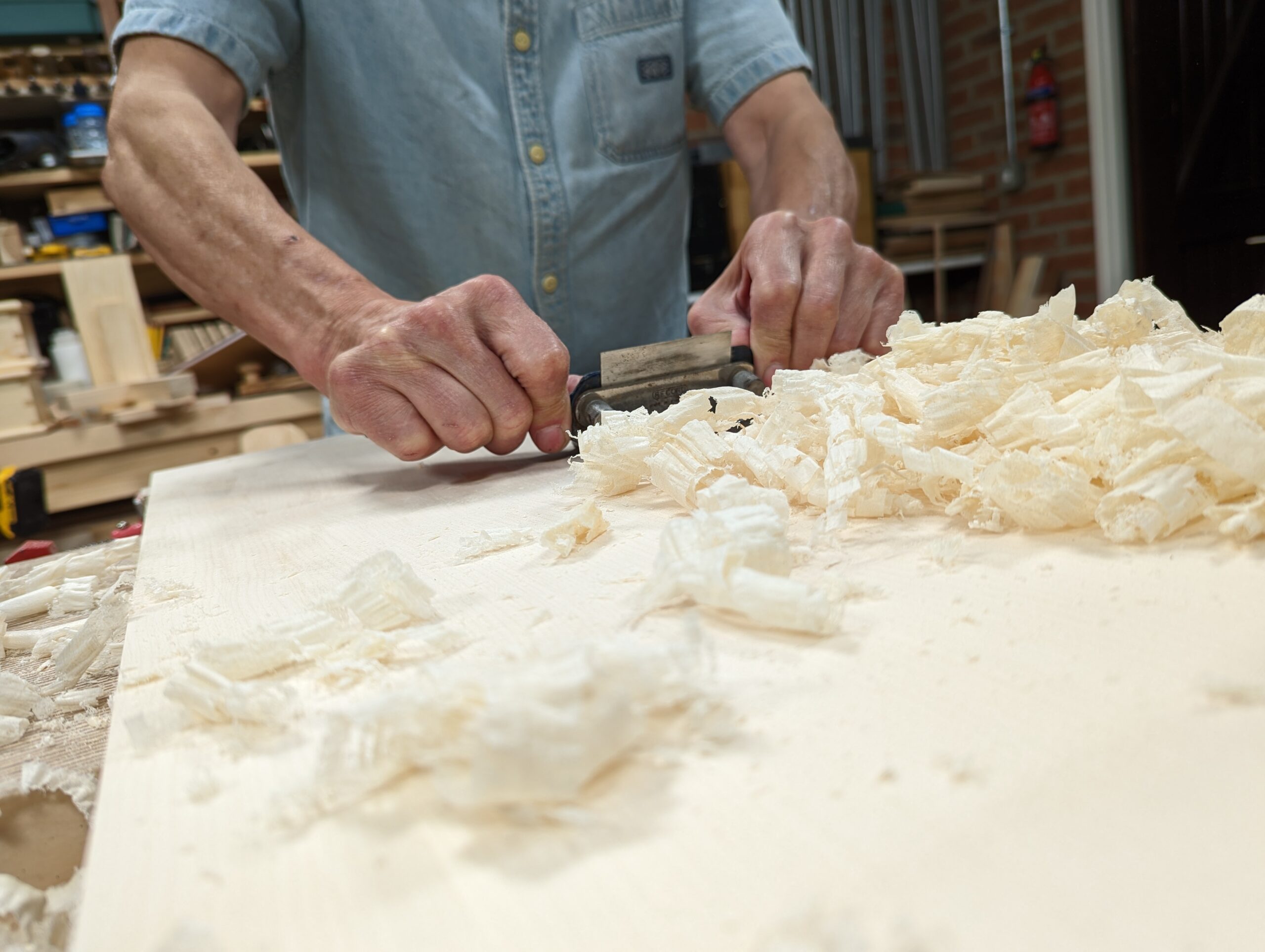 Taking twist, cup and bow out of rough-sawn stock and making it flat is a simple enough machining process provided you own the machine/s, the extraction system and the place to permanently house everything indoors. To tackle it correctly you need either two planers or a combination under and over surface and thickness planer. These machines are not quiet, in fact, they are exceptionally noisy. Not for use in a quiet neighbourhood; your neighbours will definitely not be speaking to you for much longer. For a worldwide audience wanting to create their own pieces, 95% will never own such equipment and nor should they if they just want to make a few pieces of furniture a year -- for most of my audience that's all they really want. Unfortunately, some met a machinist woodworker before I got to them and they bought into the machining wrap. Mine happened in reverse. I was trained in both hand work and machining, two virtually unrelated realms. Not one and the same at all. The one demands skill and total immersion in the craft, the other dispenses with skilled handwork almost altogether. I know what it is like to 'come off' dependency on machines. But I have learned that 98% of achieving anything is a made-up mind. When I came to that point there was good reason. If 98% of my audience could never own a machine shop, and that was the case, what was the alternative? Simple! 'Deconstruction woodworking!' Wow! I got rid of my machines pretty well instantly. I needed to prove to my growing audience that there in the past, when the finest woodworking in the world happened on different continents, Asia, Africa, Europe, South America, North America it was done without any so-called power woodworking. I kept seeing these amazing pieces made in Japan, China, during periods of freedoms in craft, when artisans were so linked with their work, they could inspire one another to amazing work. My steps showed the viable and real alternative that would work for a worldwide gathering of woodworking enthusiasts searching for the wealth and breadth skilled handwork offered them. Once they saw they believed. The sought out the work that gives satisfaction, develops real skills, costs a fraction of the price of machines and you can talk to your spouse and kids in the same workspace all day long if you want to. You can have the radio on, listen to a record player with LPs on if you want. Oh, and did I mention safety in there? Must have forgotten!