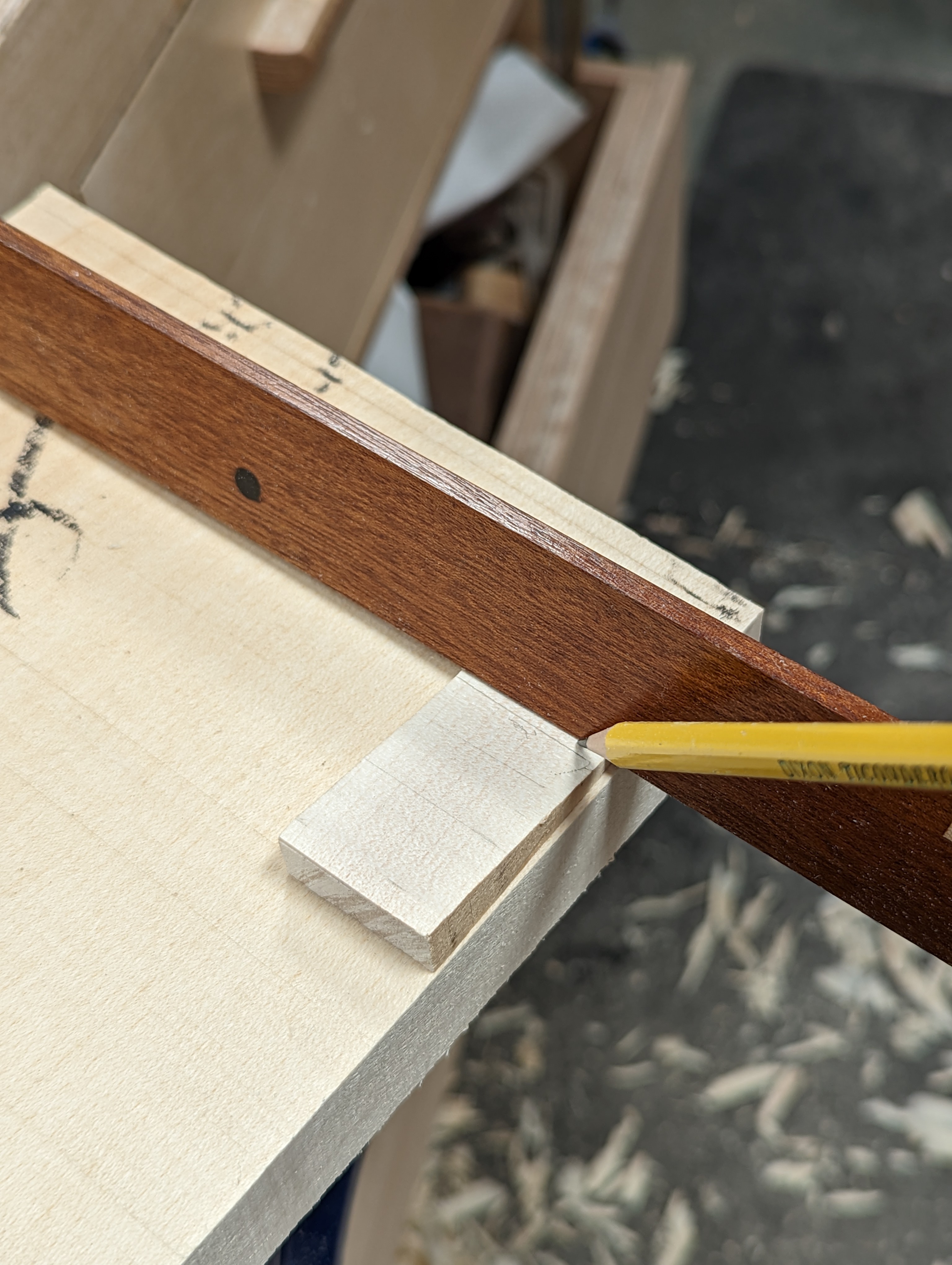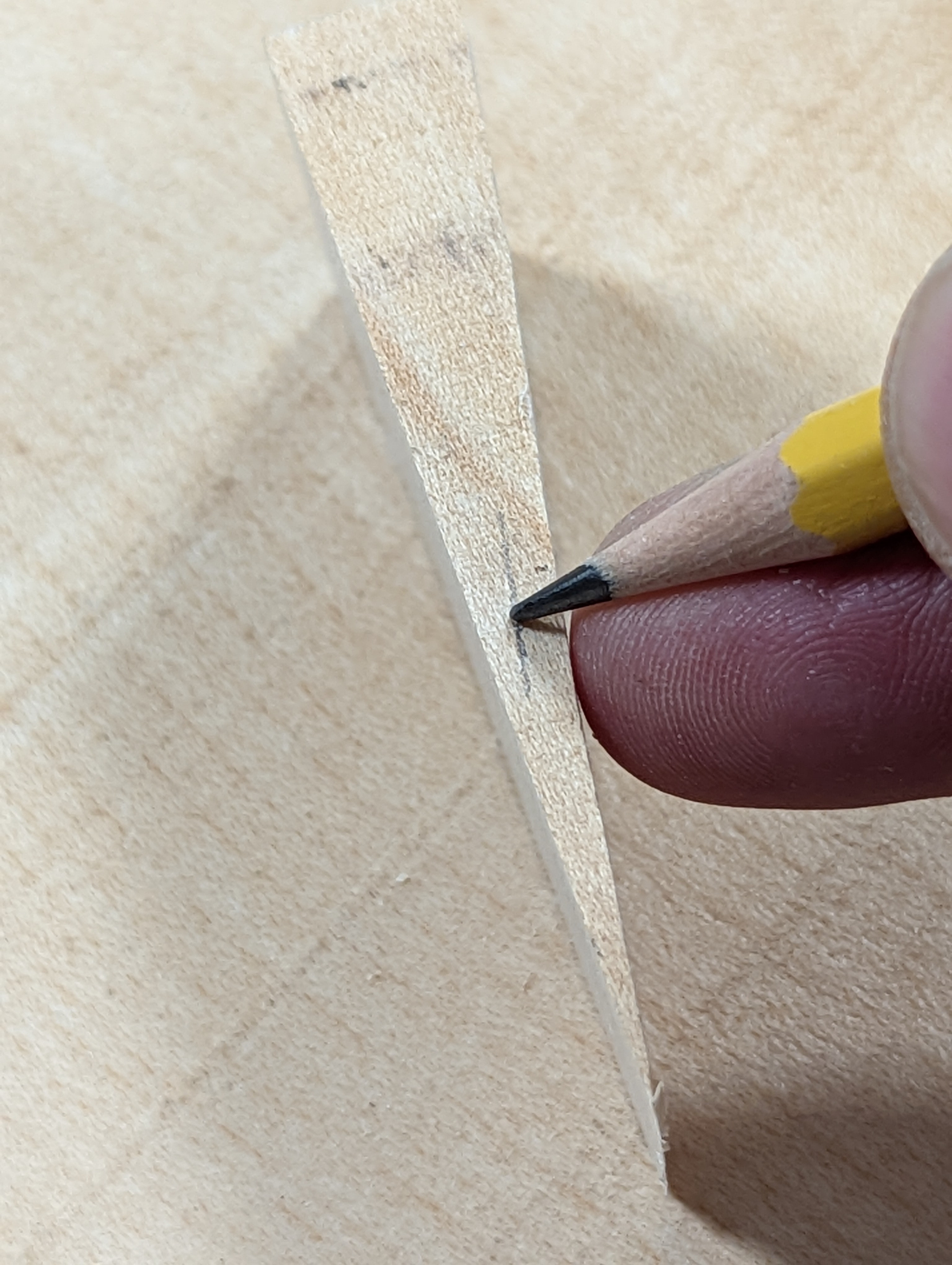 Take a sharp pencil and mark along the wedge itself at the point of elevation on the wedge.