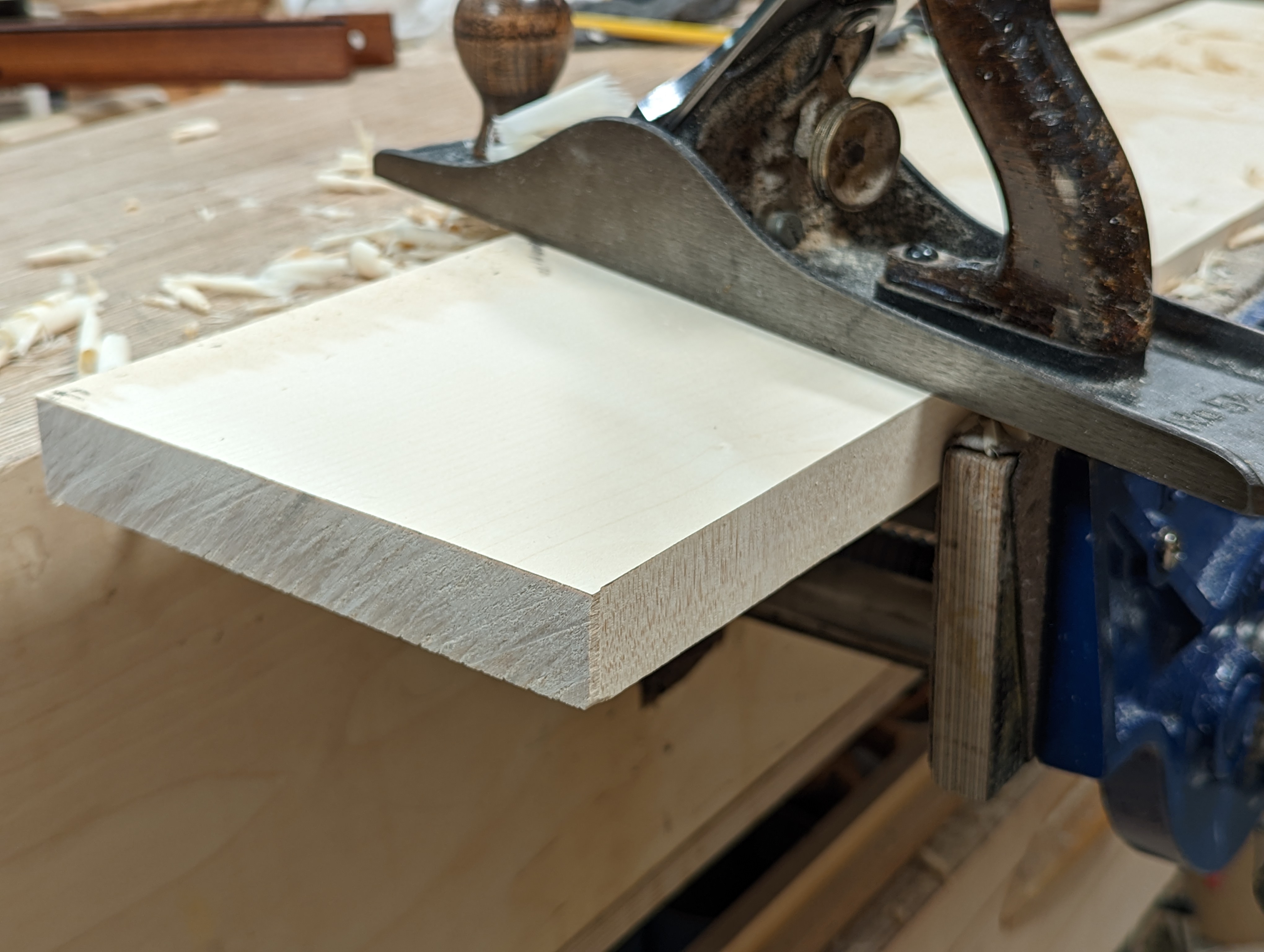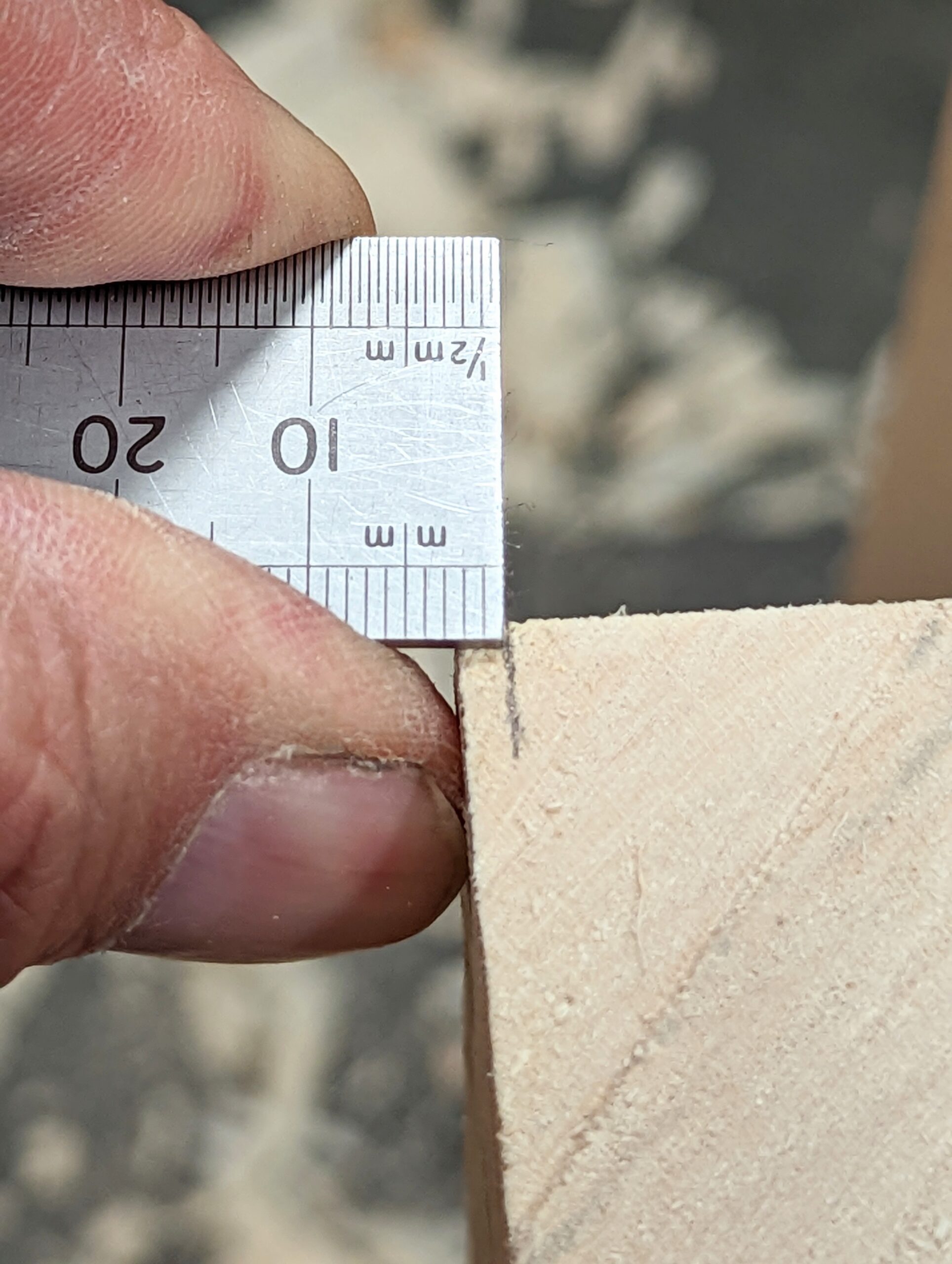 It's a good idea to bevel the corners down to the line first. That way, planing across the grain, something we often do, reduces the risk of corner breakout.