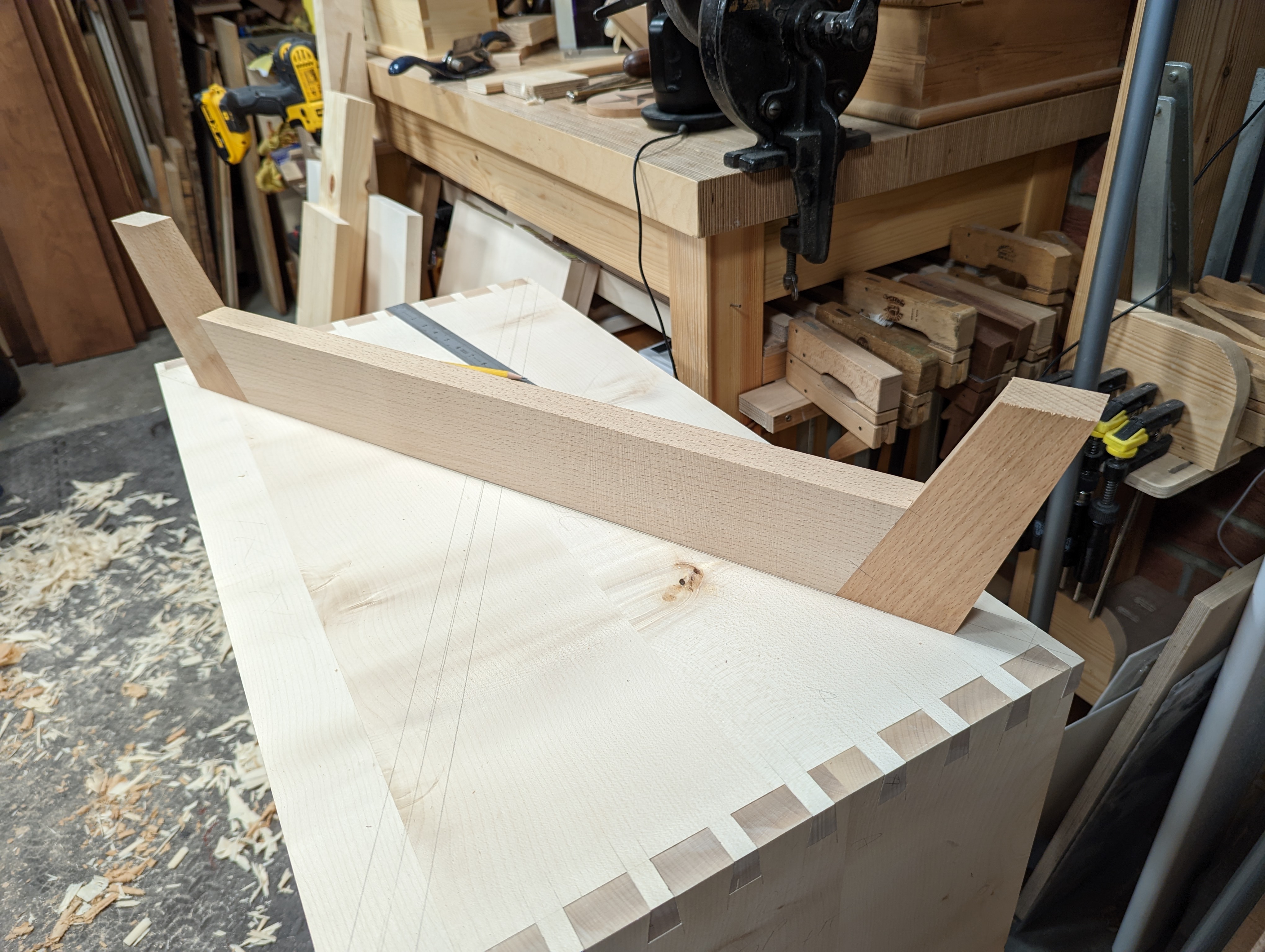 The two extremes corner to corner are the starting points to place lines on the wood edges on each side. Take a straightedge and draw a fine line end to end.