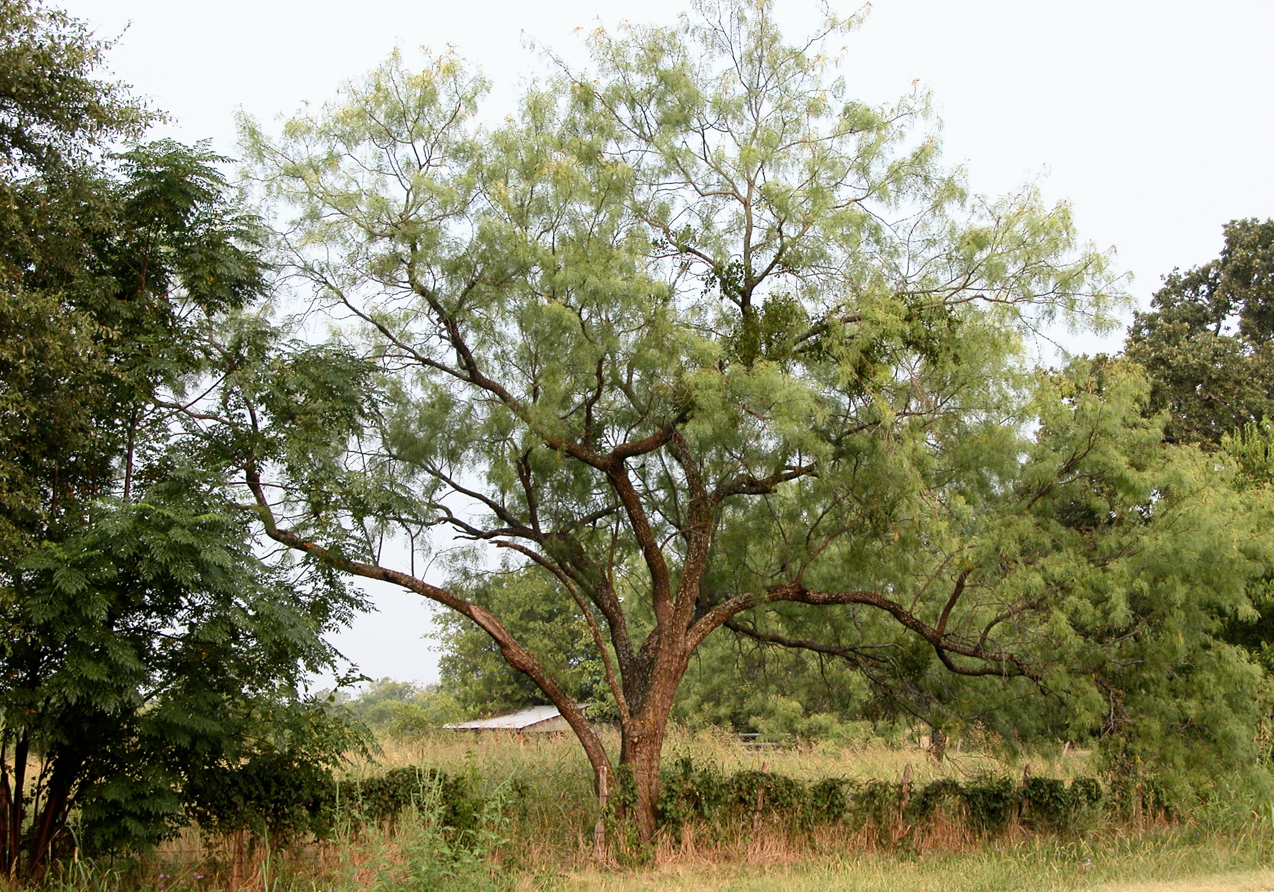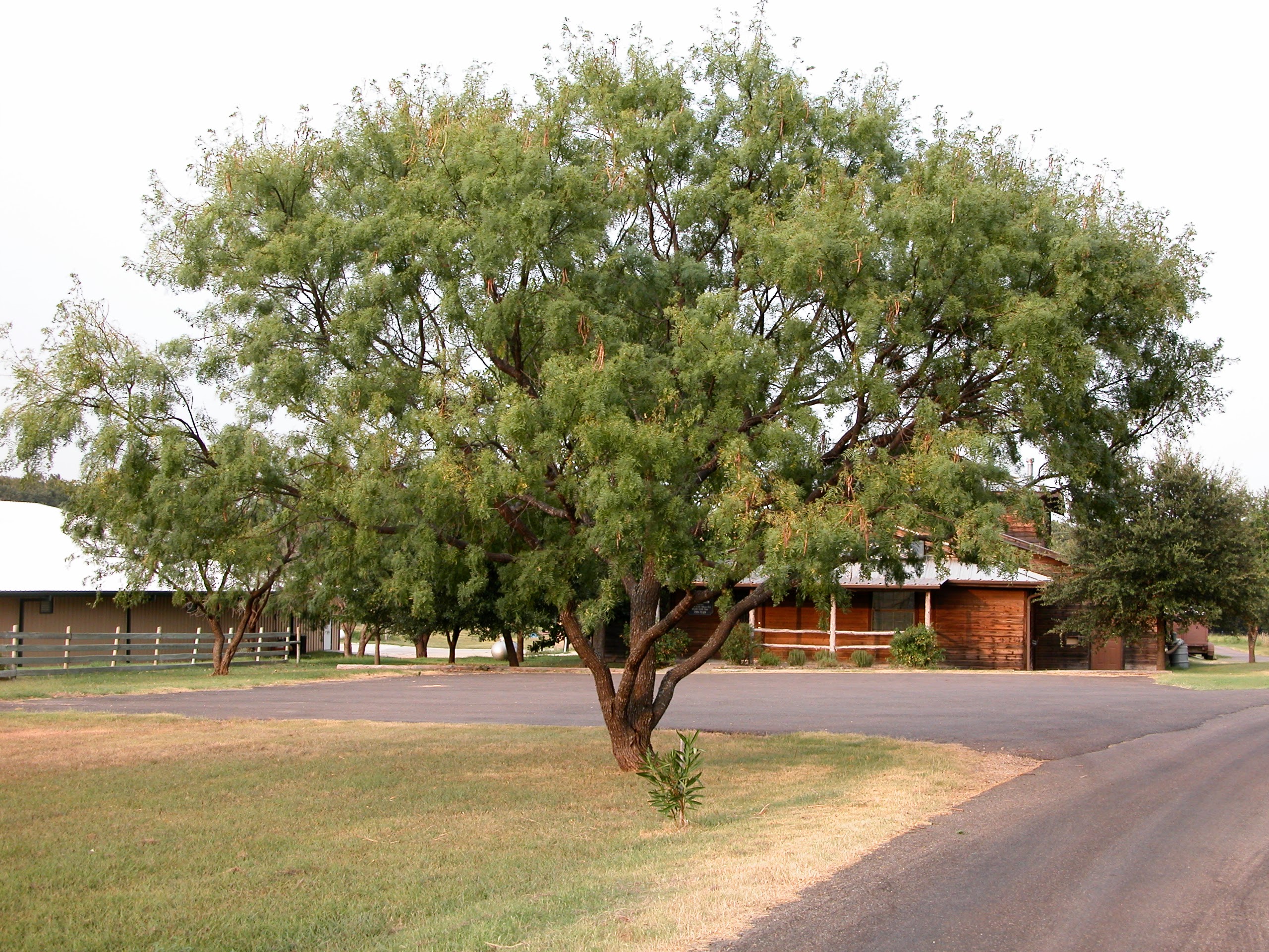 This mesquite tree standing outside a person's business in Texas could be 50 years old. Mesquite is very slow growing and survives and even takes over where other trees cannot. The owner is a Texan born and bred and he was pretty precious about the tree. This is very typical of mesquite characteristic growth; lots of flailing branches from a short and almost non-existent stem. It makes the tree a good source for firewood logs as you cannot do much else with a tree like this unless you are very inventve.