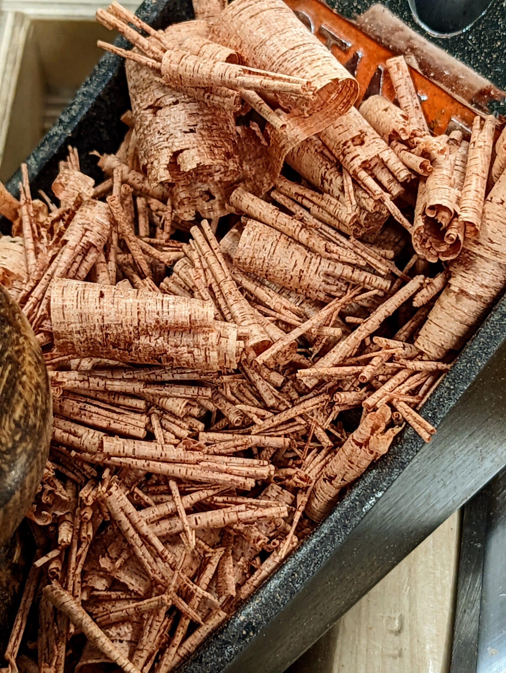 As I planed the stiles for my doors the accumulation of the rich red shavings contrasted with the walnut I'm working alongside the mesquite. Even the shavings of mesquite are different, actually unique to mesquite. You don't get these types of shavings in other woods. I think it's to do with both the hardness and brittleness of the wood itself. It's not quite twice as hard as oak.