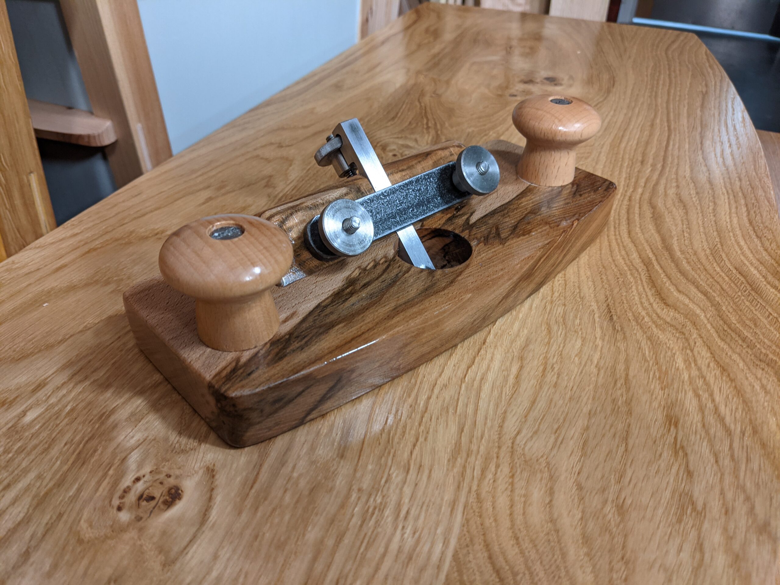 And then came the answer for the shortage of and need for a good router plane at lowered costs. Last year I had decided I just could not let anyone pay upwards of £170 to £250 for a router plane and especially for someone starting out on their woodworking journey. They might not even like woodworking. So anyway, I designed and made a router plane that anyone can make in an afternoon that at the very least equalled the all-metal, mass-produced versions with a level of solidity that any and every woodworker would benefit from and they get to solve their own problem of not having one. Having previously blogged on my then-preferred Preston router plane I yet again sent prices soaring with competitive bids on eBay. Not because it was in any way superior in functionality or quality than the Stanley and Record 71 types. Again, my £32 purchase of a Preston or Tyzack a decade or almost two back sent the prices upwards of £500 when people saw me using mine and they never sell for less than that these days. I had to do what I always told my kids when they saw a problem and complained -- 'Be a solution!' I took a few blocks of beech and made half a dozen router planes to my design. We made our kits available and people around the world are now spending an afternoon making their own lifetime router plane for a fraction of the cost of the all-metal ones and it will likely last for a couple of hundred years of daily use. The router plane kit has proven popular after some serious investment having the components like the blade made by a premium Sheffield maker. Here at the shop, we have all made our own planes so there are a dozen and more hanging around. I've made 15 to date and also developed other ideas for retrofitting with additional components to use thinner cutters as required and then too a depth stop, incremental markings on the cutter and such so you can dial in a depth in an on-the-go way.