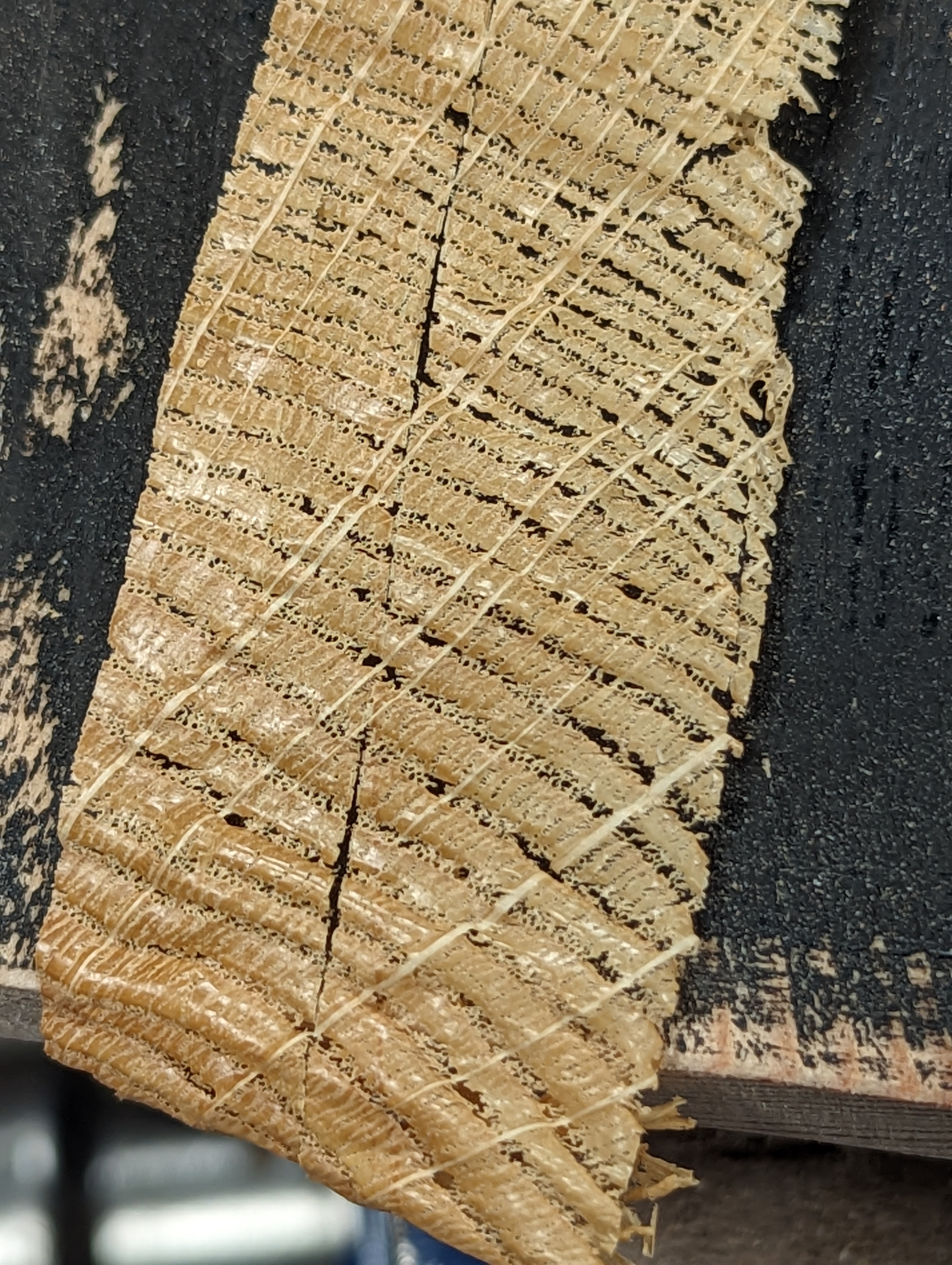 A split-cut tenon before paring has a very unusual textured surface that I think looks more like a moonscape than wood grain.